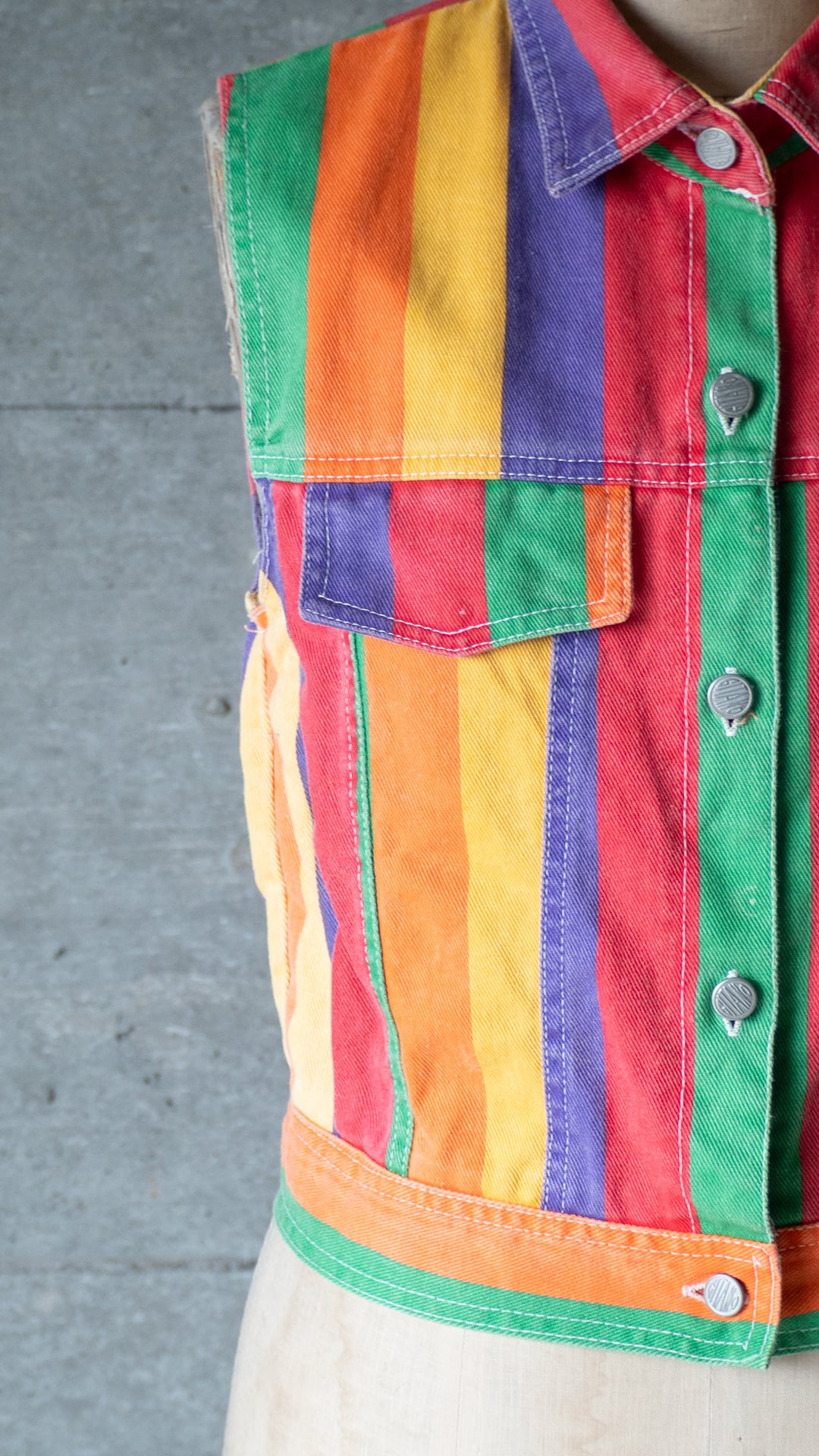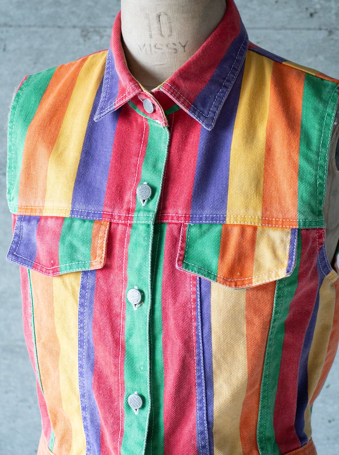 "Emporio Gitano" 1990s Multi colored denim sleeve-less jacket