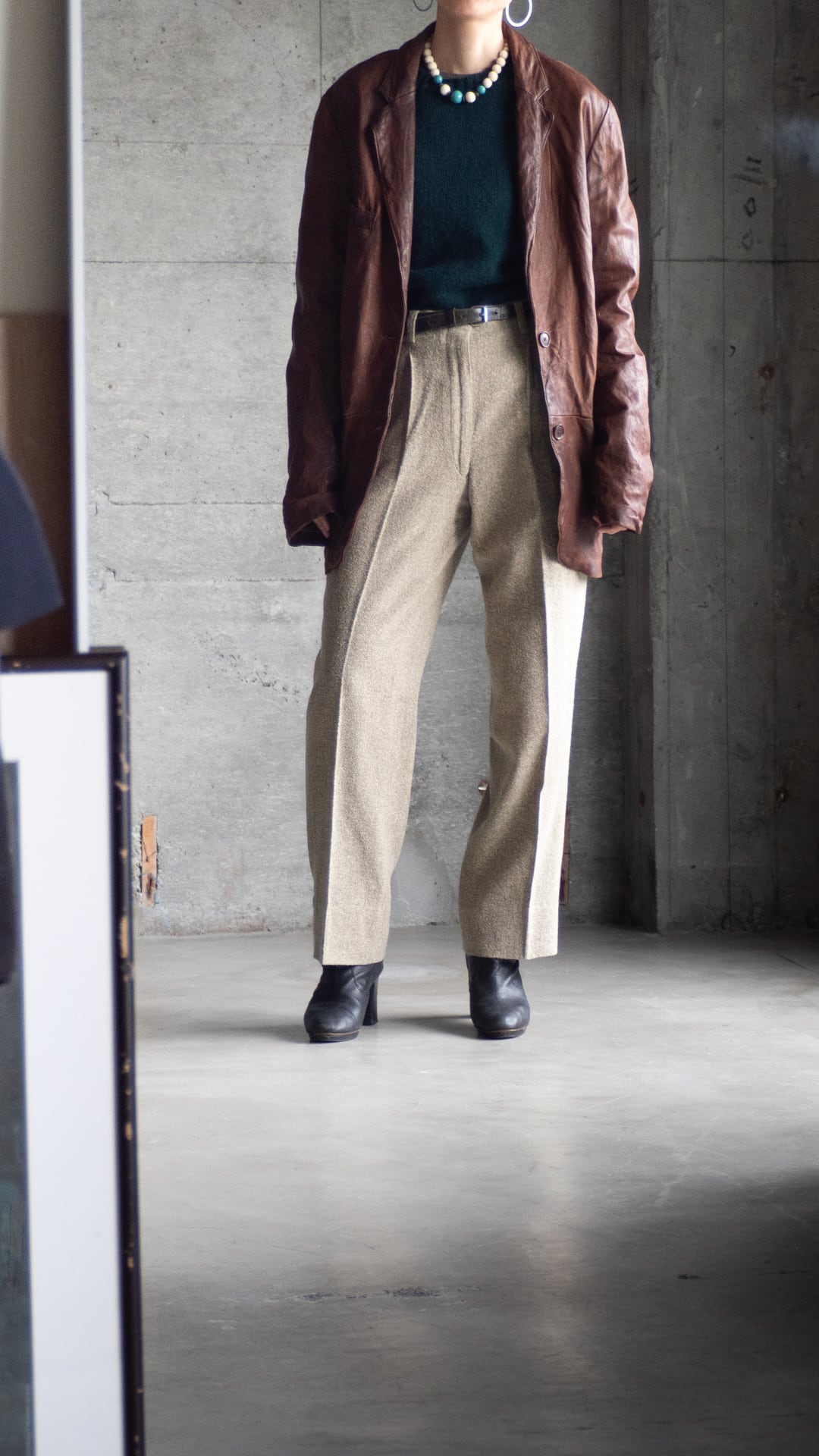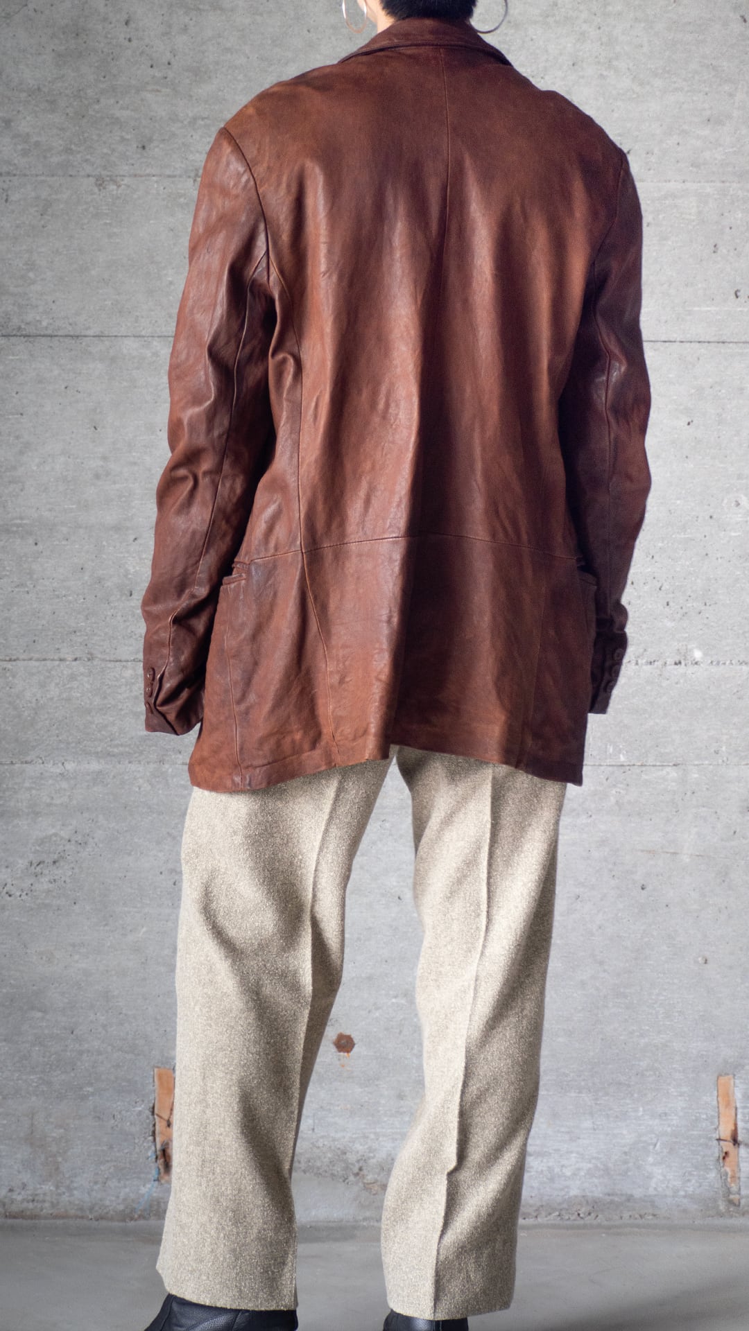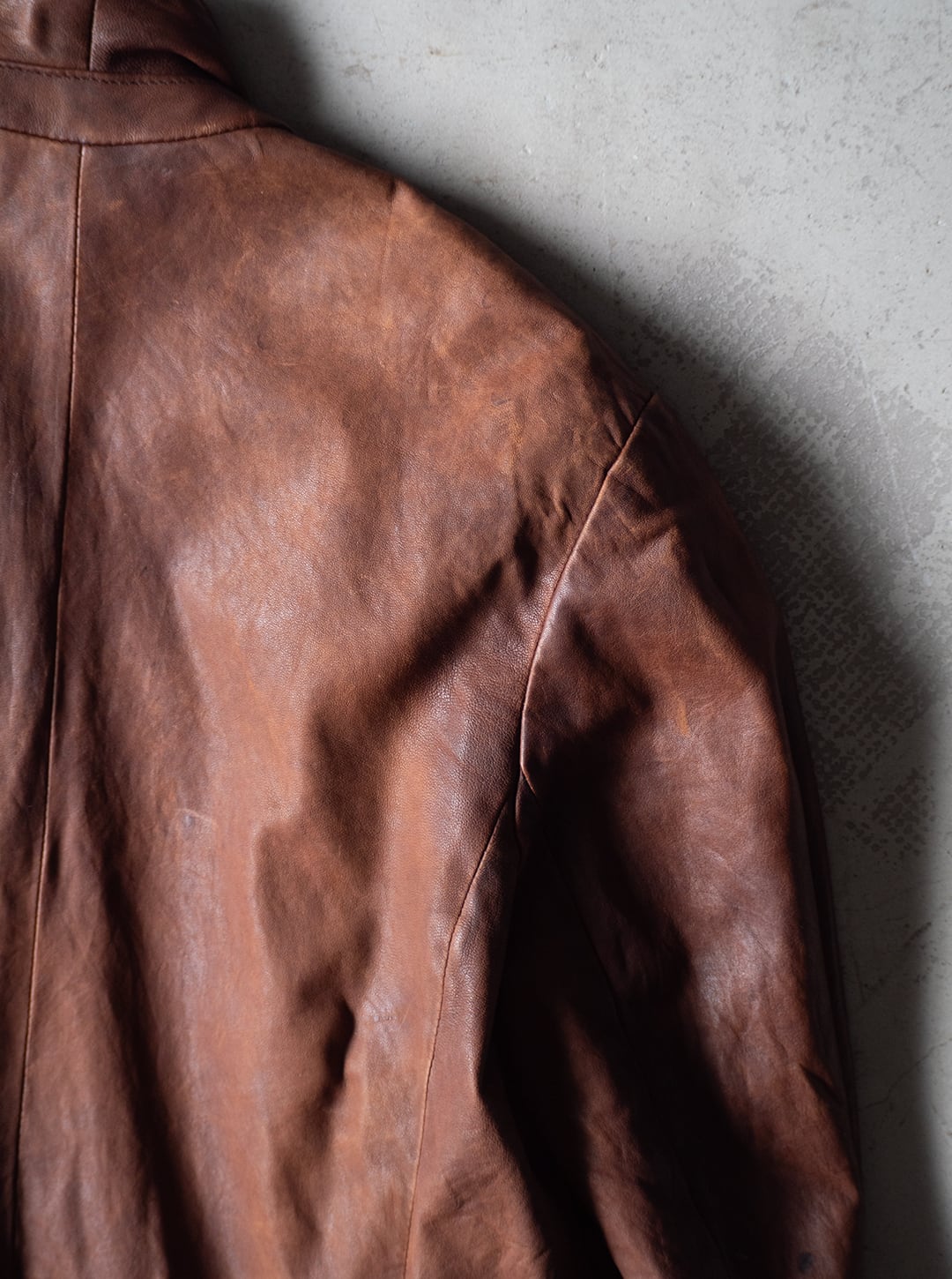 このジャケットは、イタリアンレザーらしい奥行きのある色味と、レザーの柔らかさによる動きのある表情が特徴です。