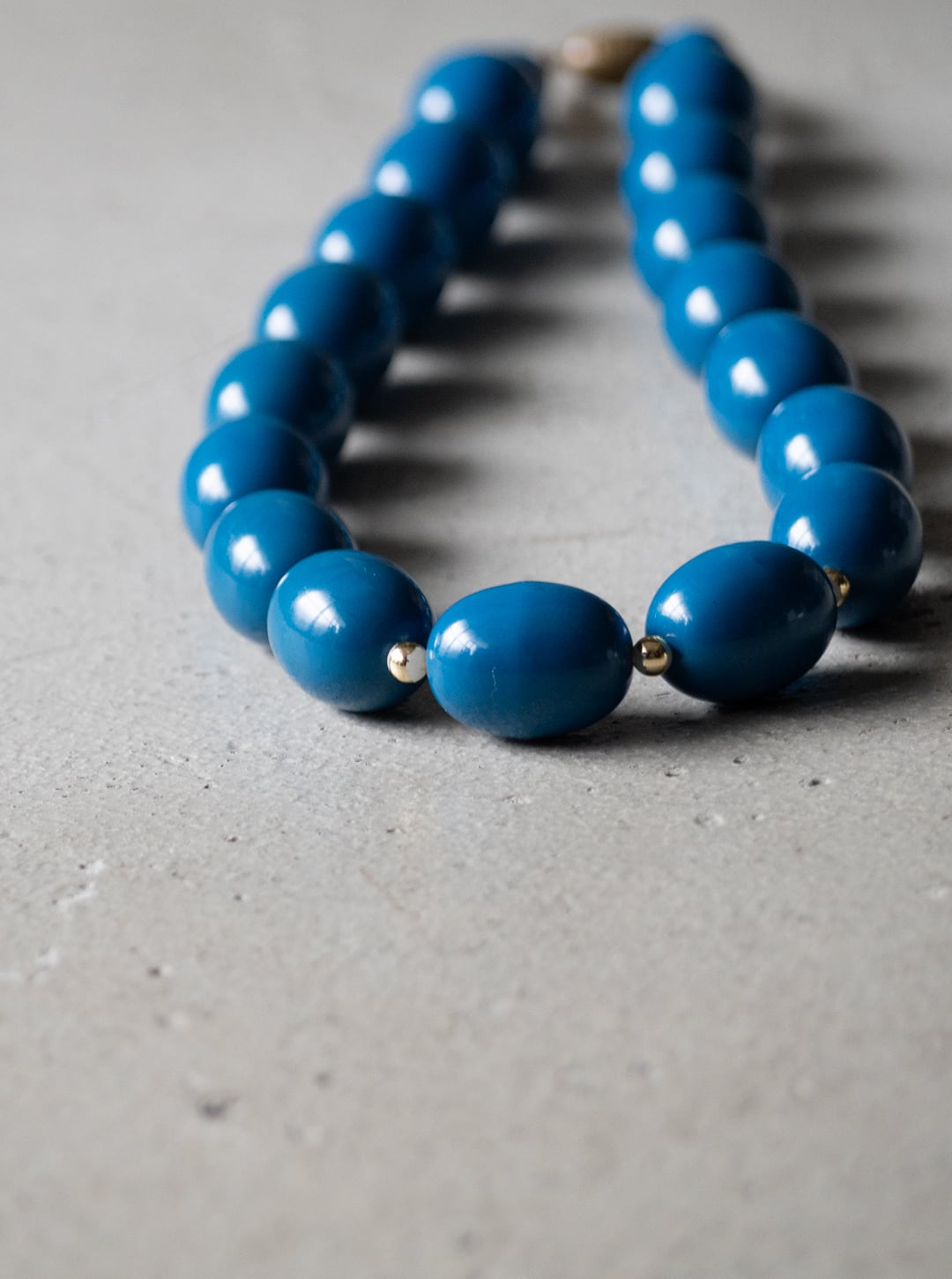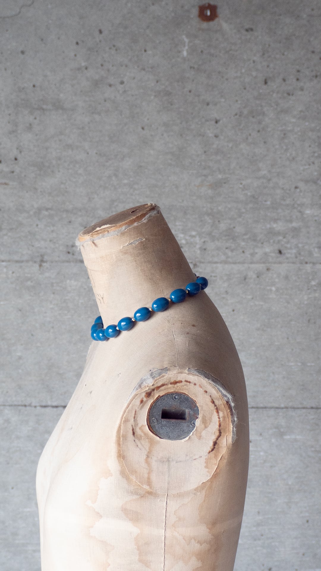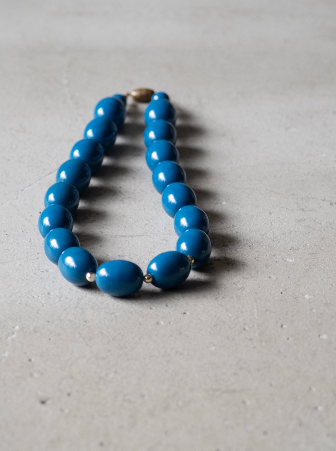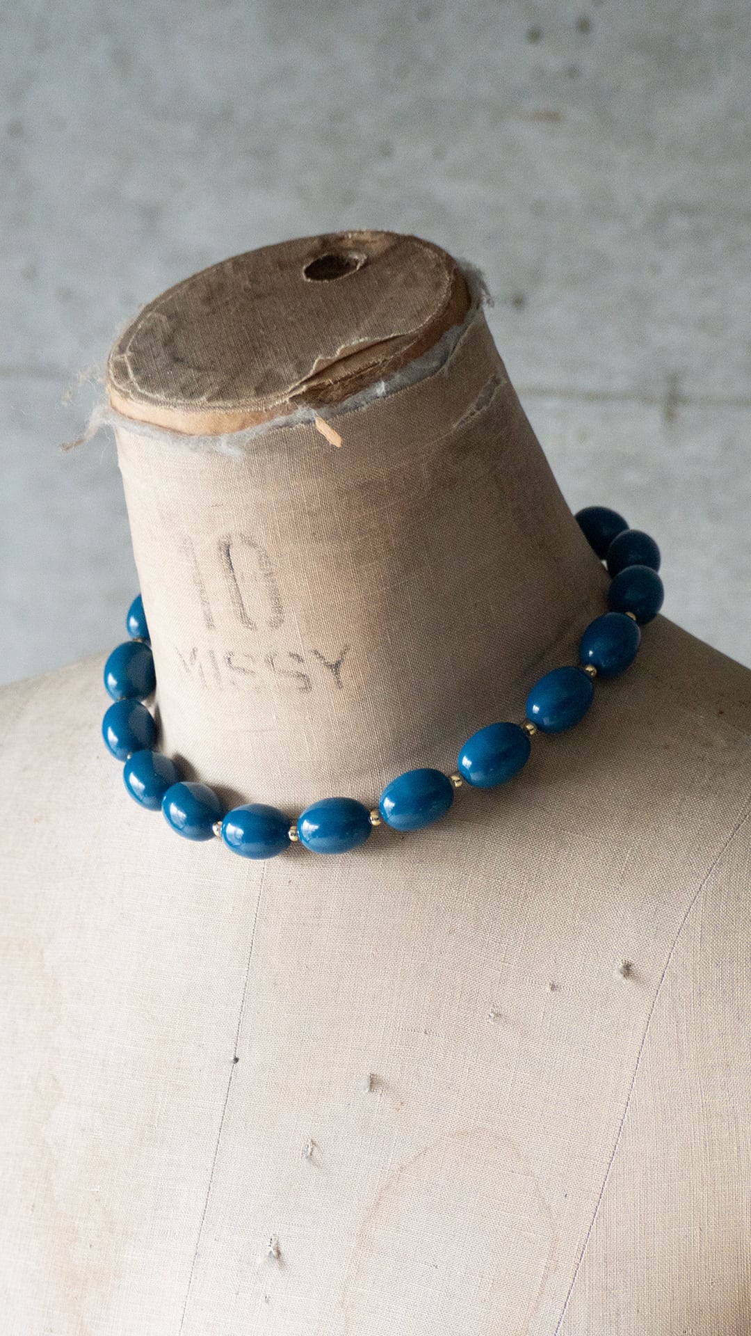 青く、やや鈍い彩度のビーズを連ねたネックレスです。