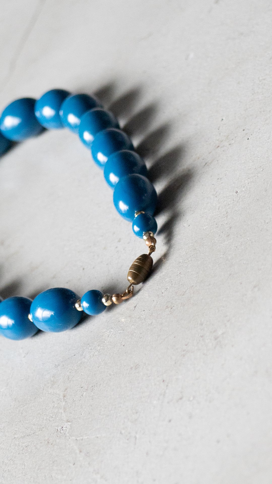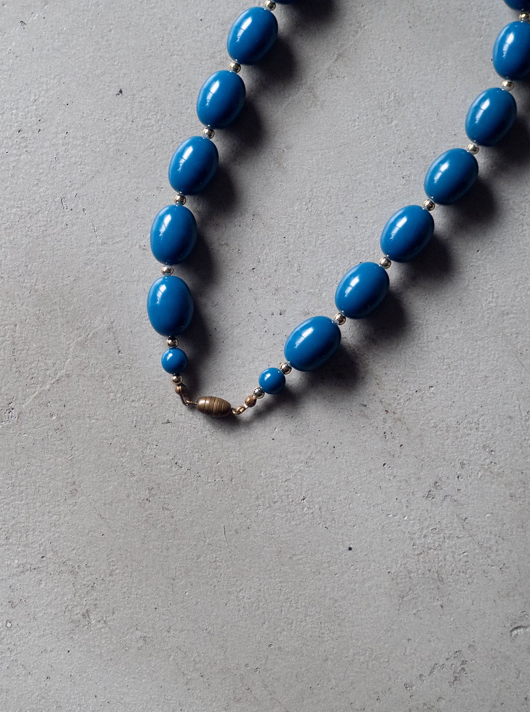 ブルーのビーズの間にあるメッキビーズは、そのメッキが所々剥がれています。