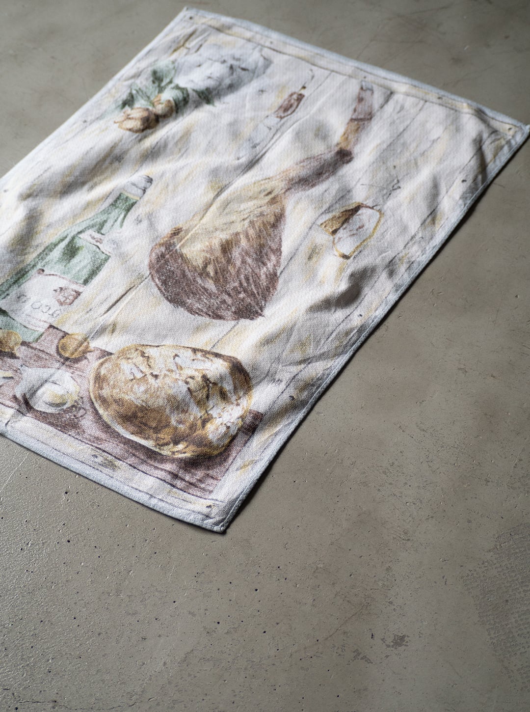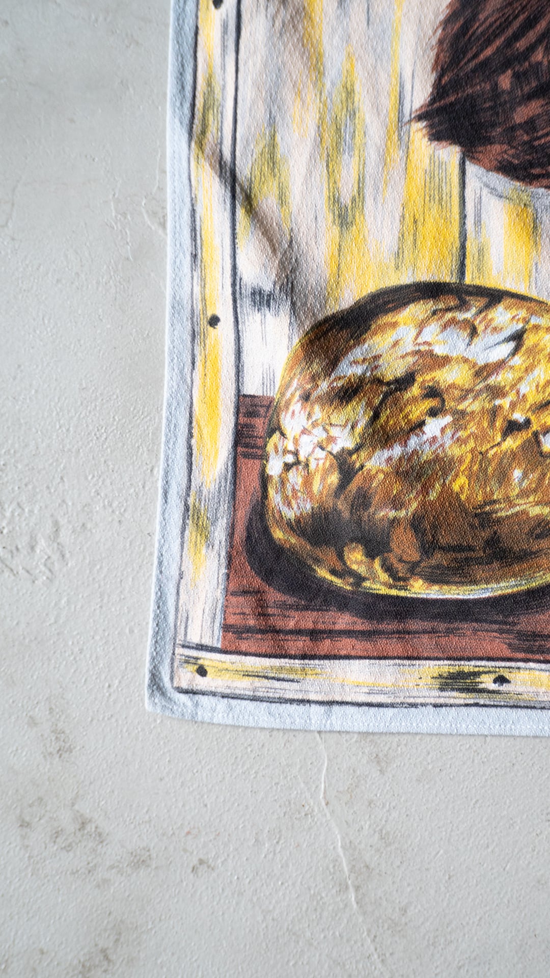 セラストアとしては、もちろん本来の用途であるテーブルクロス、キッチンクロスなどとしてお使いいただくことがベースになりますが、例えば額装して飾ったり、空間装飾として用いたりと、この絵画のインパクトを楽しむべく、いろいろな用途を創造し、活用いただければと思っています。