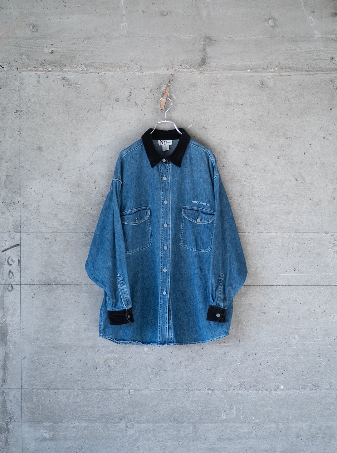 "NY Jeans" 1990s Velvet collar denim shirt