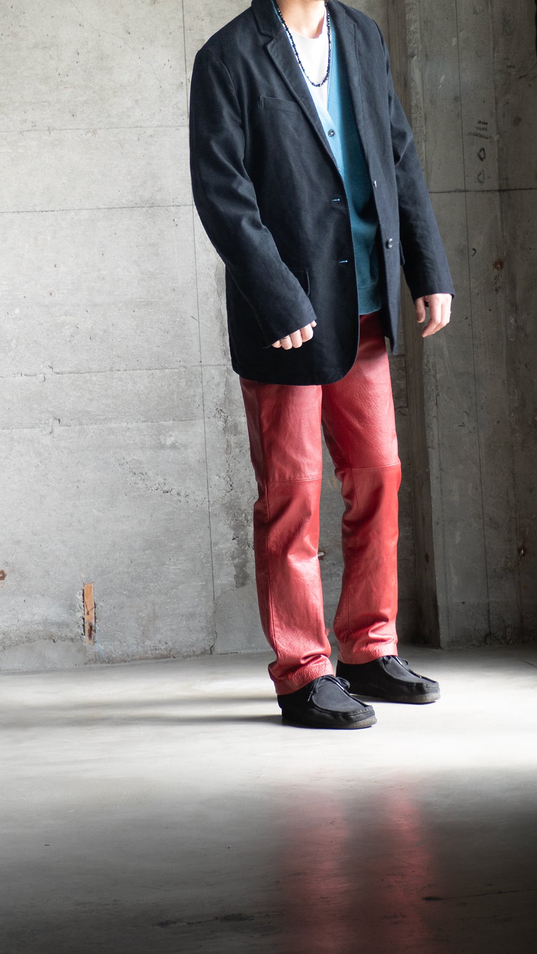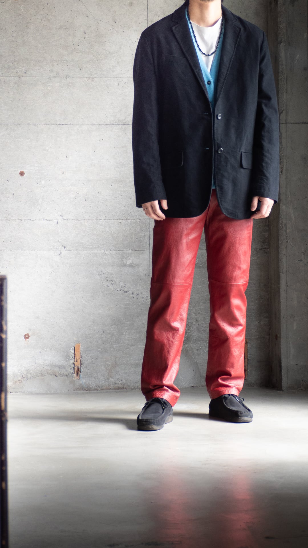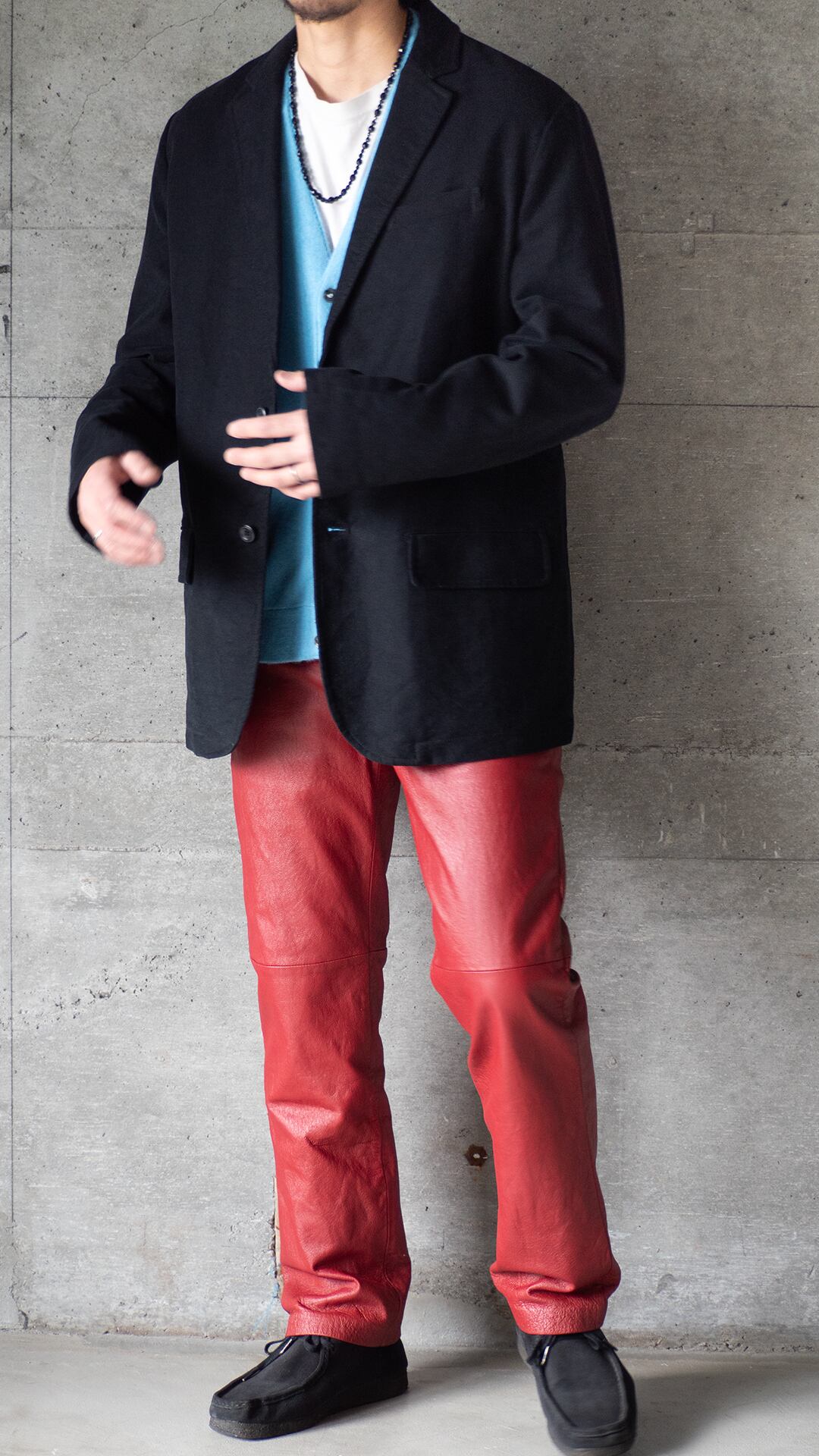 ノッチドラペルでゴージは普通程度の高さ、合わせ深めの2つボタン。ウエストダーツと両玉縁フラップポケットが配備され、それらのステッチとその周りの生地の凹凸が程良いアクセントを感じさせてくれます。セラストアとしての好みのジャケット。モールスキンで黒、セミアンコンであれば、レトロカラーのスポーツウェアともばっちり組み合わせができます。