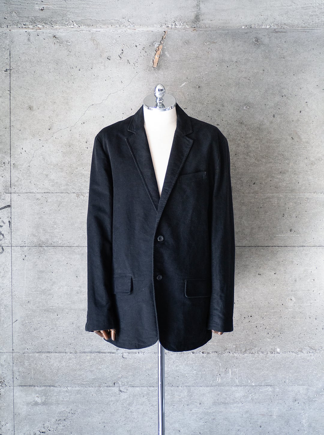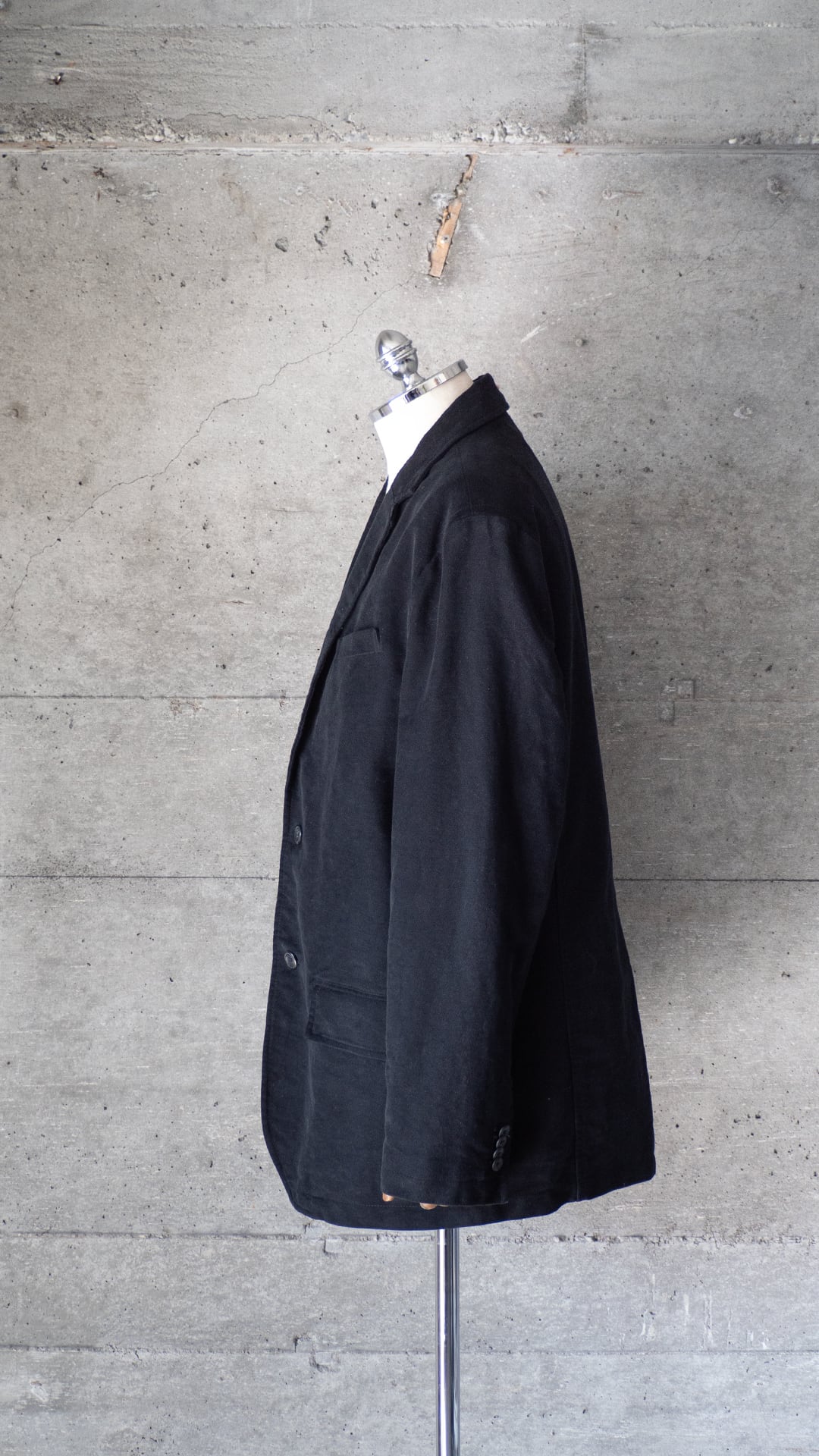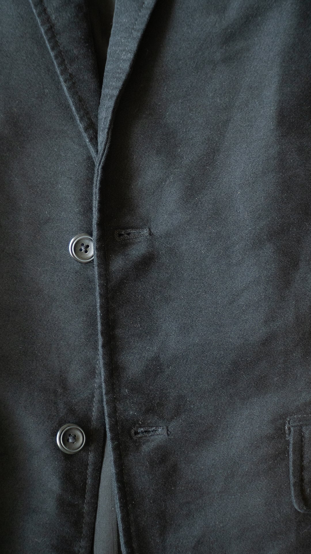 嵩高でもっちりとした黒いモールスキン(コットン100%)のジャケットです。