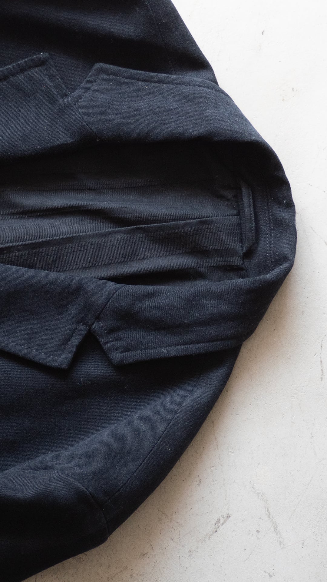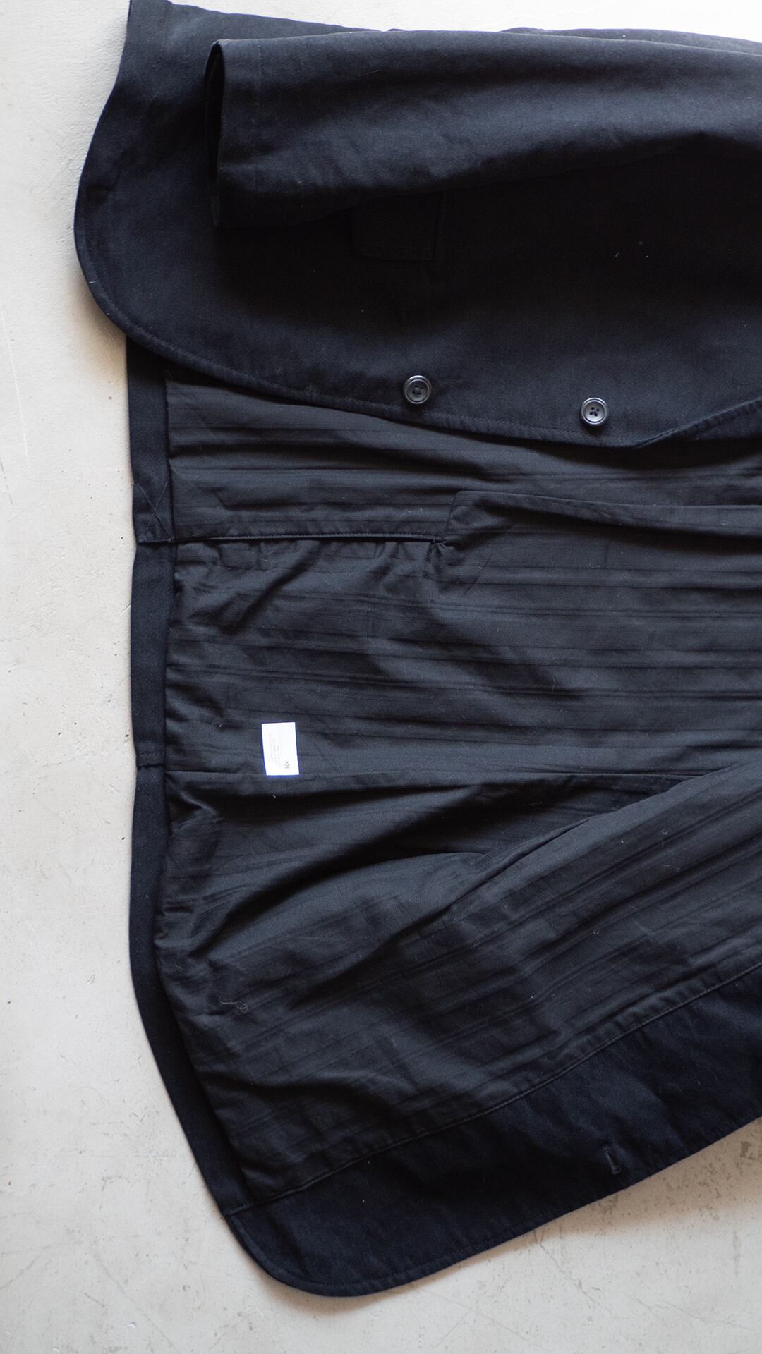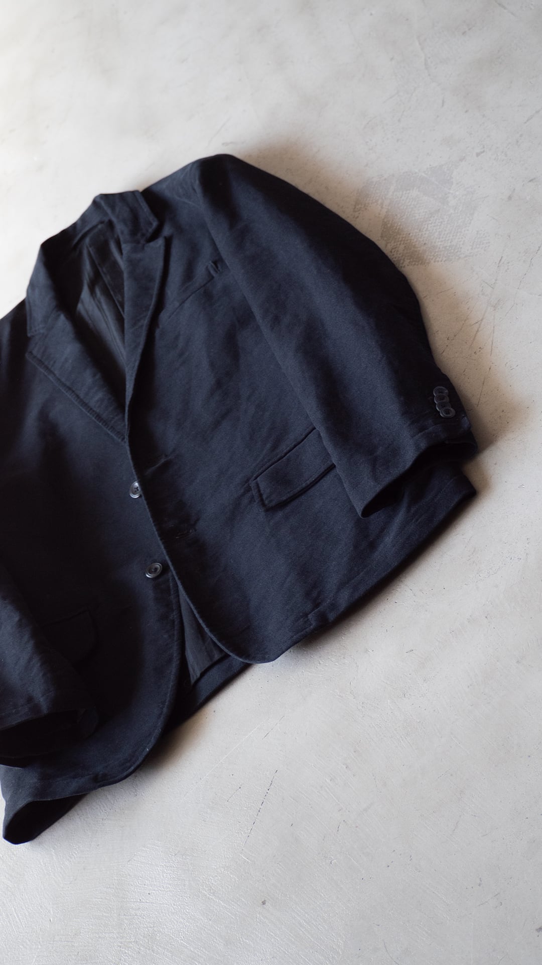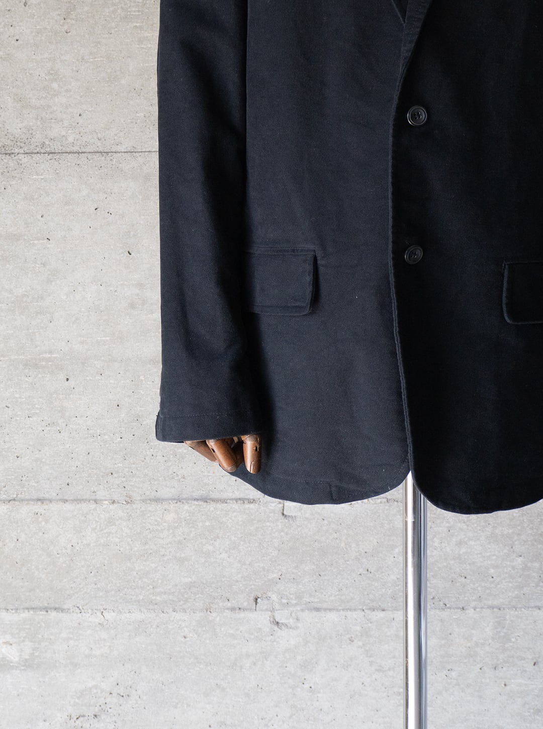 嵩高でもっちりとした黒いモールスキン(コットン100%)のジャケットです。