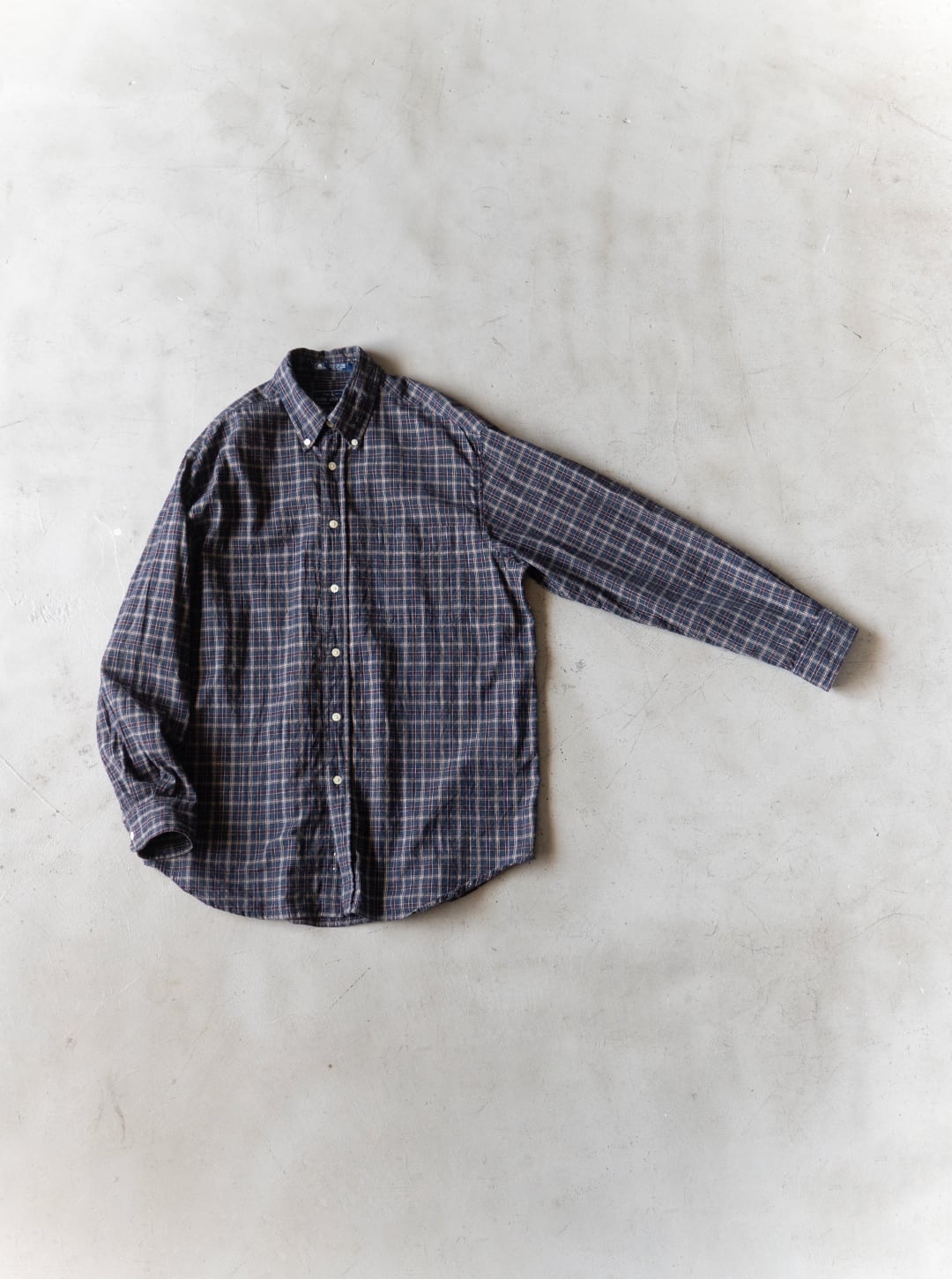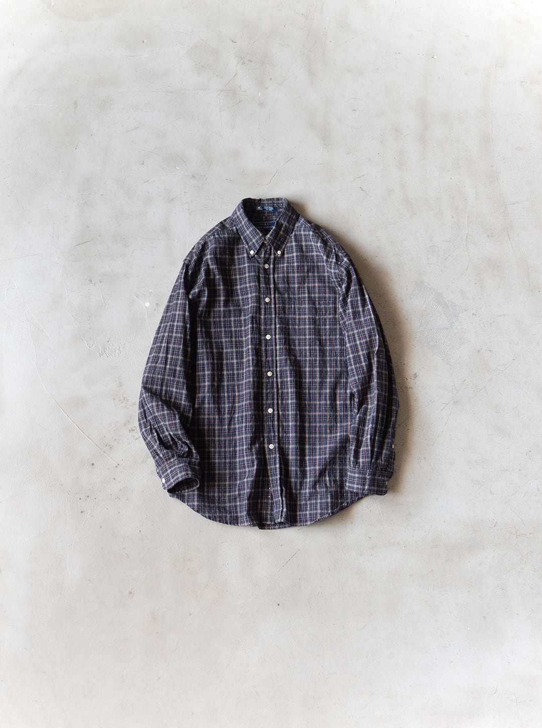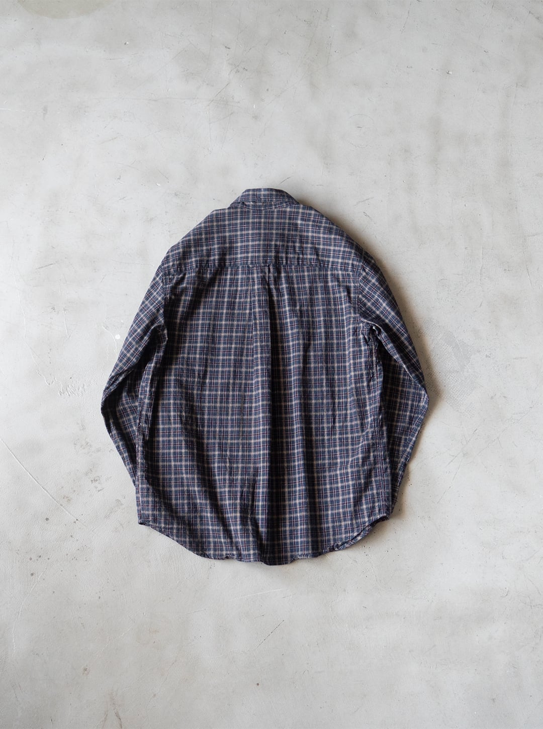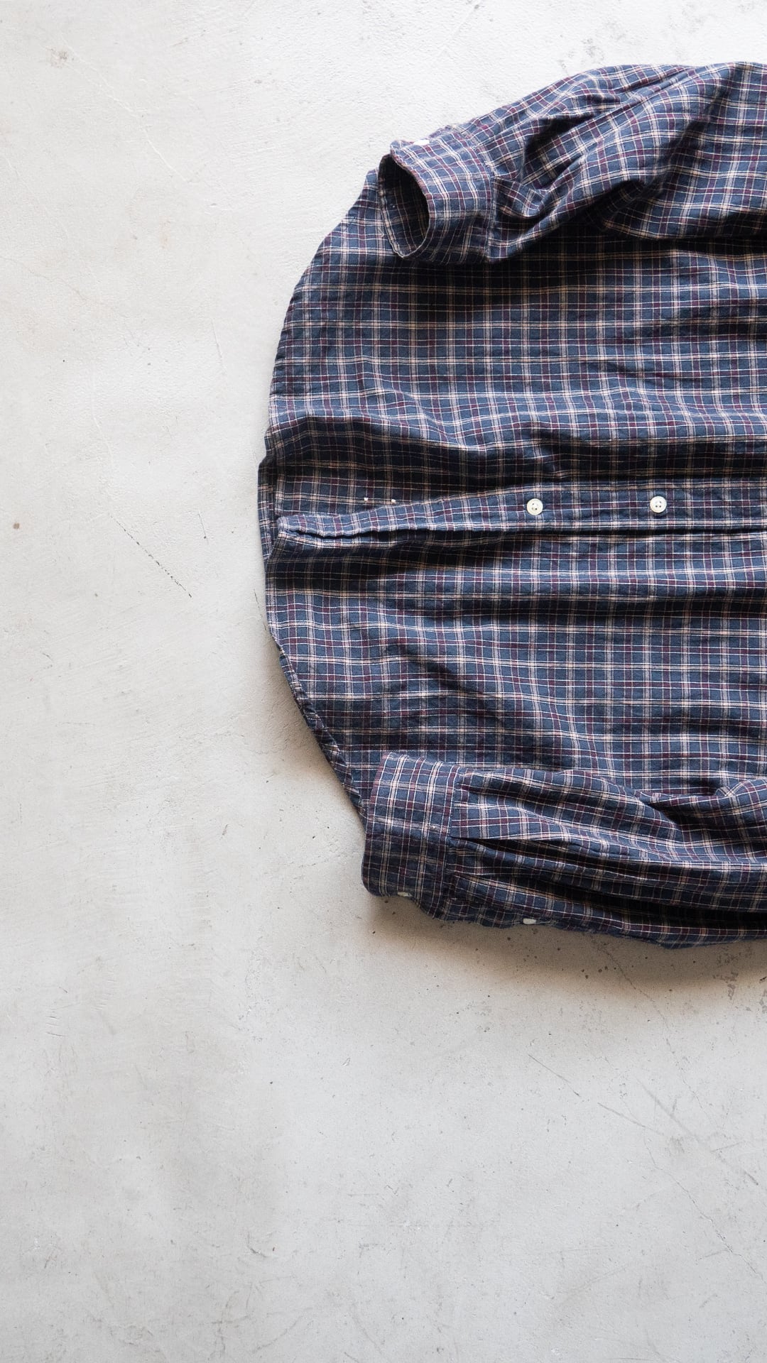 先染めのインドコットンのチェック柄、中細番手の平織りで糸の柔らかい風合いがしっかりと残った、オーソドックスなボタンダウンシャツです。ブランドは「JOHN ASHFORD(ジョンアシュフォード)」で、アメリカの老舗百貨店グループであったMay Department Stores、後のメイシーズのプライベートブランドとしてスタートして、1980年代後半から90年代にかけてはアメリカの百貨店市場で広く認知されていました。