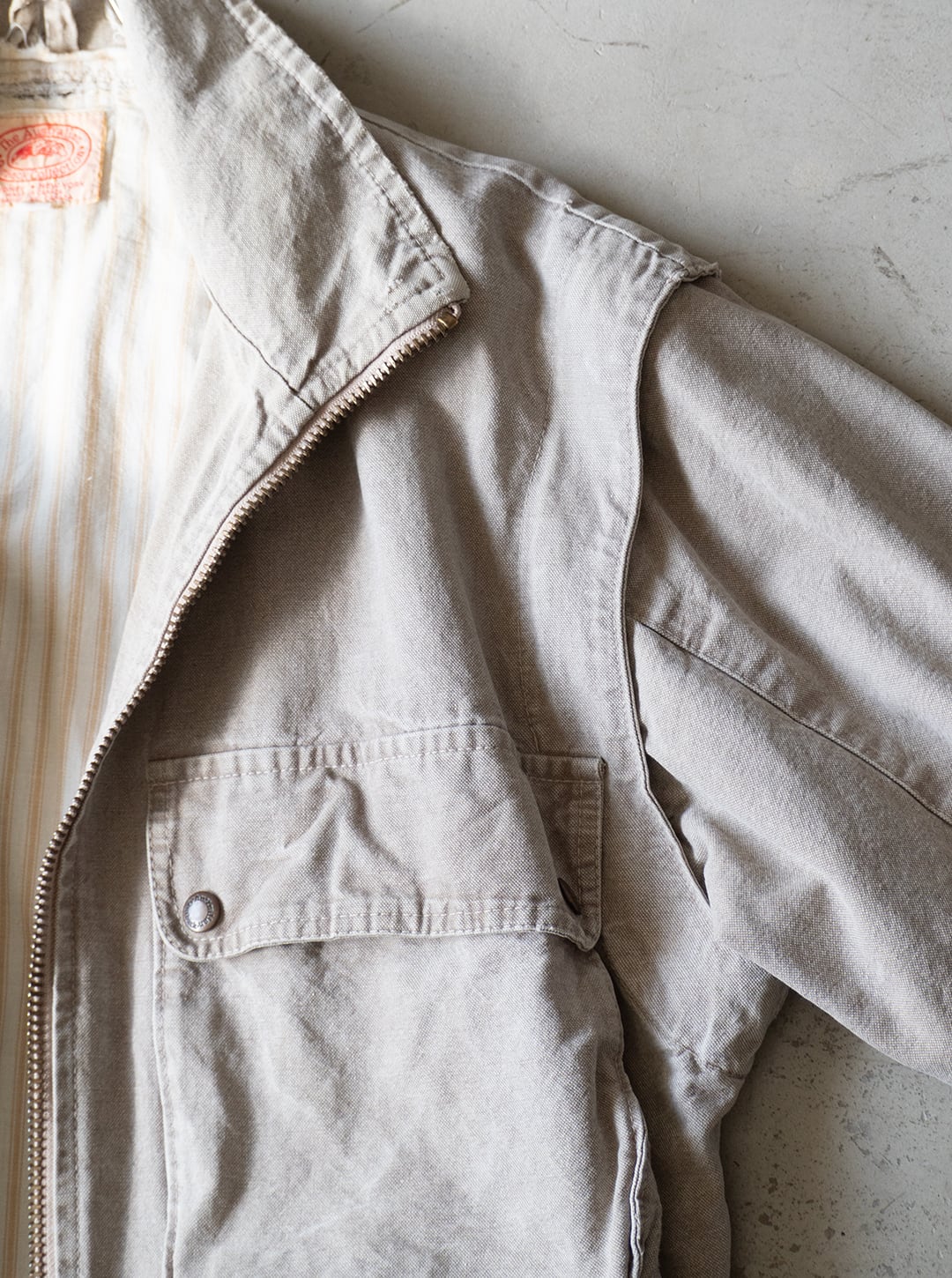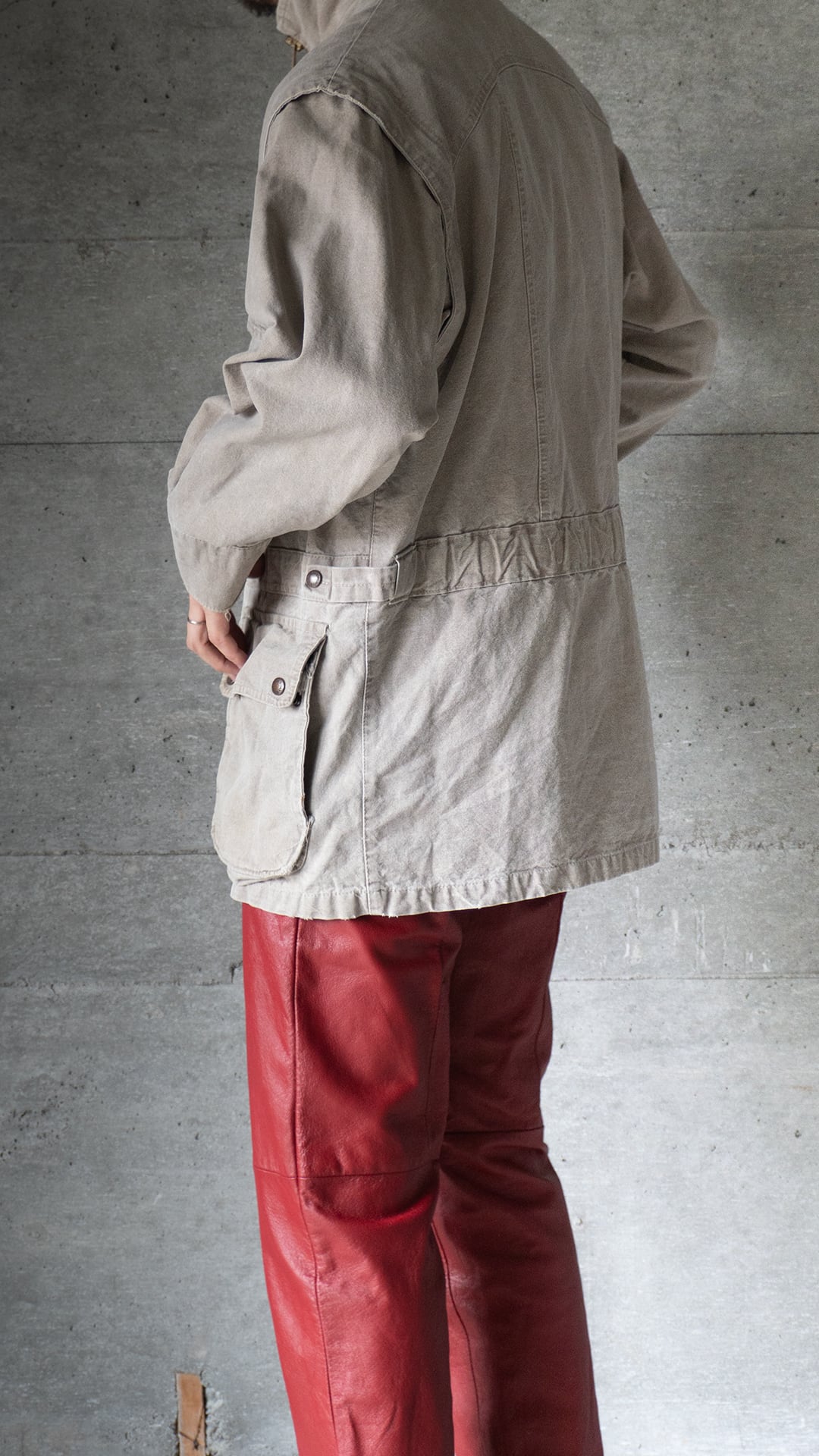 今回はオイルドアイテムではなく、油分のないコットンダックを用いた、サファリジャケットです。
