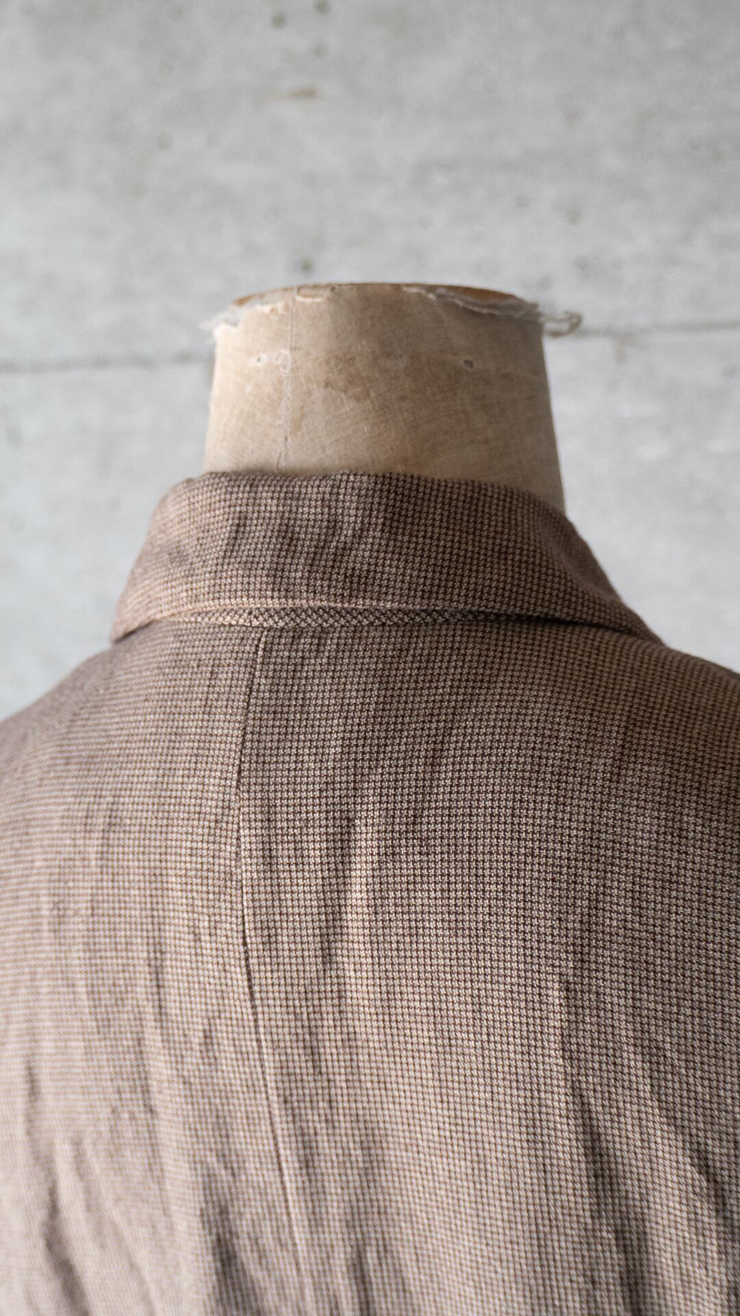 生地の柔らかく落ち流れのある質感を活かしてか、総裏で前端や衿端、アームホール端などいずれも袋仕立てになっています。