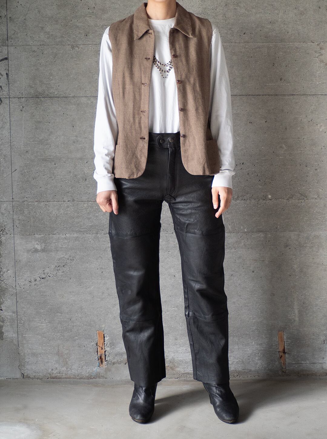 "Breeches" 1980s Rayon wool houndstooth sleeve-less top