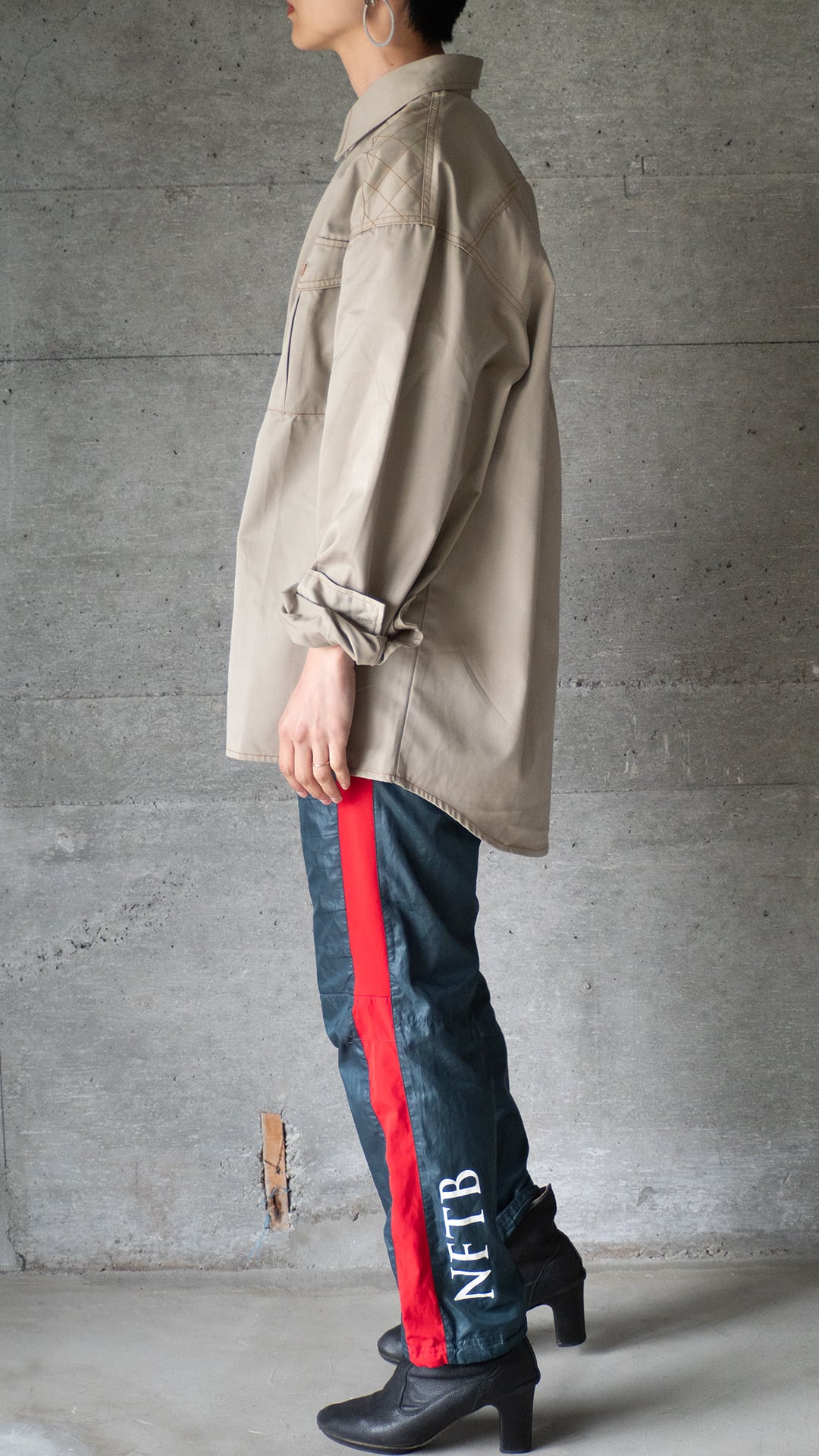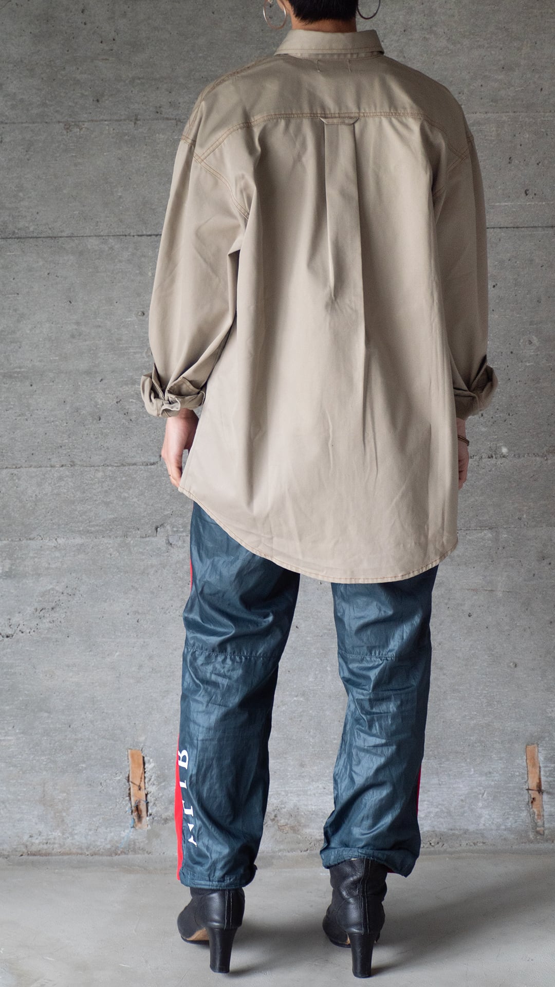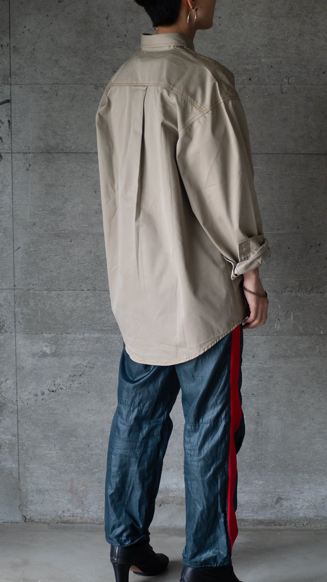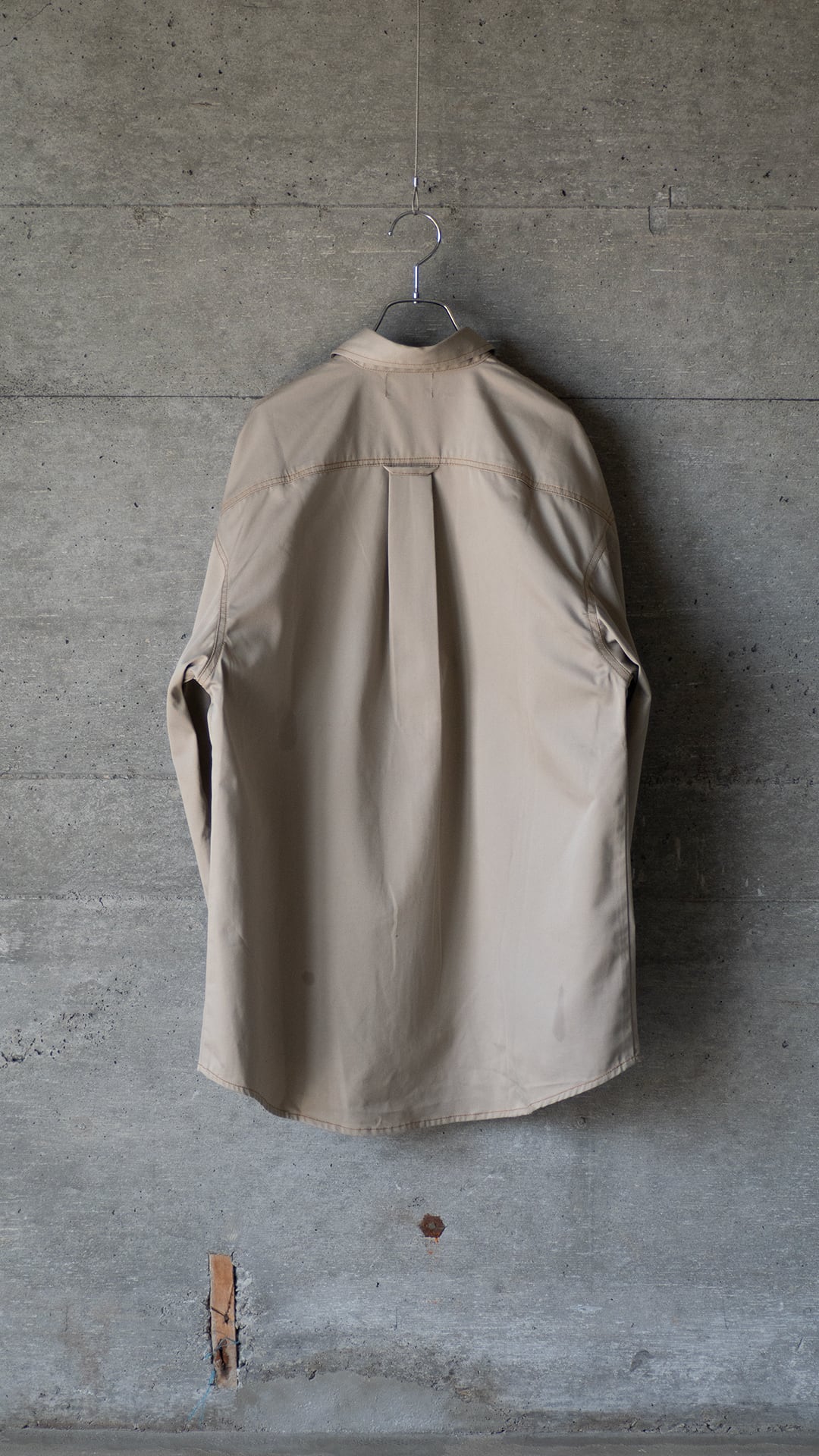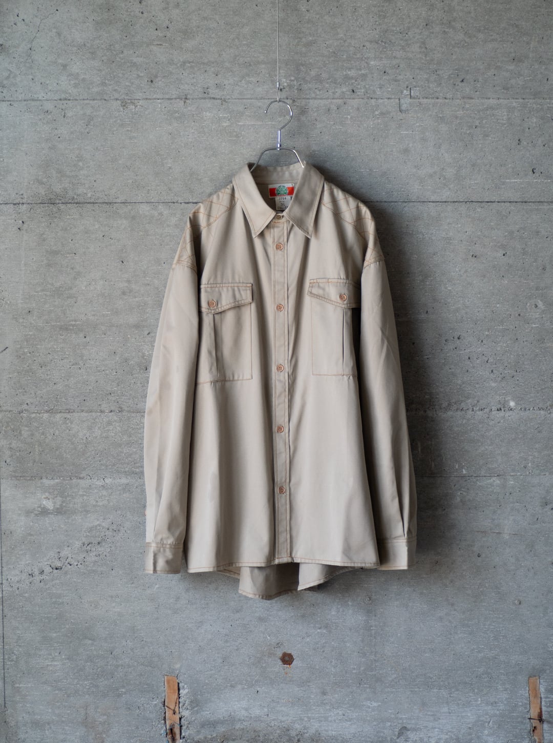 このシャツは未使用のデッドストック品です。ポリエステル勝ちの素材なので光沢とハリがありますが、着用と洗濯を繰り返して、徐々にくたっとした柔らかな質感に辿り着けば、一層洒落た雰囲気が増すのではないかと思います。