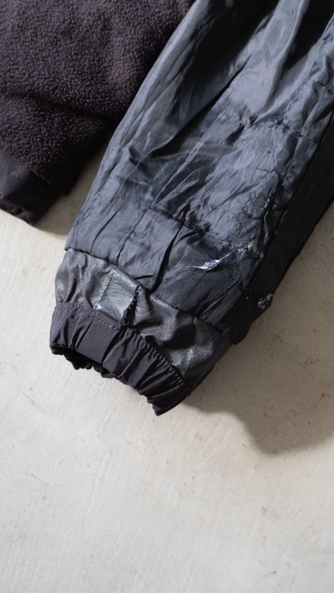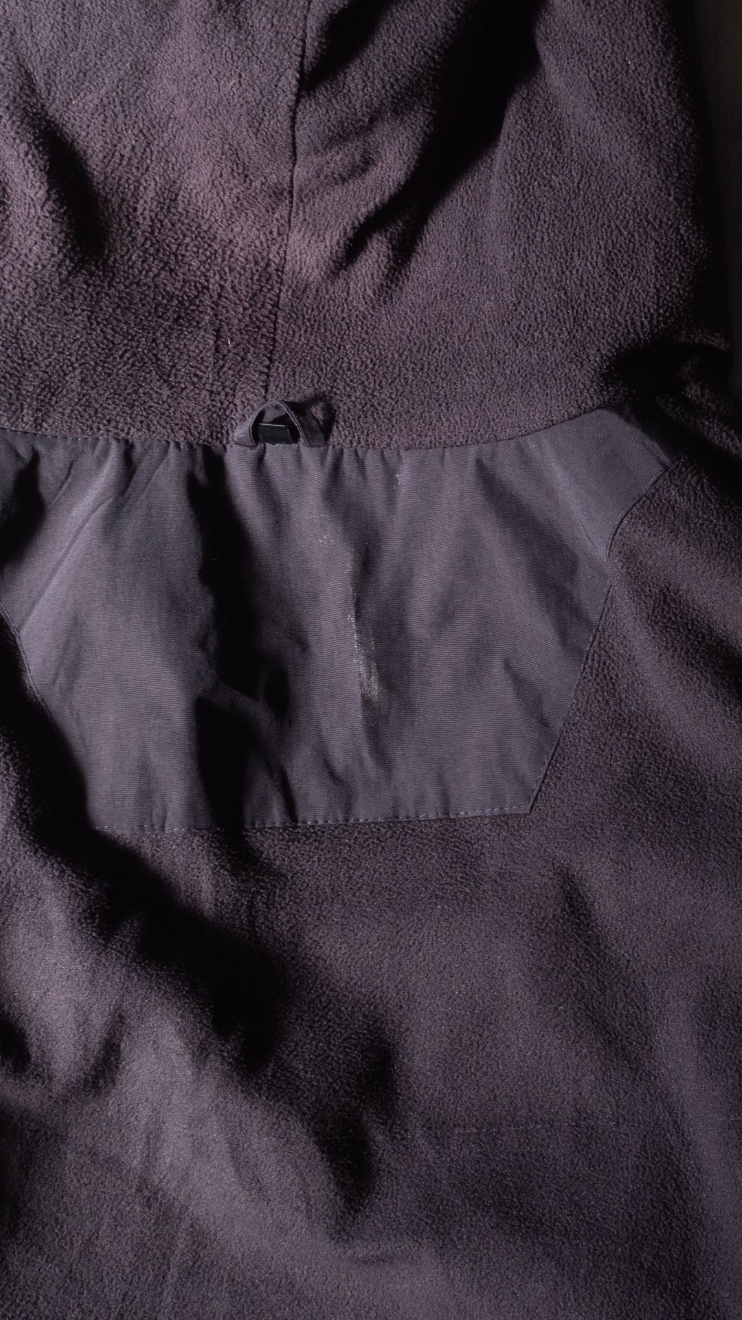 シェルはナイロンベースの高密度素材、ライナーにはポリエステルフリースが身頃裏にパタンニングされた、総裏仕立てです。
