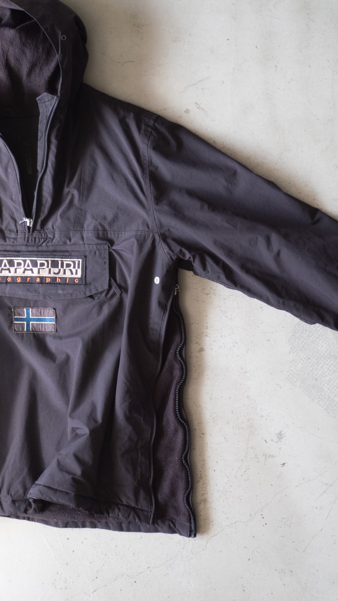 1987年にイタリア・アオスタでアウトドアブランドとして生まれたナパピリ(=NAPAPIJRI)のプルオーバーパーカーになります。