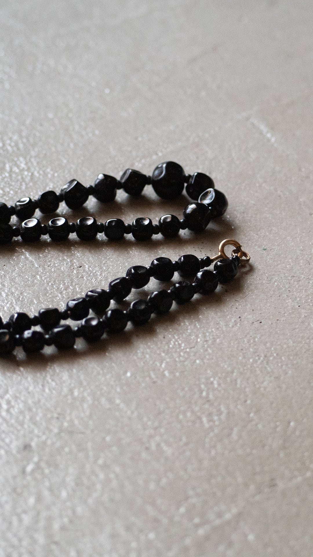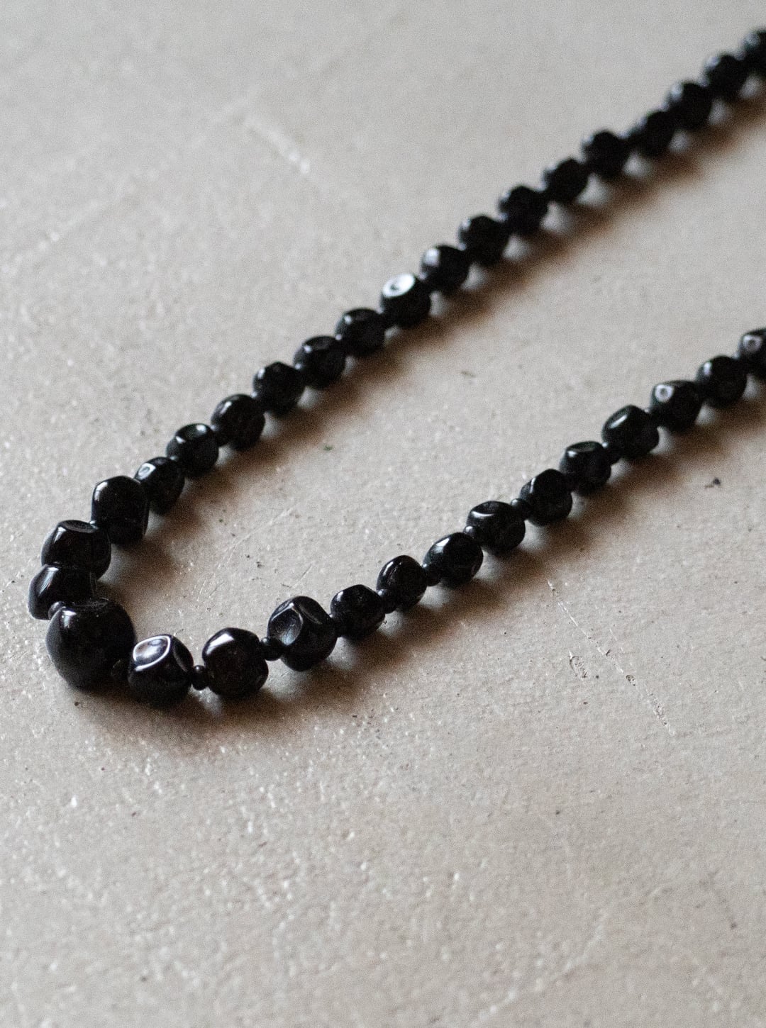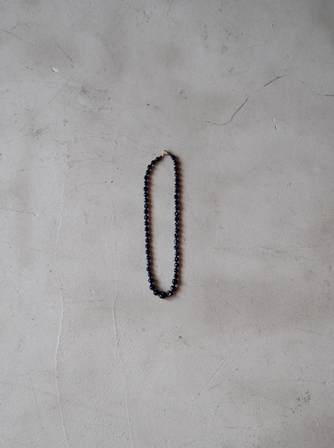 黒いガラス素材のビーズを連ねた、ネックレスの古物になります。
