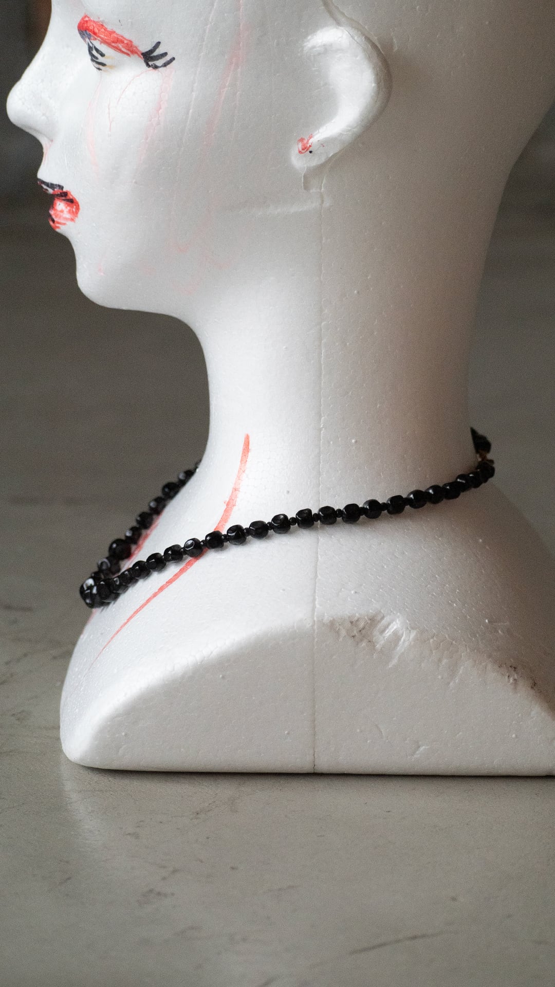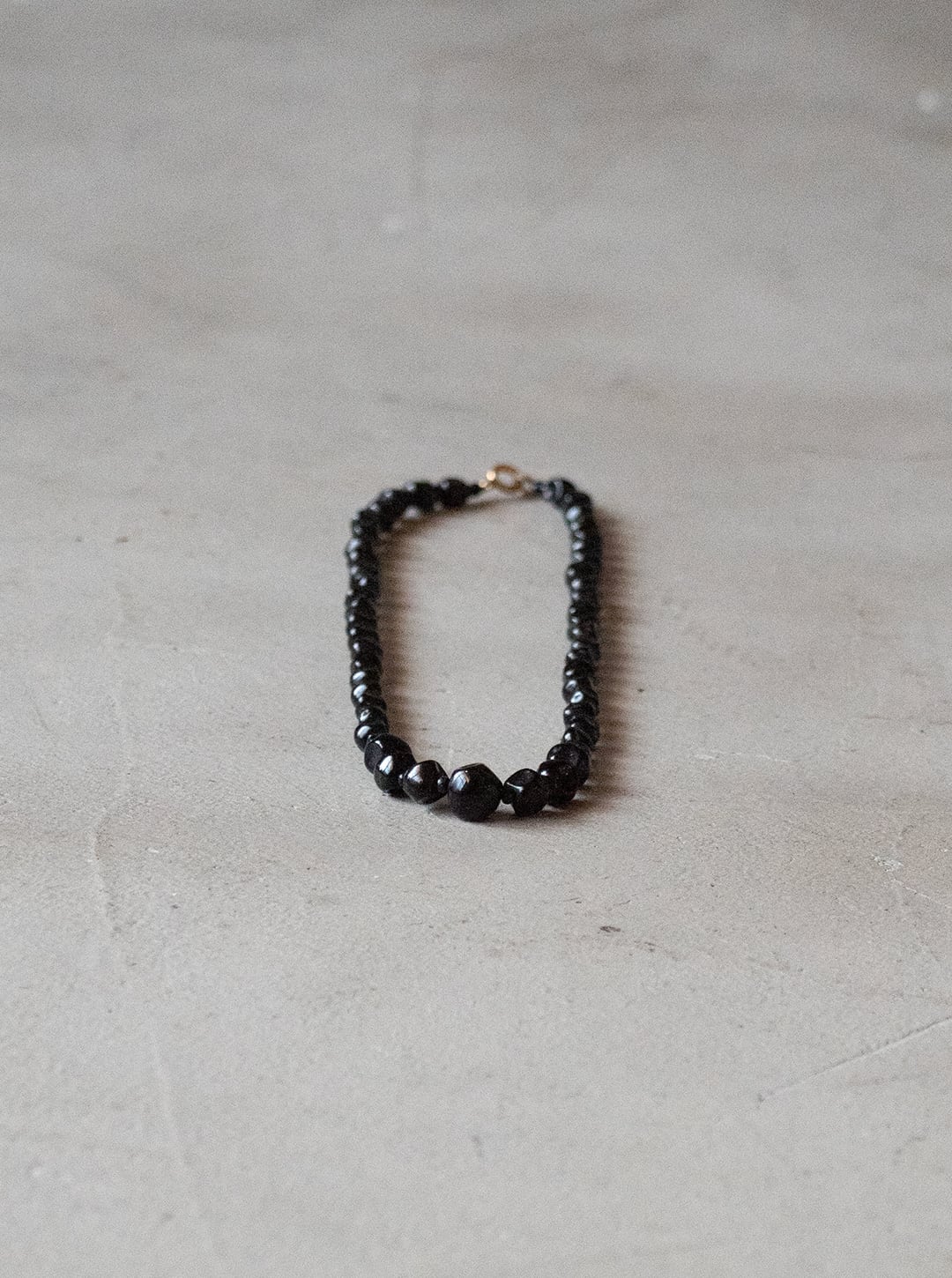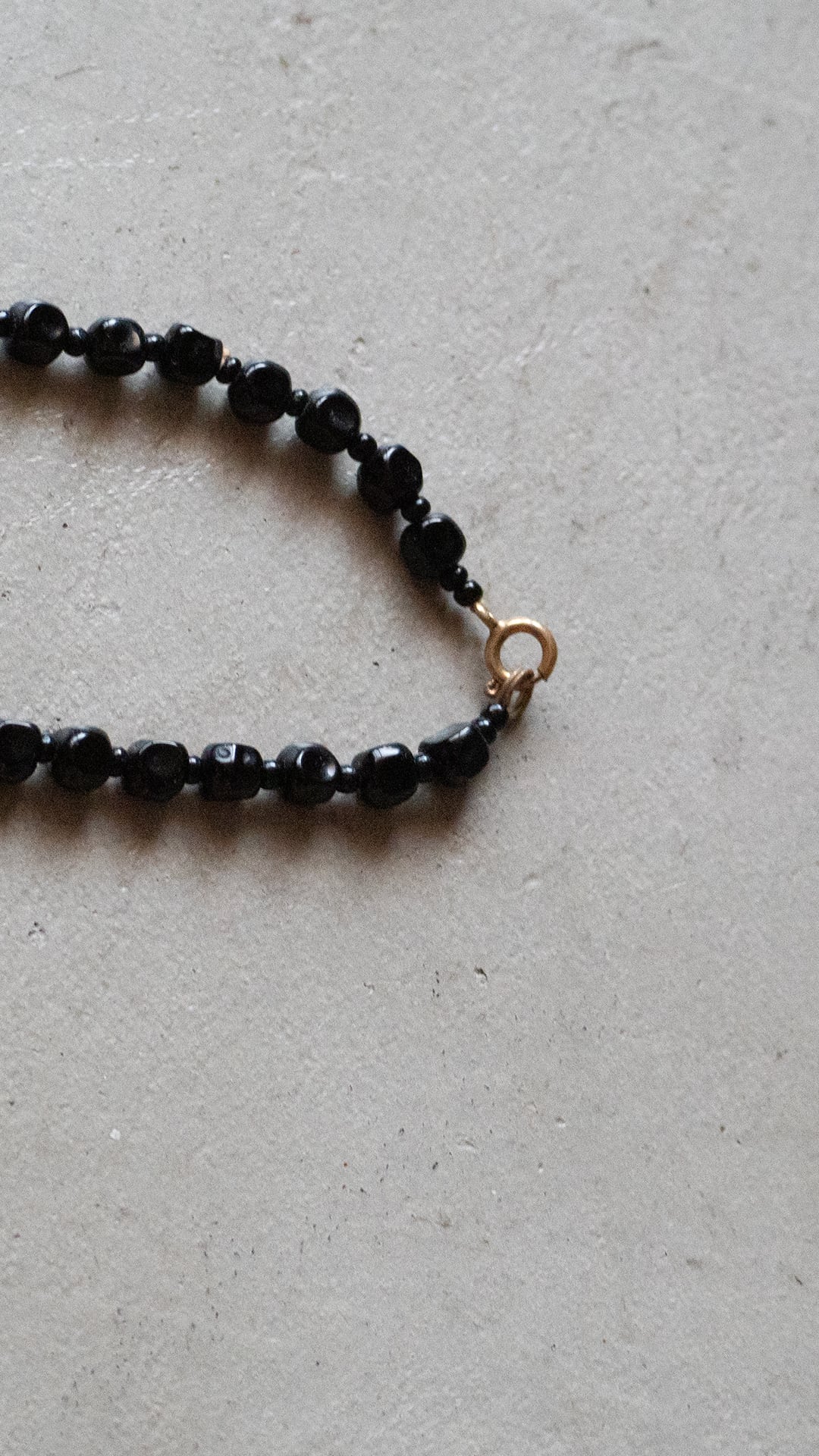 黒いガラス素材のビーズを連ねた、ネックレスの古物になります。