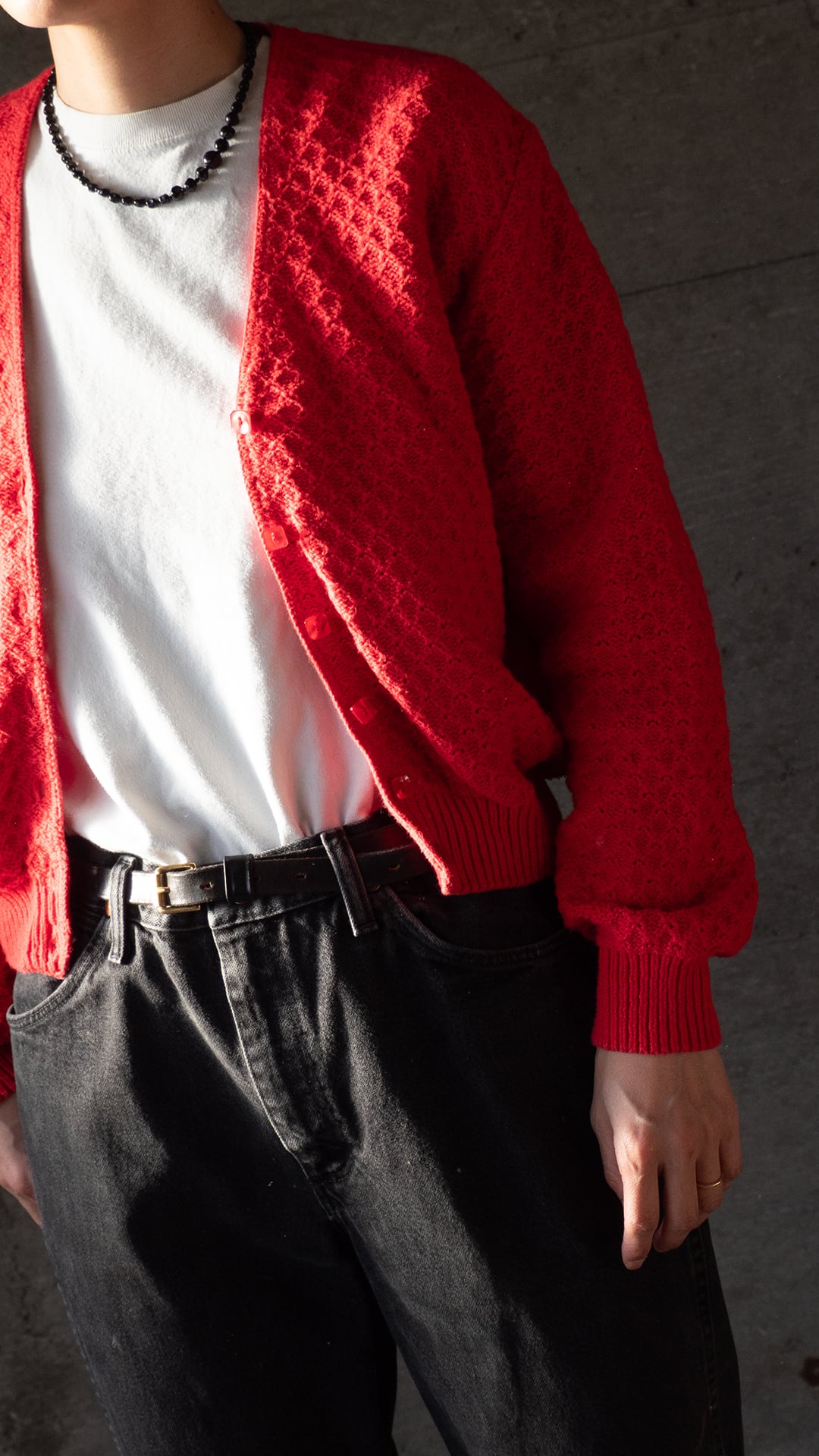 使い古されたカットソーの首元に、このようにシックで上品な印象のネックレスは、大人らしいカジュアルファッションとして大変重宝する必須アイテムだと思います。