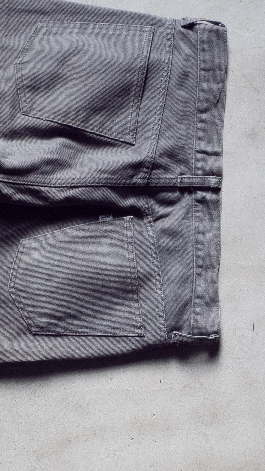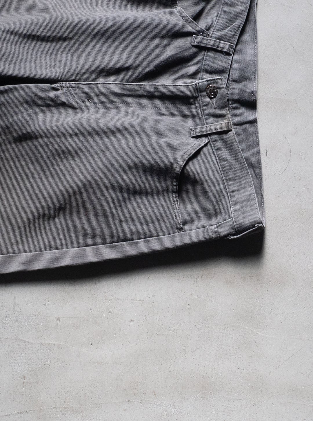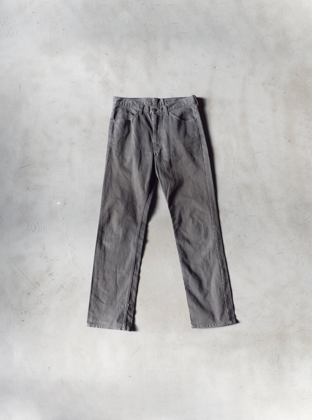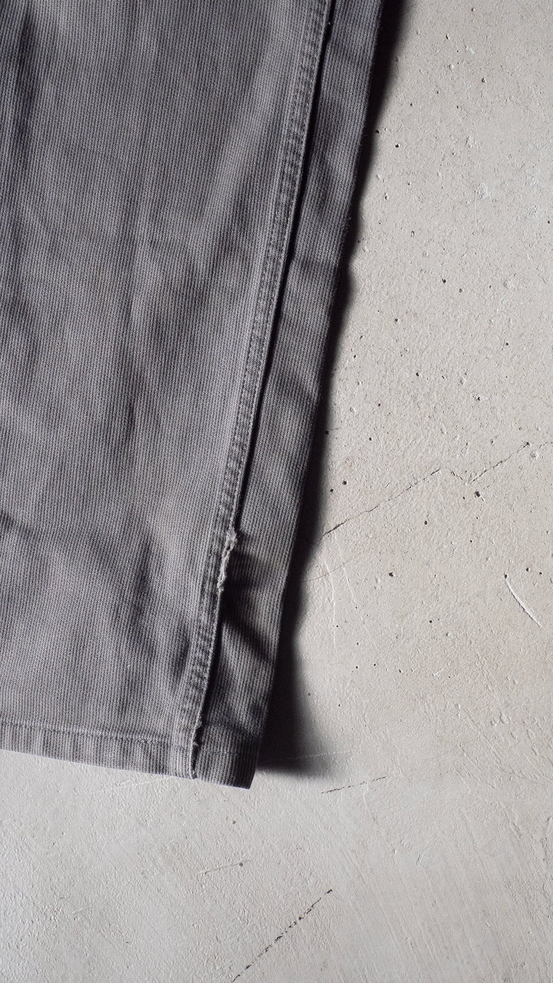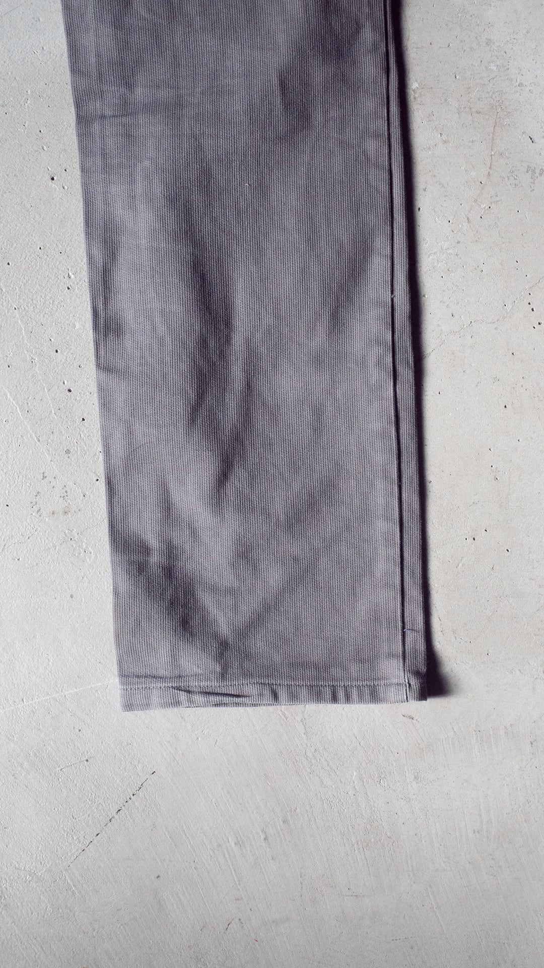 デニムでも、チノでもない、マイナーな素材感ですが、フェードしたグレーカラーとピケ素材とがマッチして、着回しやすいパンツになると思います。