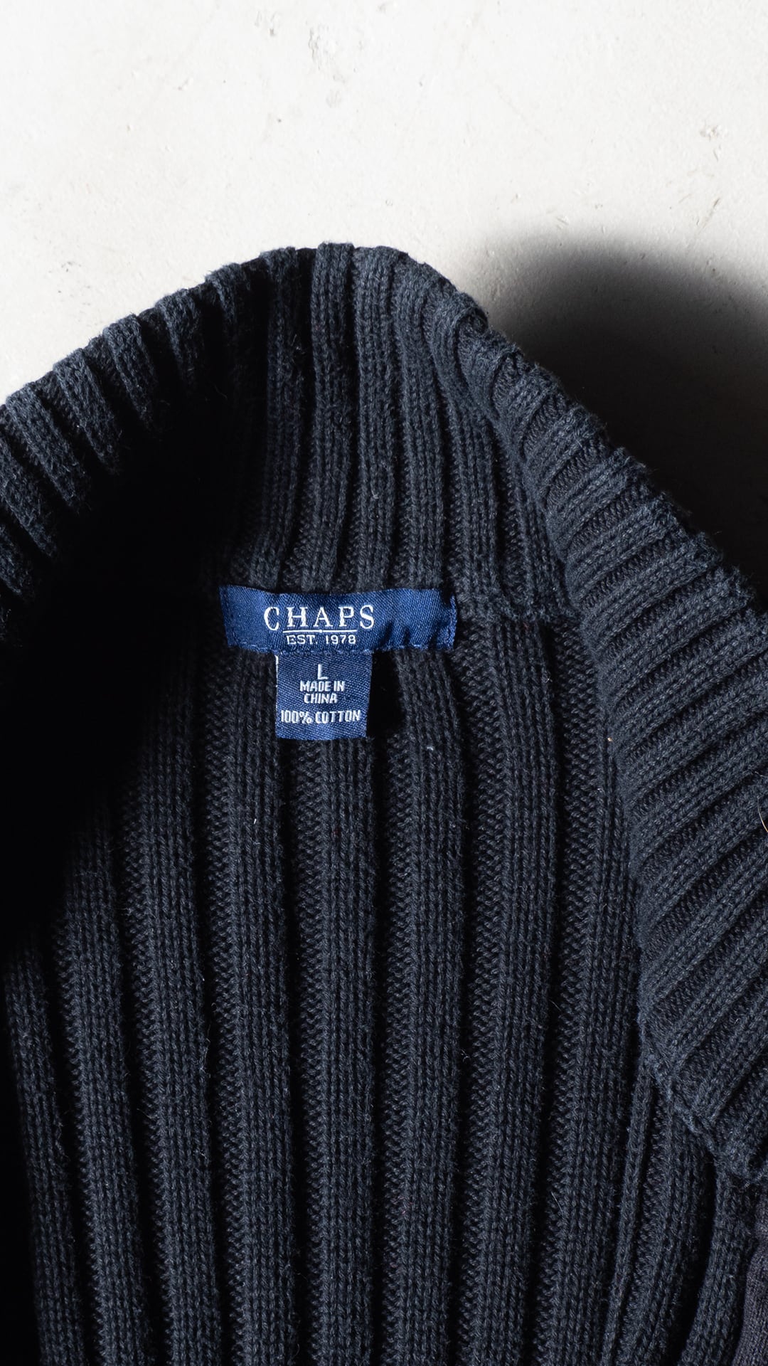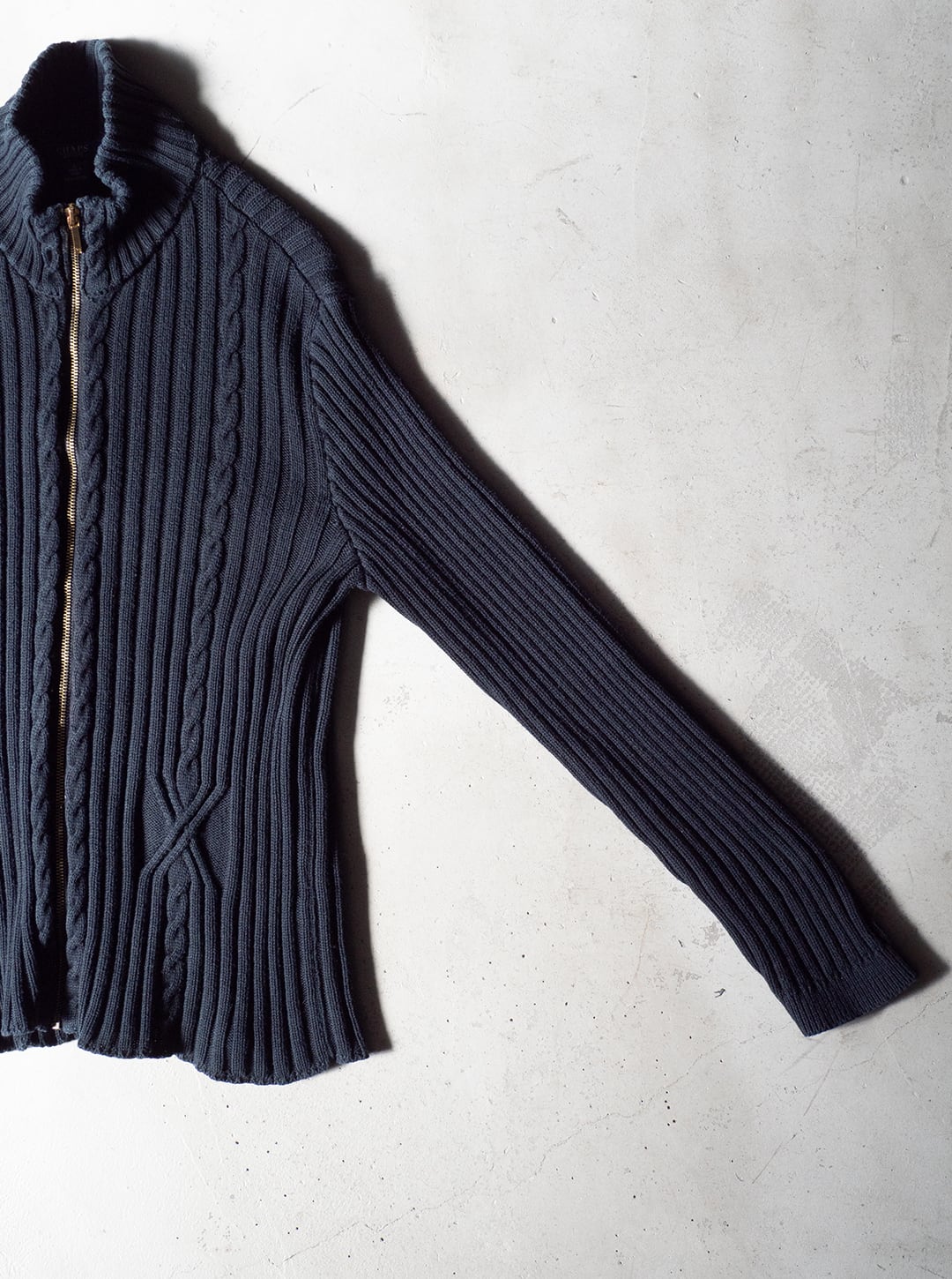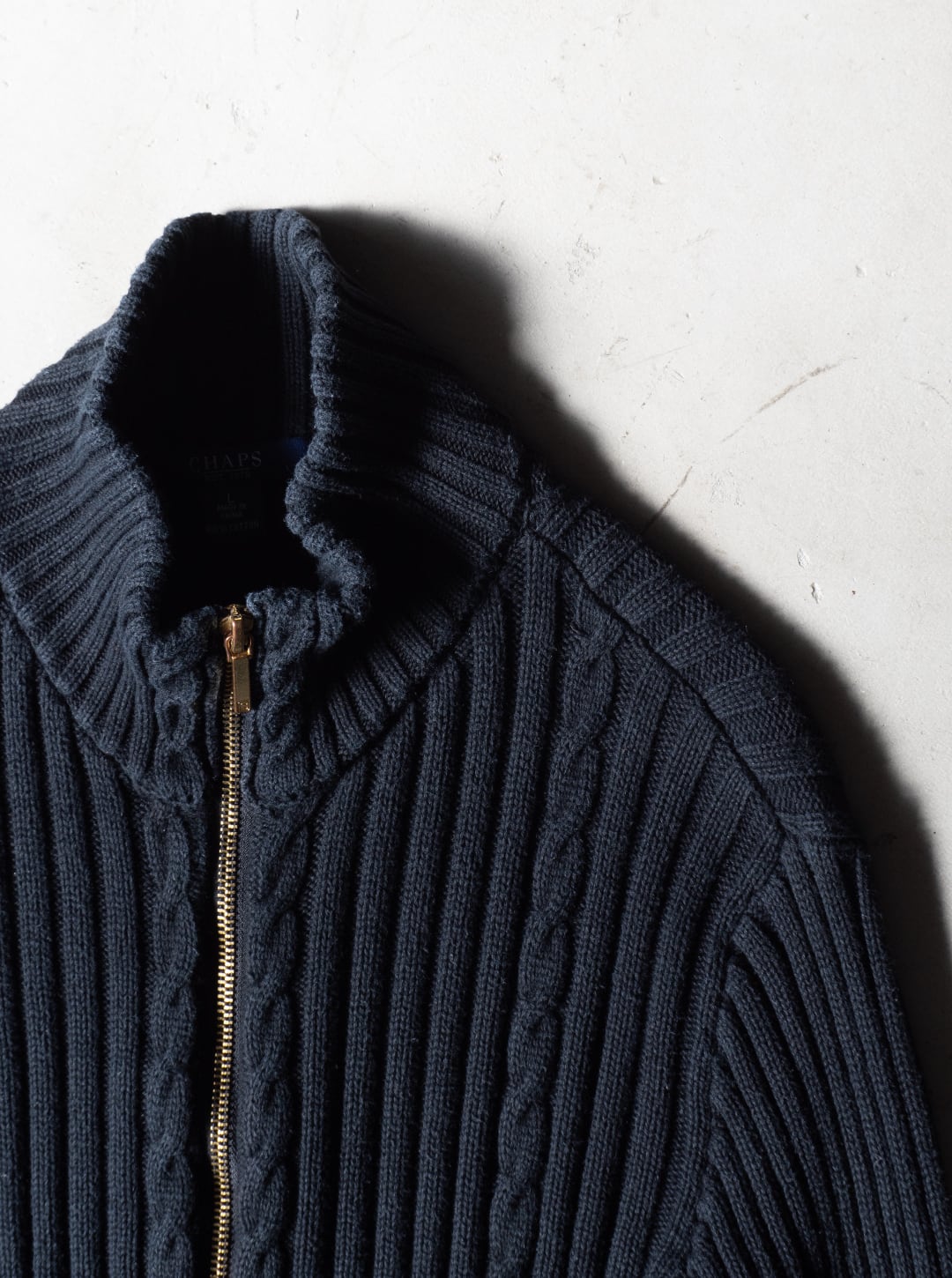 CHAPS(チャップス)のコットン素材のケーブル編みドライバーズニットになります。