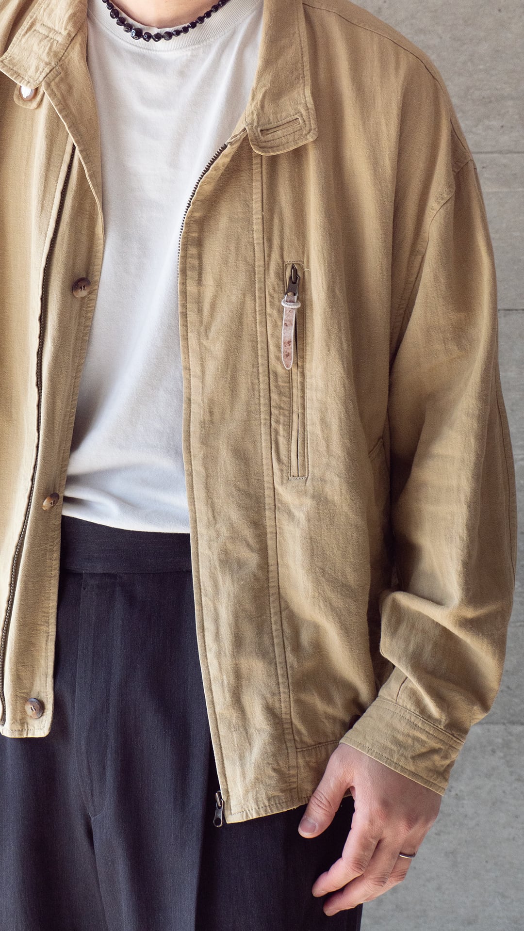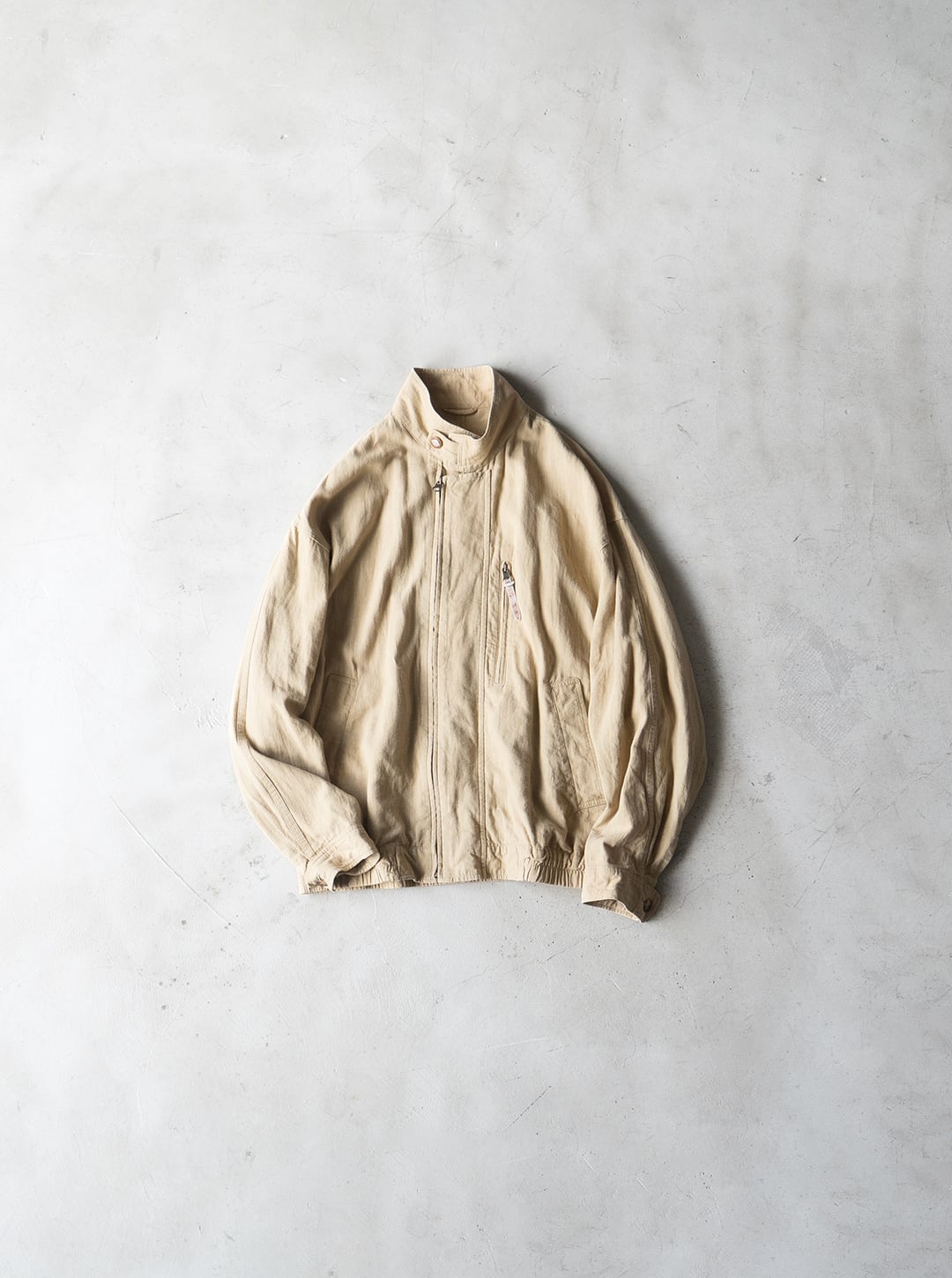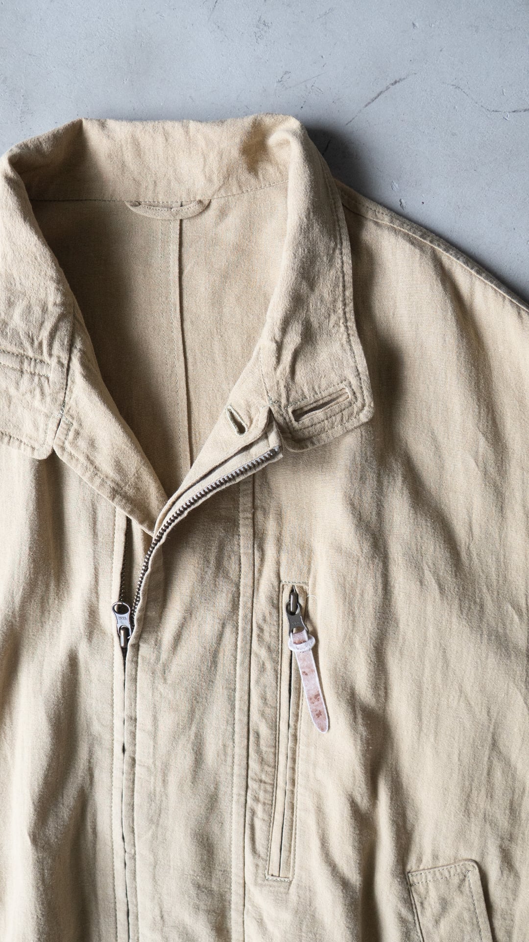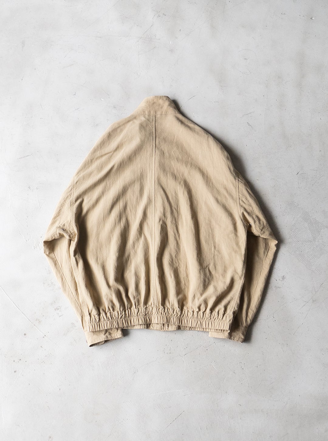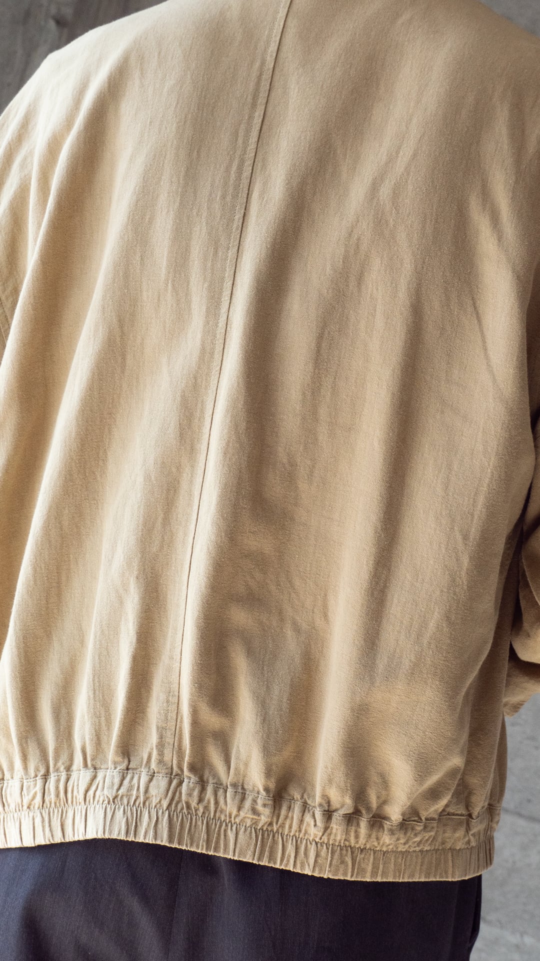 平織りにより風通しが良く、春から盛夏シーズンにかけてインナーを徐々に薄手にしながら羽織ることができる、裏地のない軽いブルゾンという感じです。