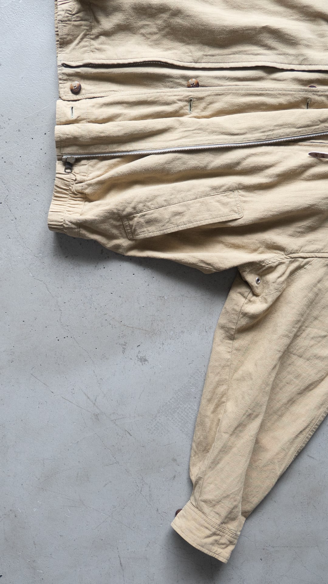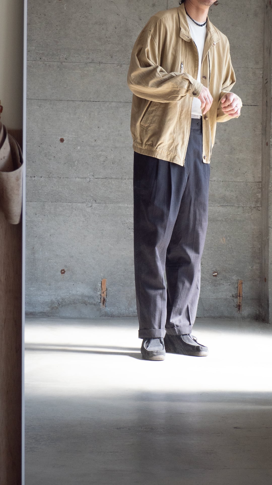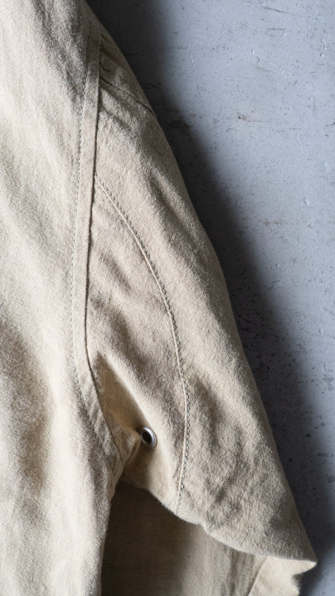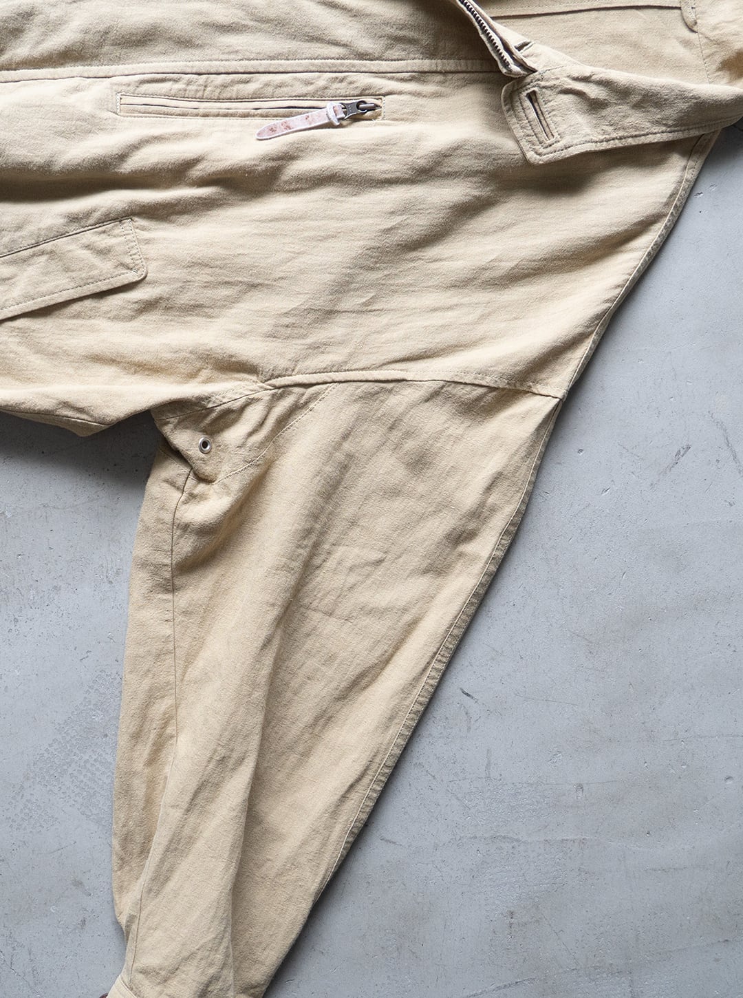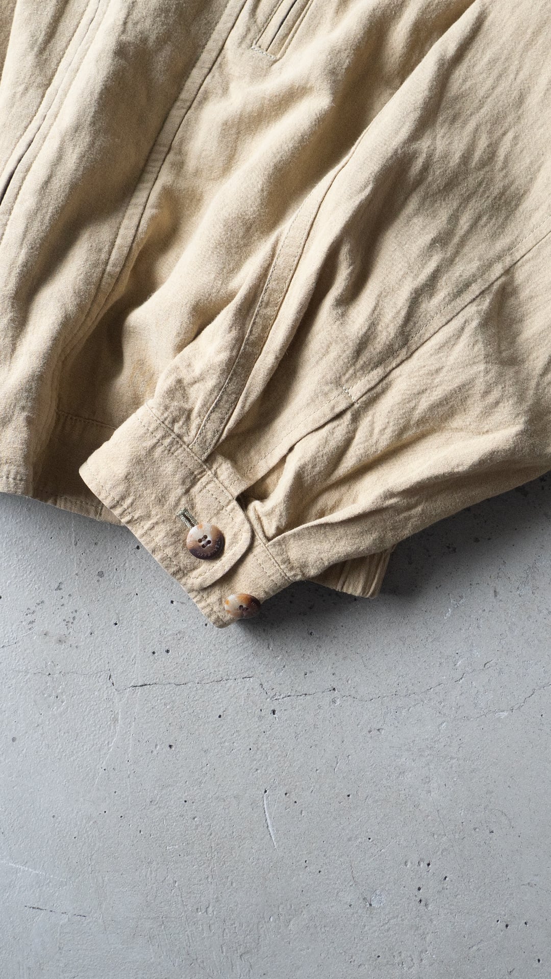 平織りにより風通しが良く、春から盛夏シーズンにかけてインナーを徐々に薄手にしながら羽織ることができる、裏地のない軽いブルゾンという感じです。