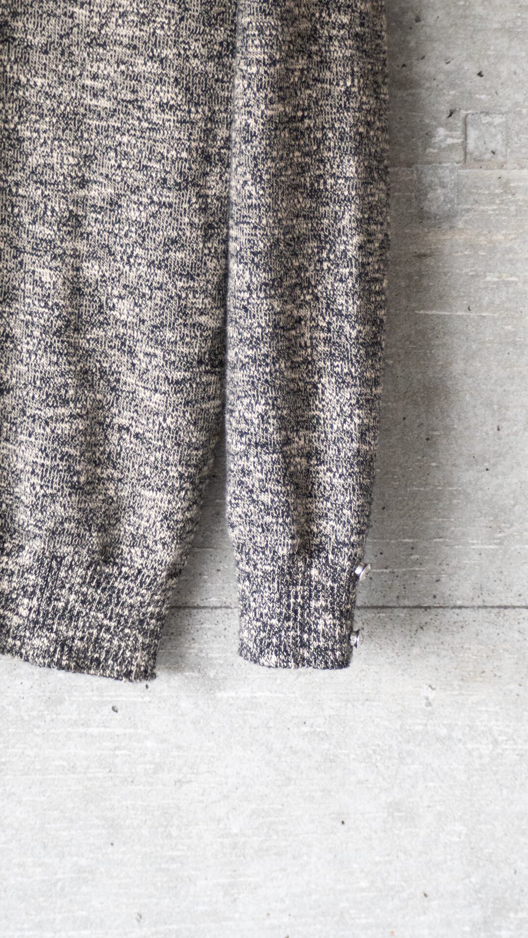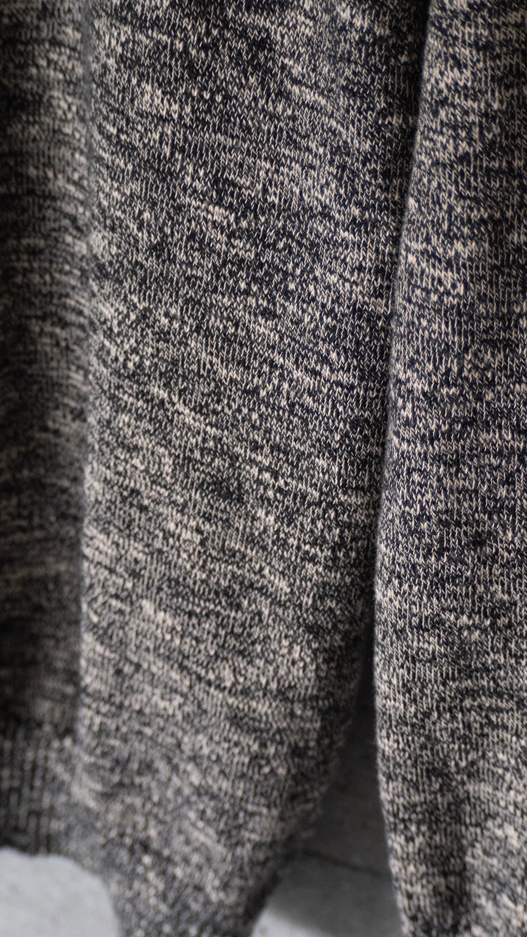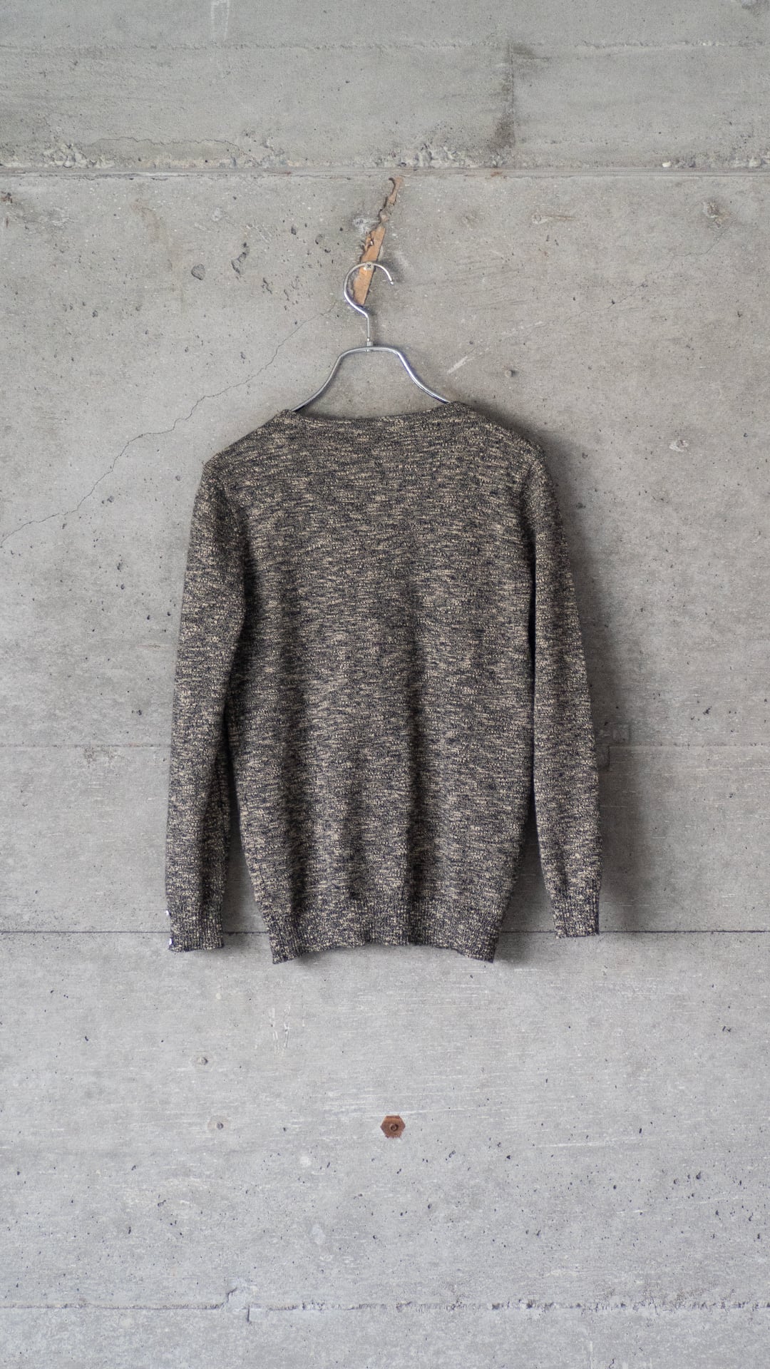 黒とベージュの撚り杢糸で編んだ、天竺編みのカットソーです。