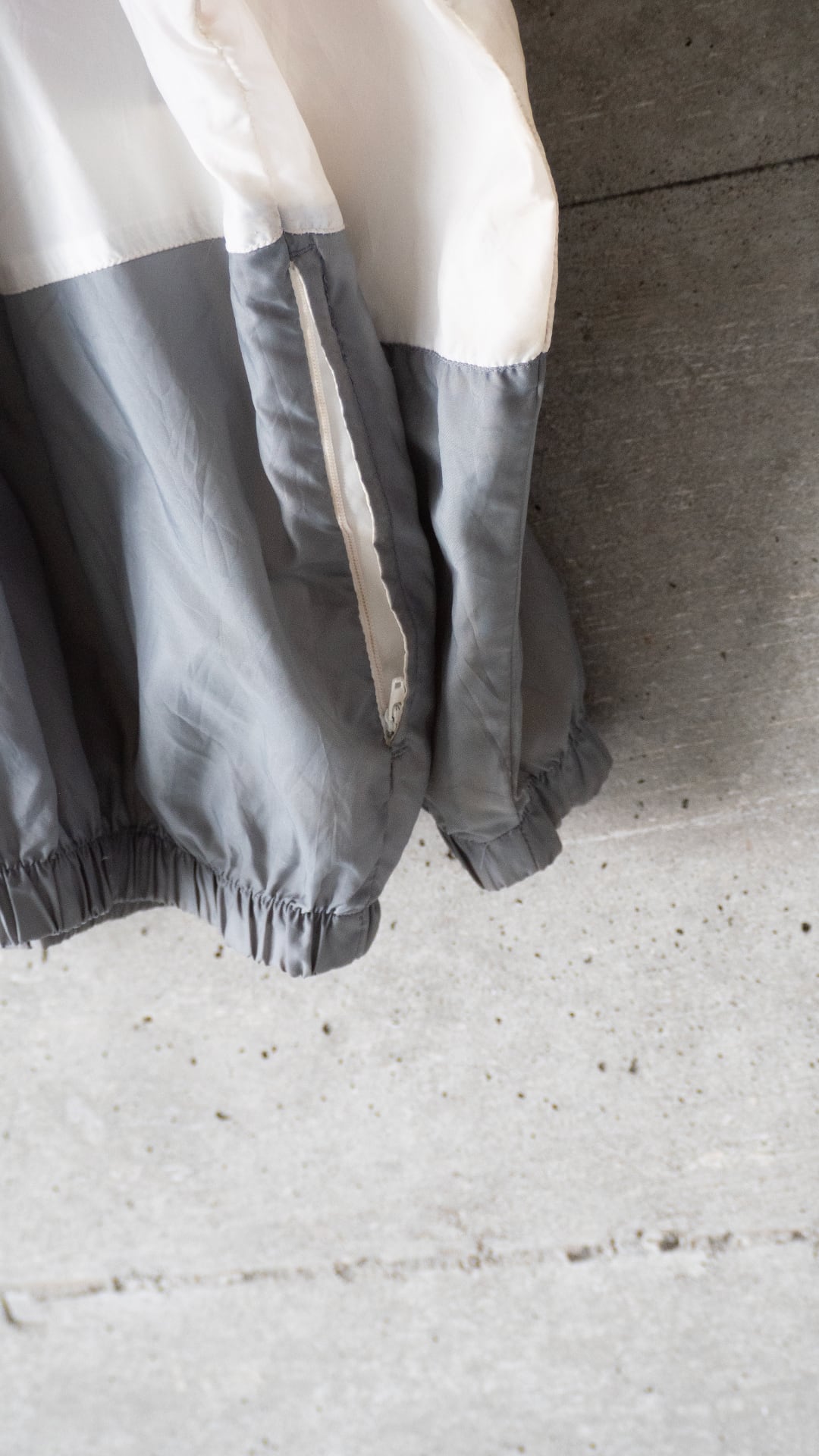 素材表記が欠損しているため推定になりますが、ファブリックはかなり薄手のナイロンだと思います。