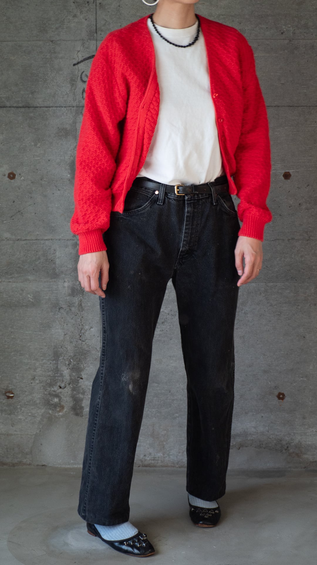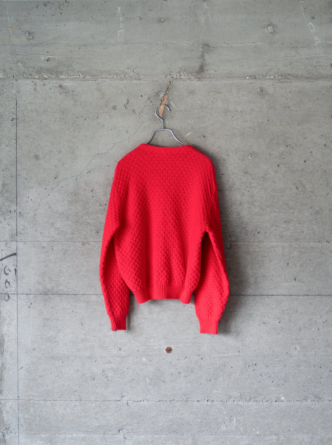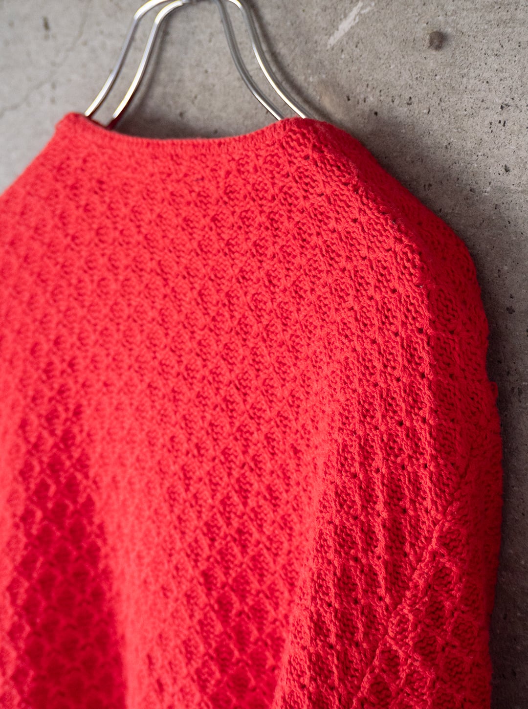本個体は90年代製で、コットン100%の太番手糸をダイヤ柄のような編み組織で成型したものです。レディースで特に小柄な方向けに企画されたものだと思われます。