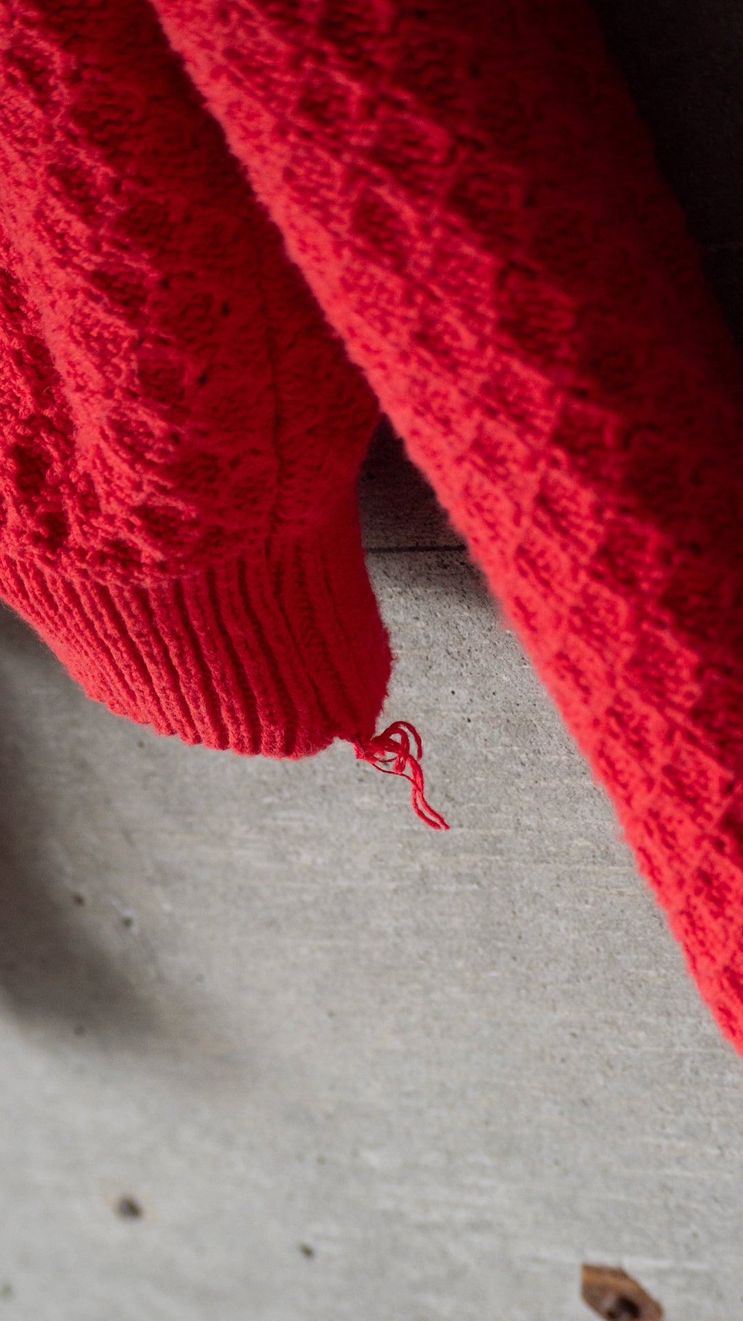 裾リブの左右両脇最下部にほつれがございます(写真16,17枚目掲載)。