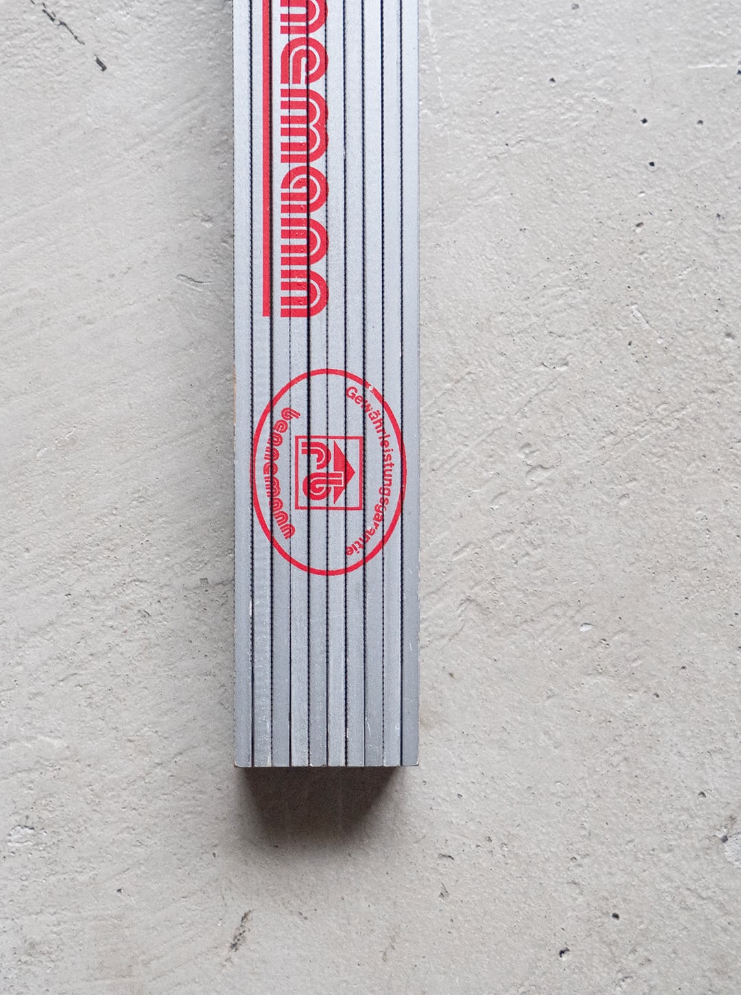 ドイツの屋根排水システムメーカーReinhardt Bennemann GmbH(ラインハルト・ベネマン)社のロゴが入った、折りたたみ式の測定用具「折尺(おりじゃく)」 です。