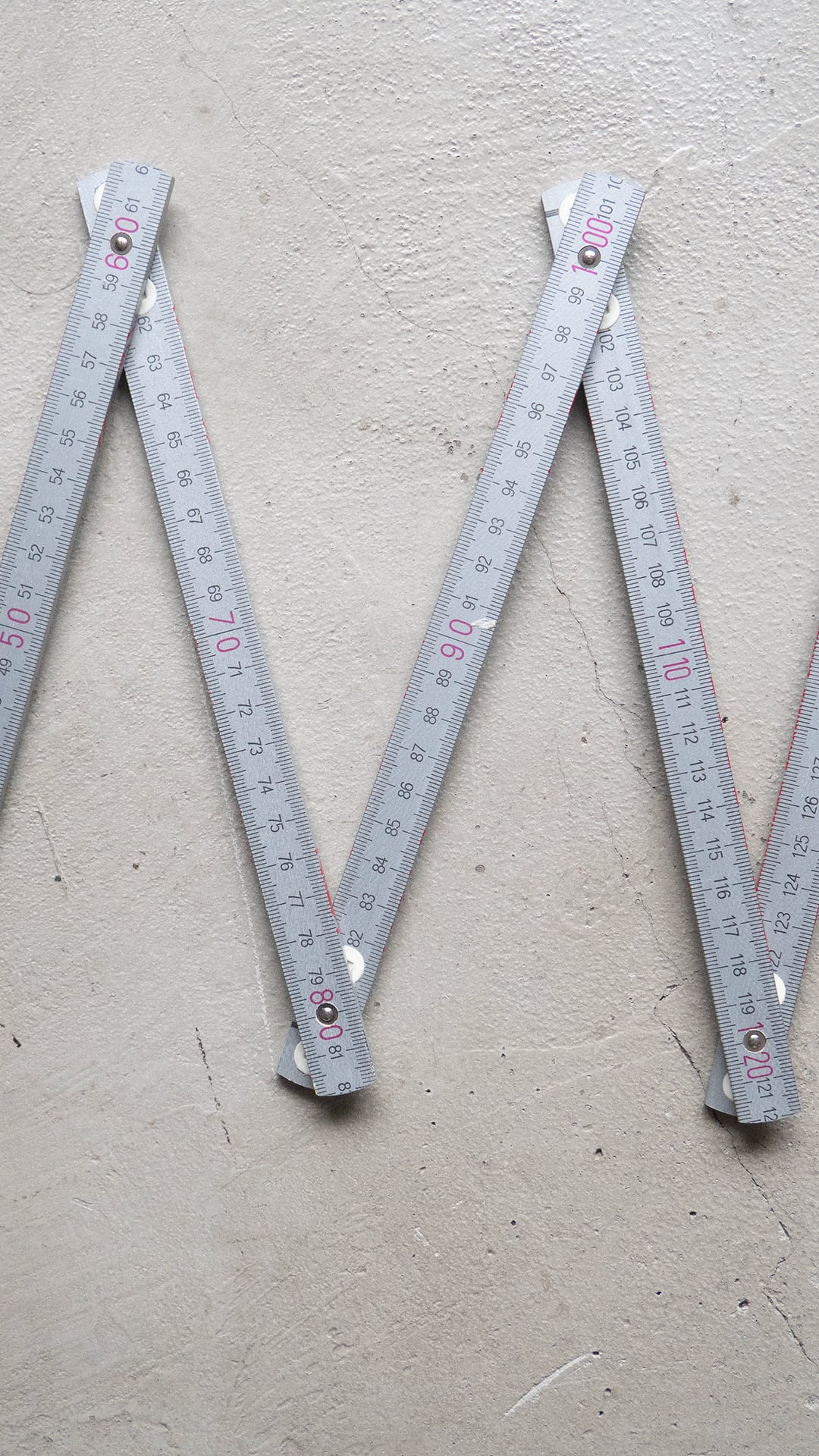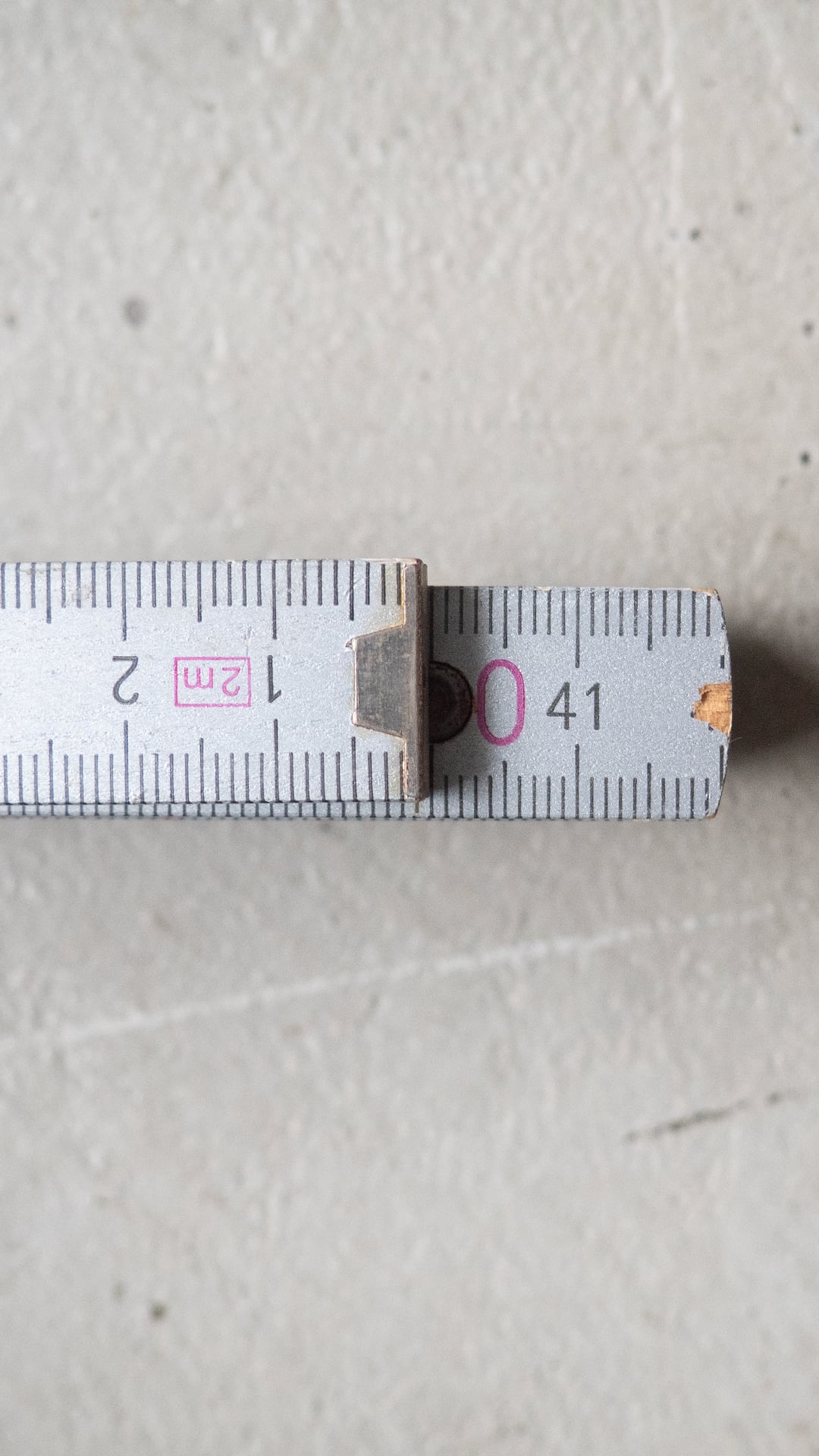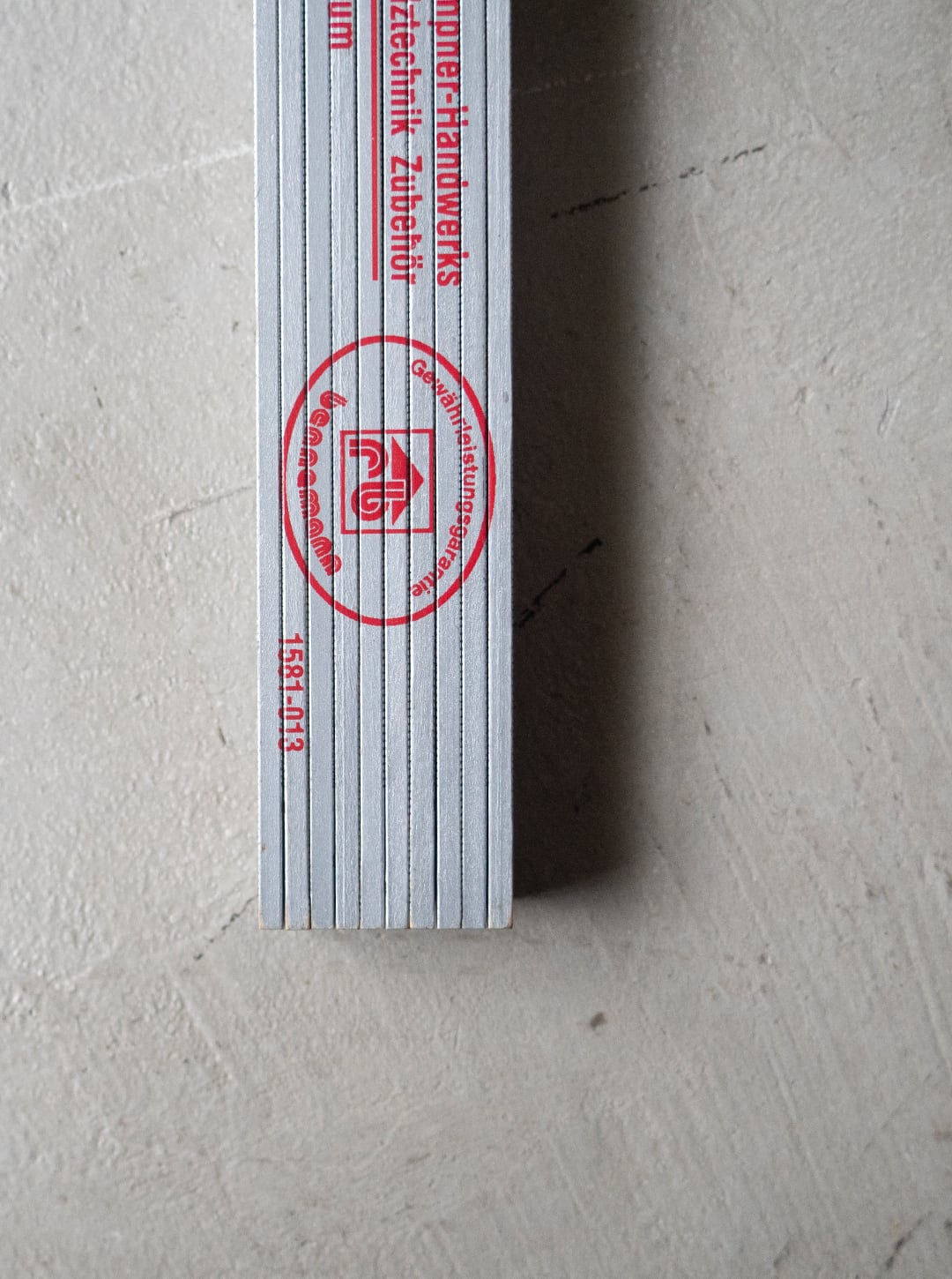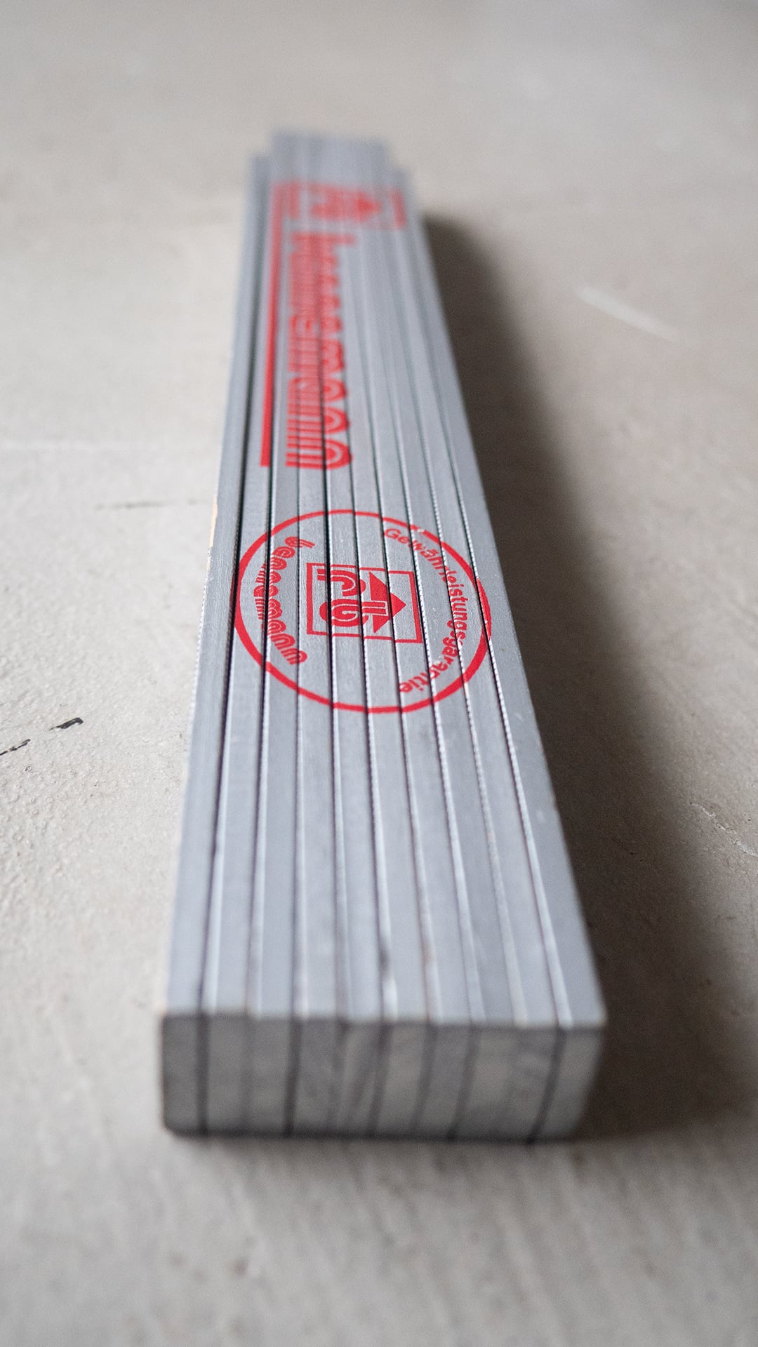 折尺はドイツの職人の間で一般的に使われている測定用具。ドイツ語で折尺は「 Zollstock(=ツォルストック) 」と呼ばれます。その歴史は古く、19世紀半ば、1851年に発明されて以降、このアナログなスタイルの折尺を使い続けており、現在もドイツのホームセンターなどでは1コーナーの売り場があるほどです。ドイツの作業現場では、最新のレーザー距離計と並んで、今でもこのアナログな折尺が必ずと言っていいほど使われています。伸ばすとカチッと真っ直ぐに固定されるため、一人で高いところや離れた場所を測るのに適していることも一因だとされています。