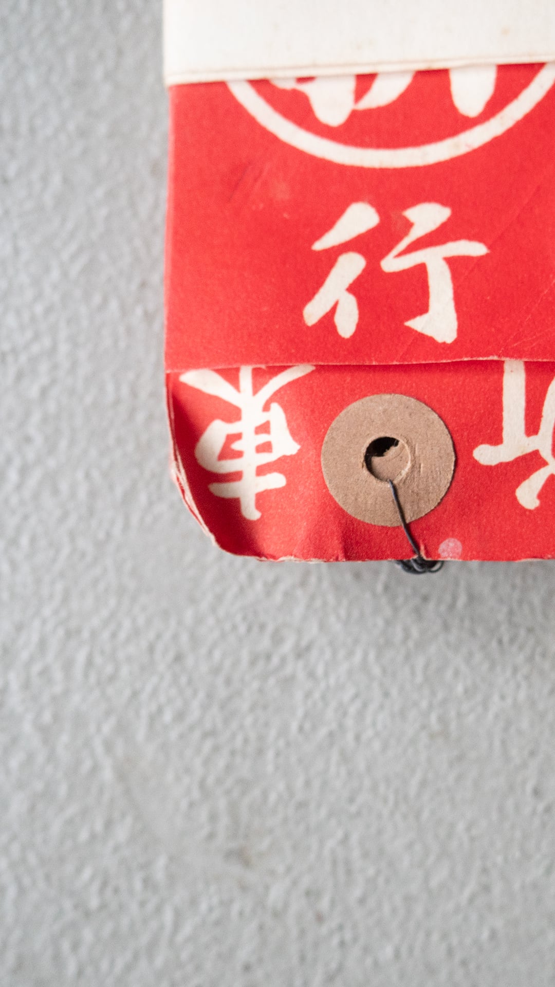 朱色の染み込みプリントに味がある紙製の荷札になります。