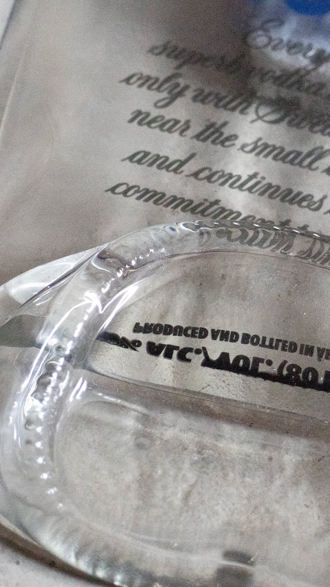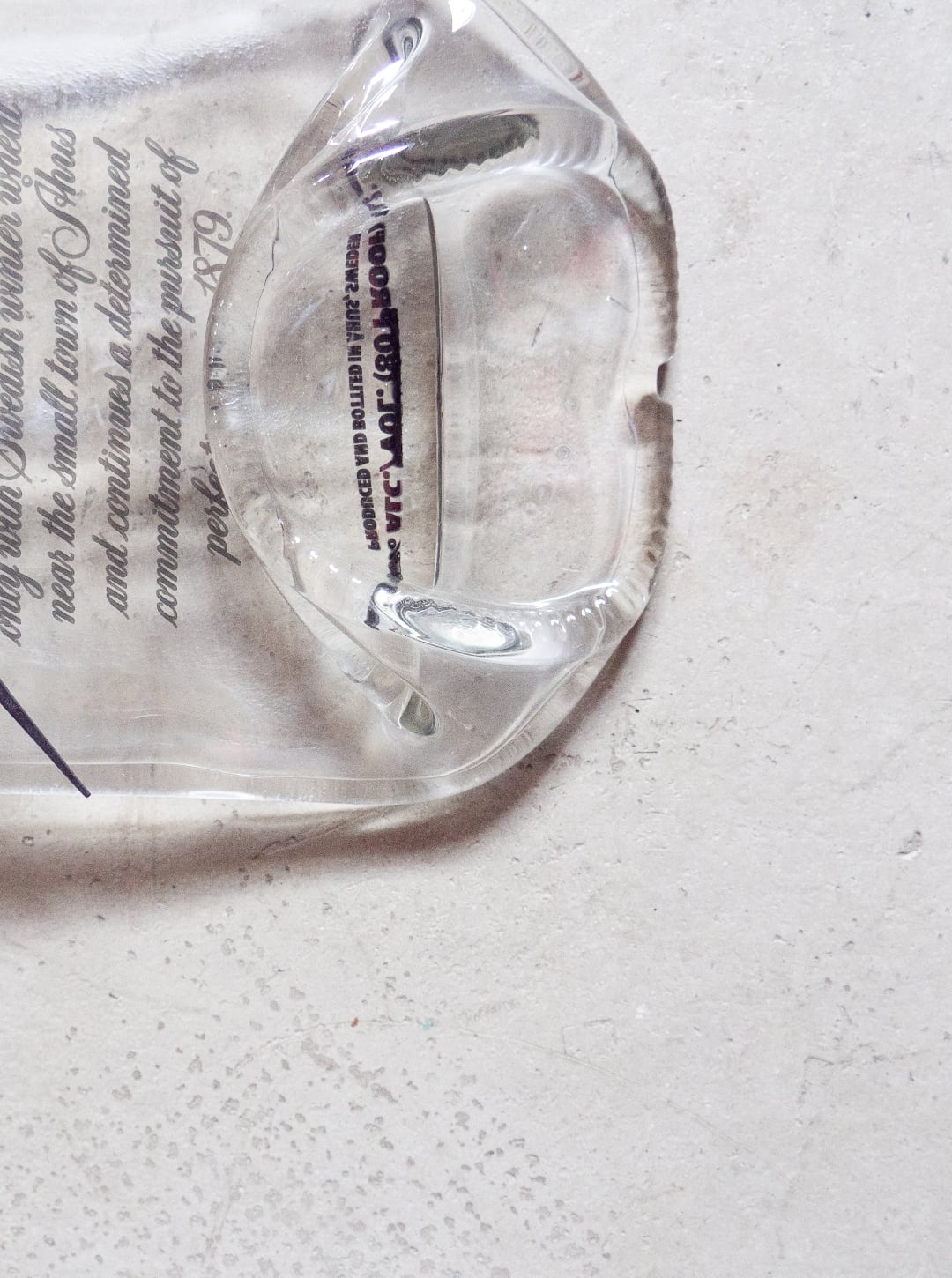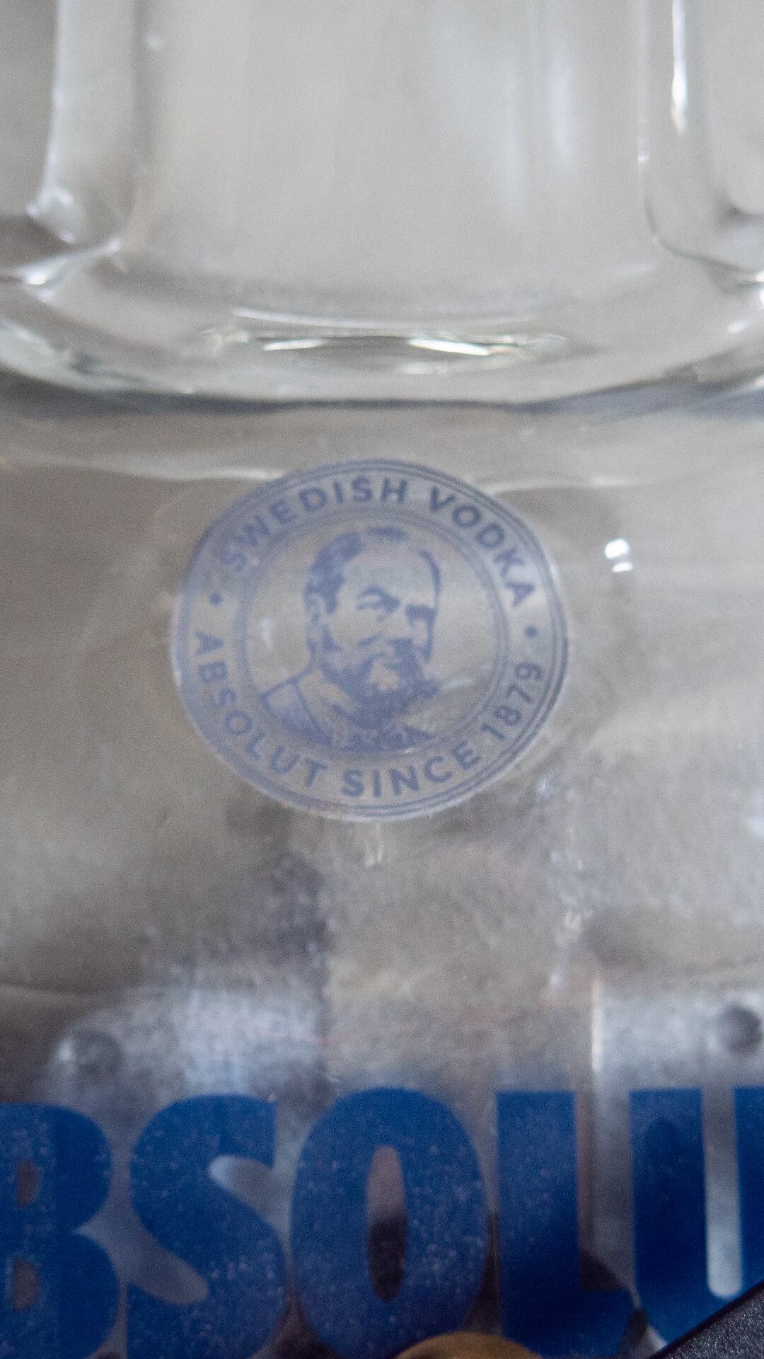 尚、この瓶は、Absolut Vodka(アブソリュートウォッカ)。スウェーデンのブランドで、スピリッツの中ではバカルディやスミノフに続く3番目に位置し、世界的なブランドとして高い評価を得ています。この便のデザイン、2種のタイポグラフィーのコンビもクールです。