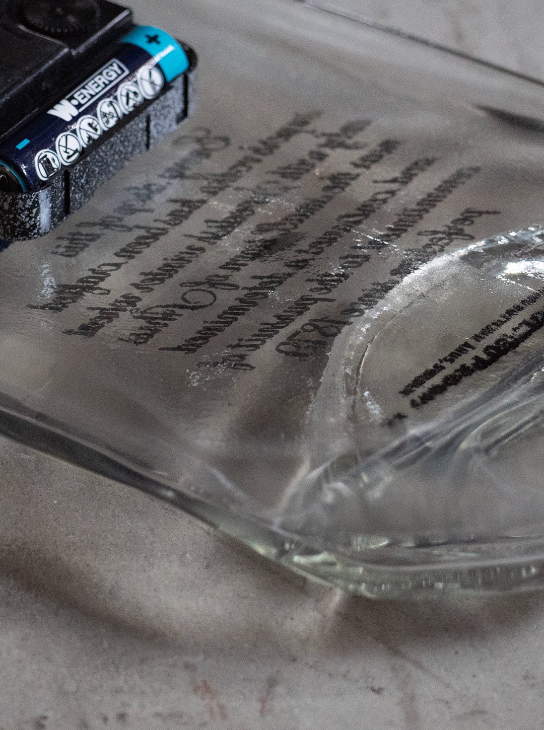 電気炉で高熱で変形させ、アートオブジェとして楽しんだり、このような壁掛け時計にしたものが、わずかですが流通しているようです。