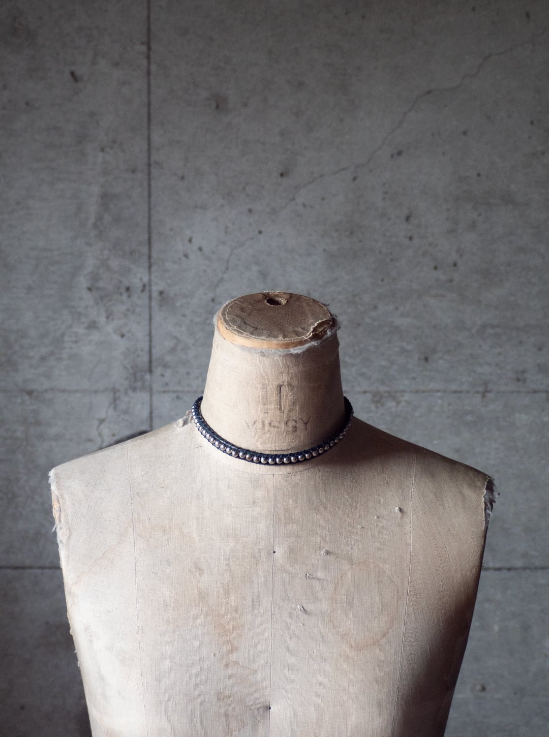 比較的タイト目に首に添わせて巻くタイプのネックレスです。シンプルながら首元に添えることで、クールでスタイリッシュな雰囲気が発揮されると思います。ぜひご検討ください。