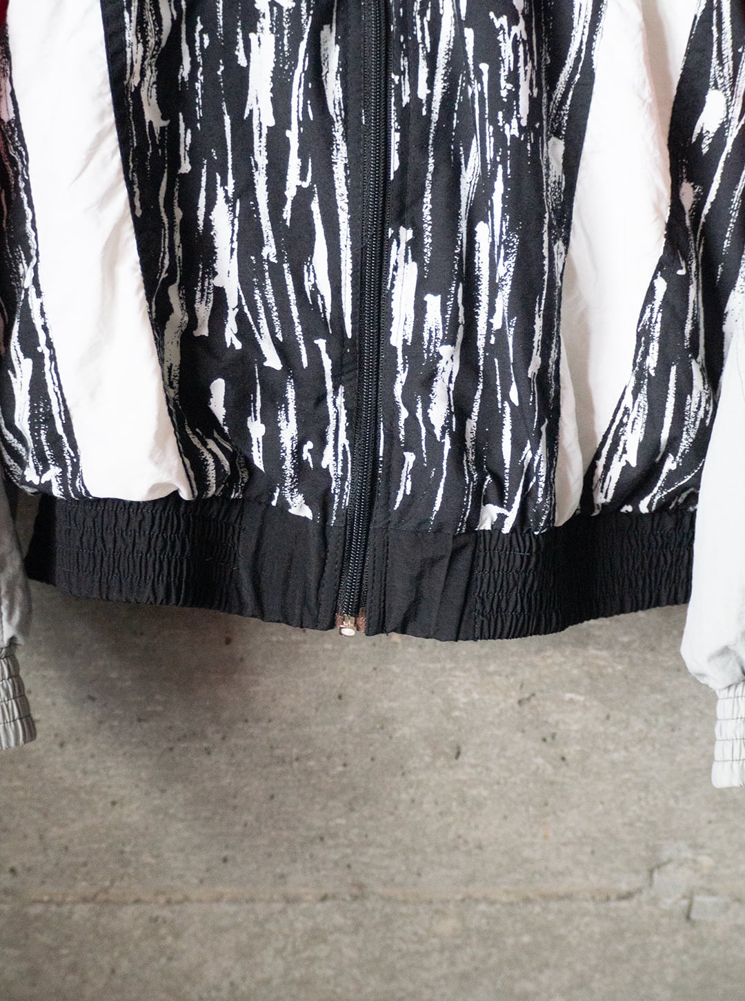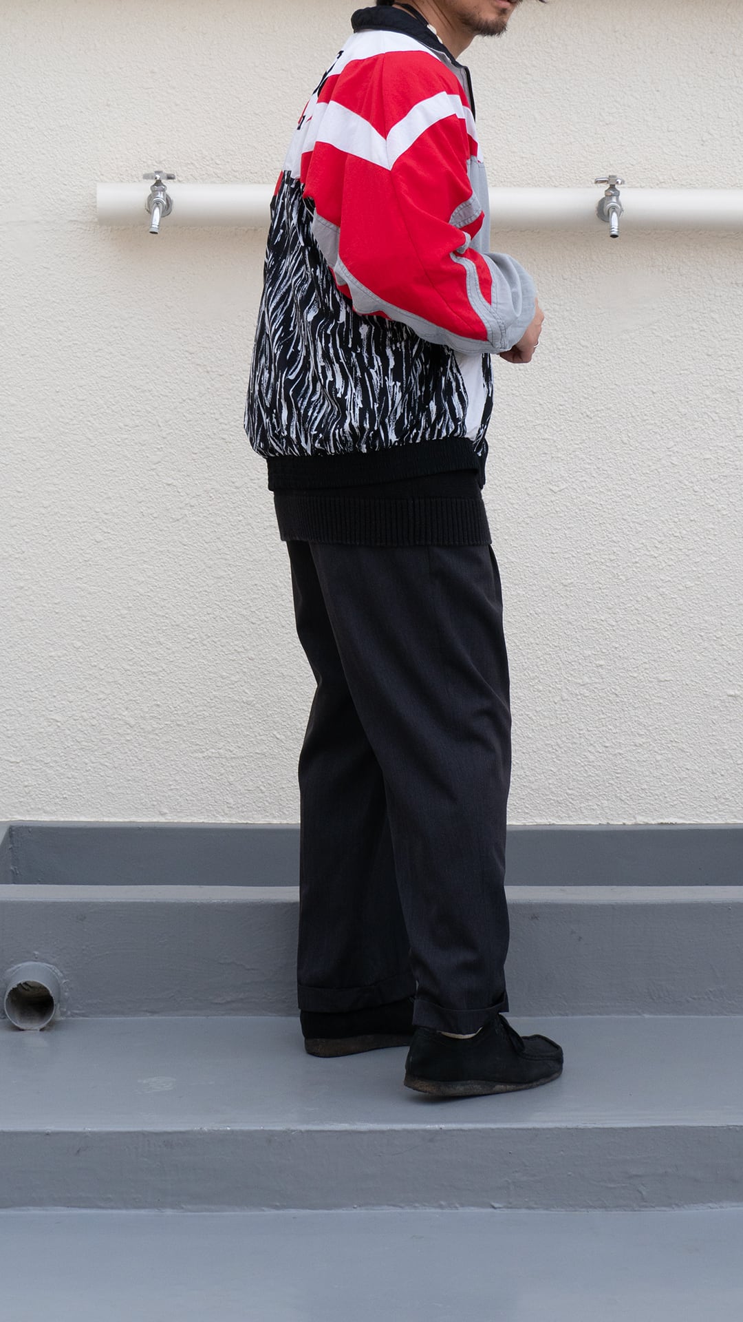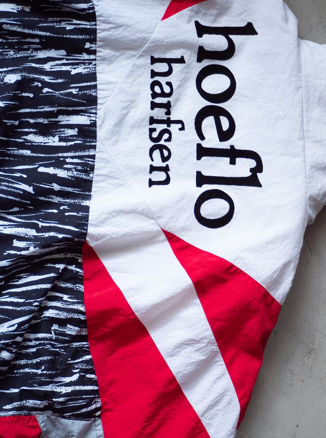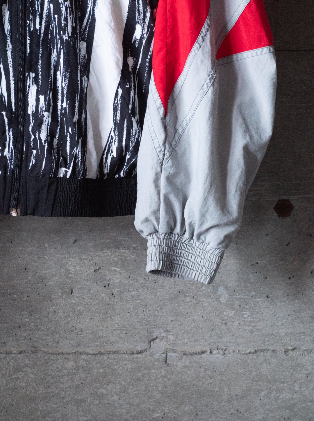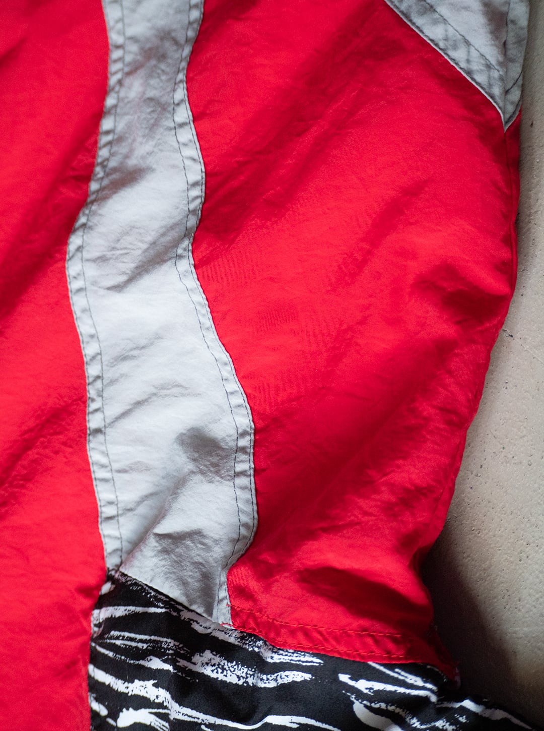 カラーブロックのパタンニングの一画には、筆で描いたような総柄があり、スポーツウェアらしい整然とした配色の中に、有機的とも言える柄が混じった、感性豊かなデザイン。大変クールで惹かれたポイントです。