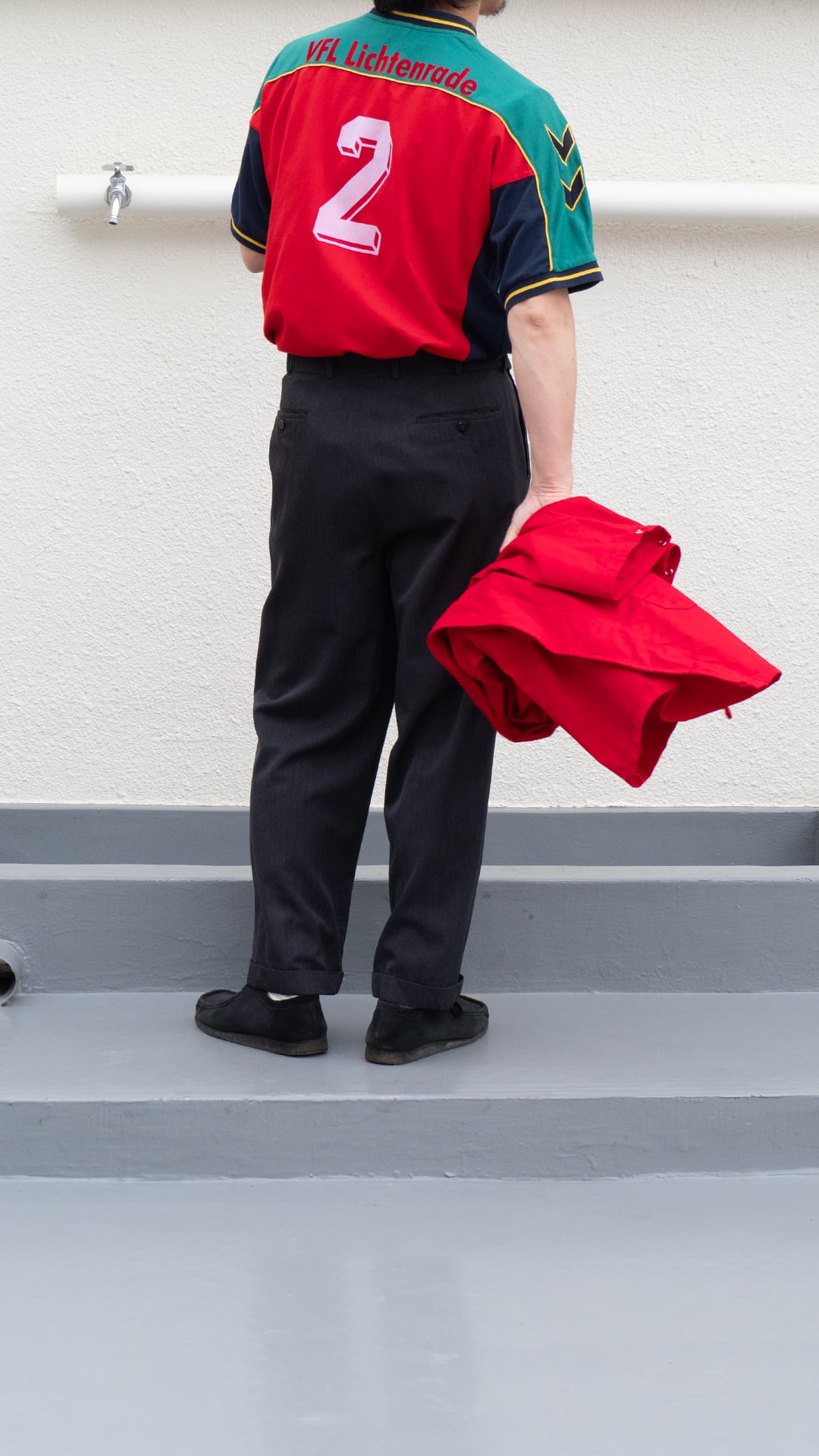 背中にある「VFL Lichtenrade」はスポーツ団体を指し、ベルリン南部で1894年にスタートし現在も2,000人以上の会員を抱える大規模なスポーツクラブです。本個体は、ヒュンメルのボディにドイツローカルのスポーツチームが自分たちのユニフォームとしてカスタムした一着です。