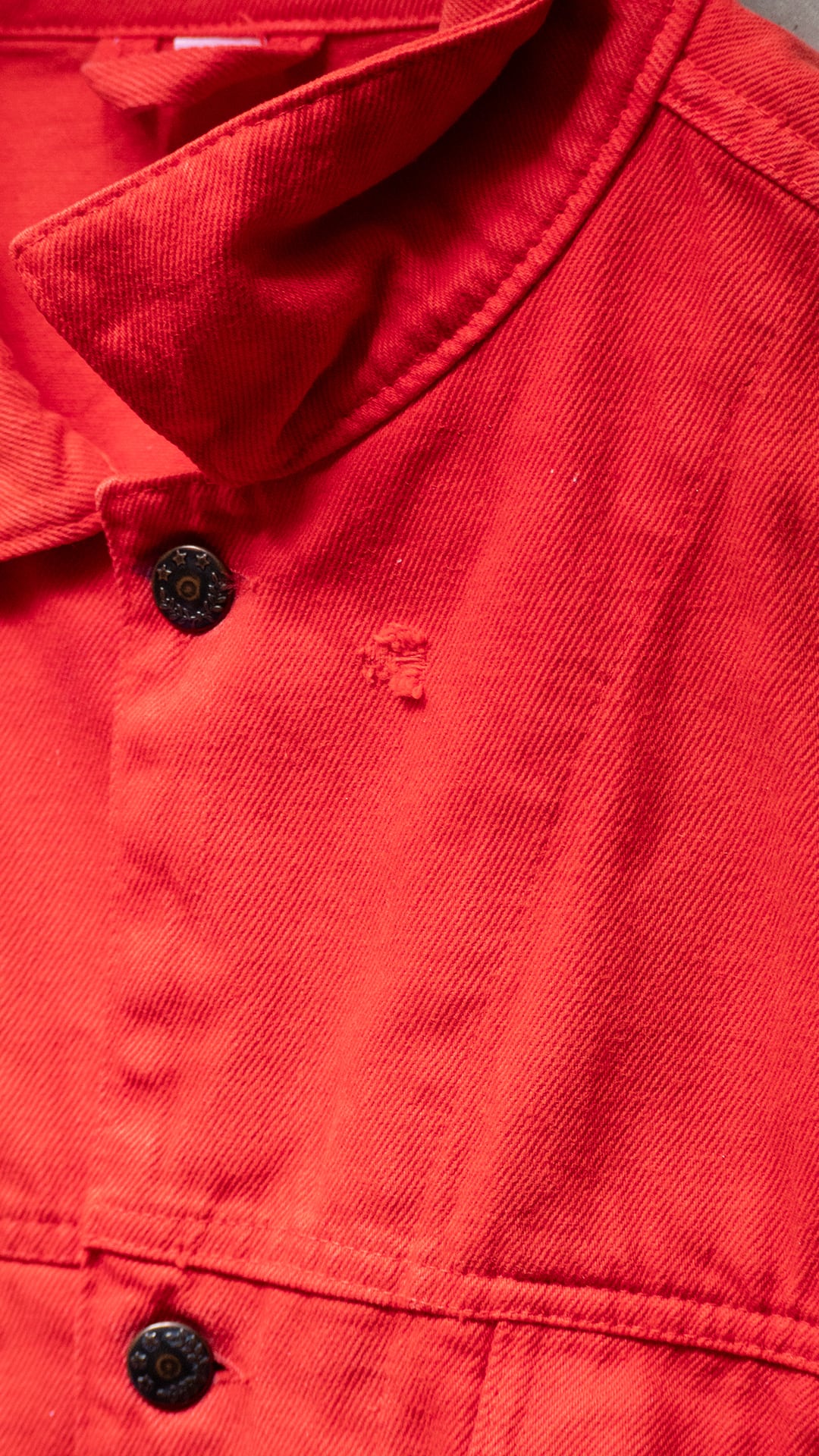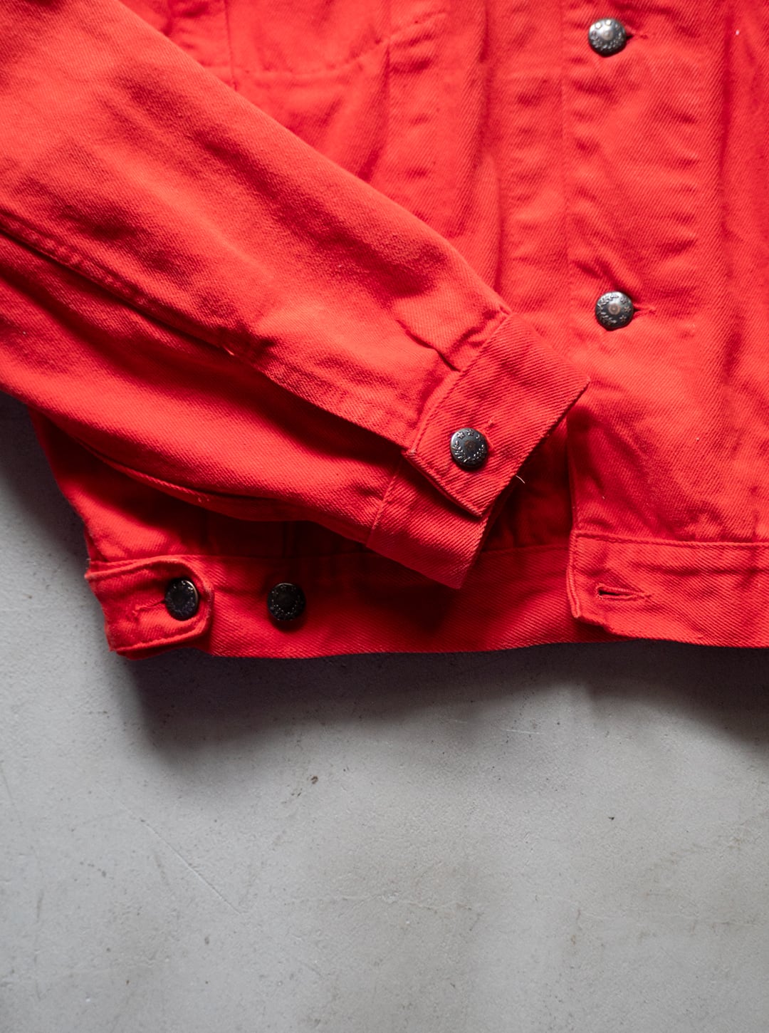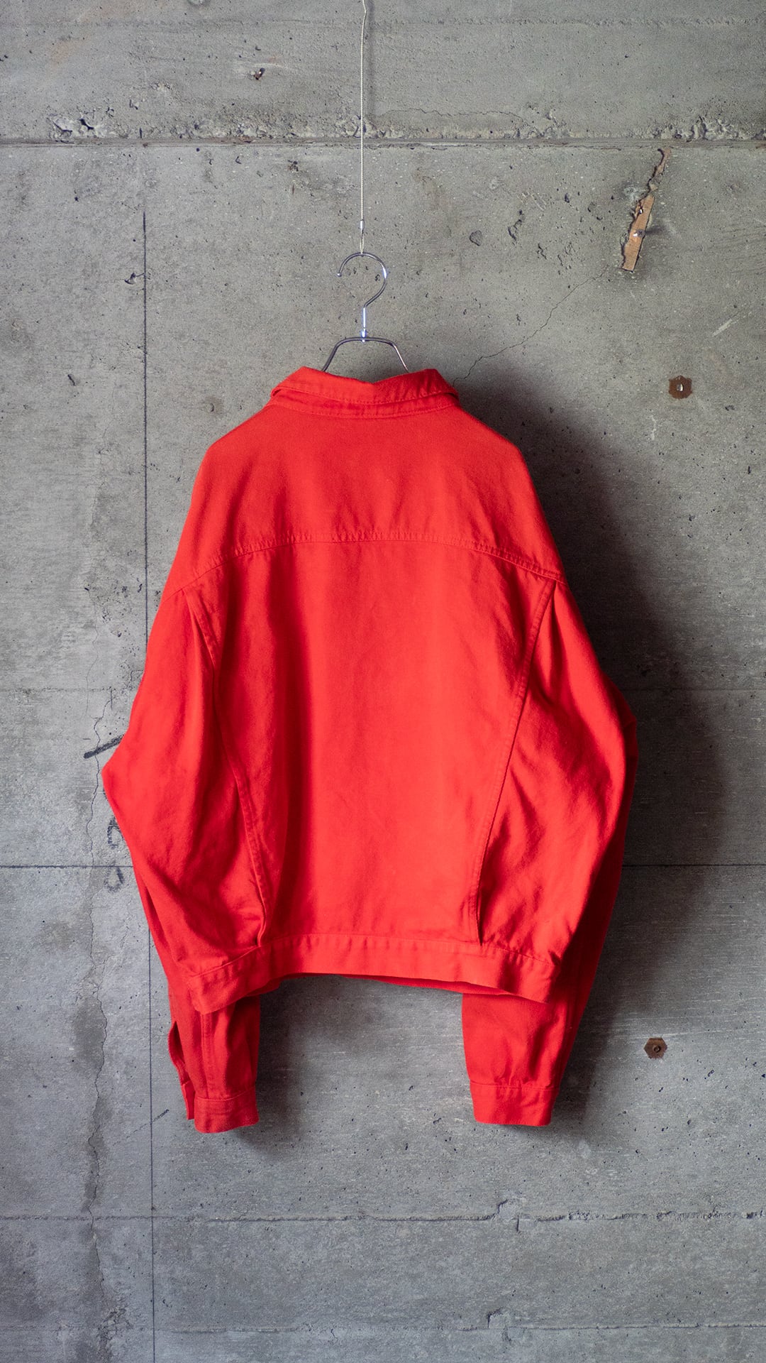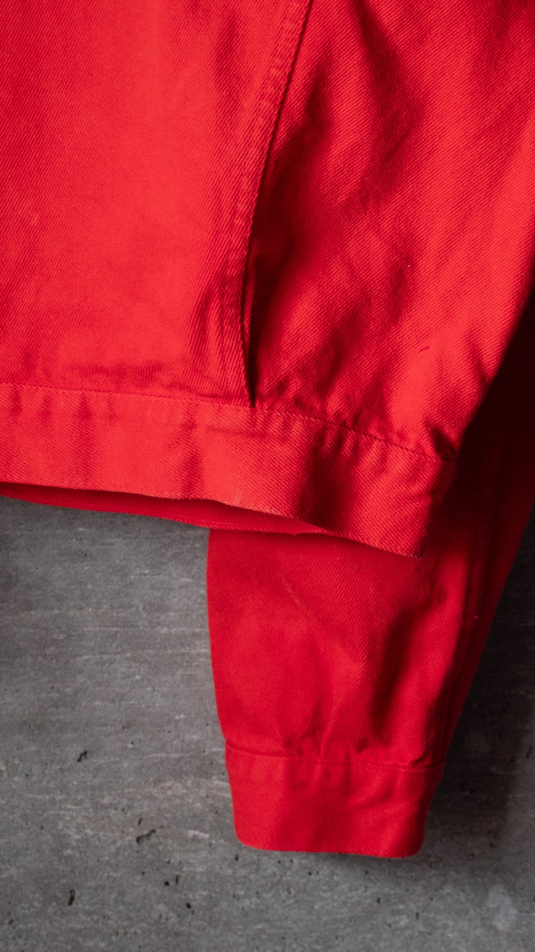 ブランドタグが欠損しており、詳細は不明ですが、色味や素材の質感に惹かれピックした、赤いトラッカージャケットです。