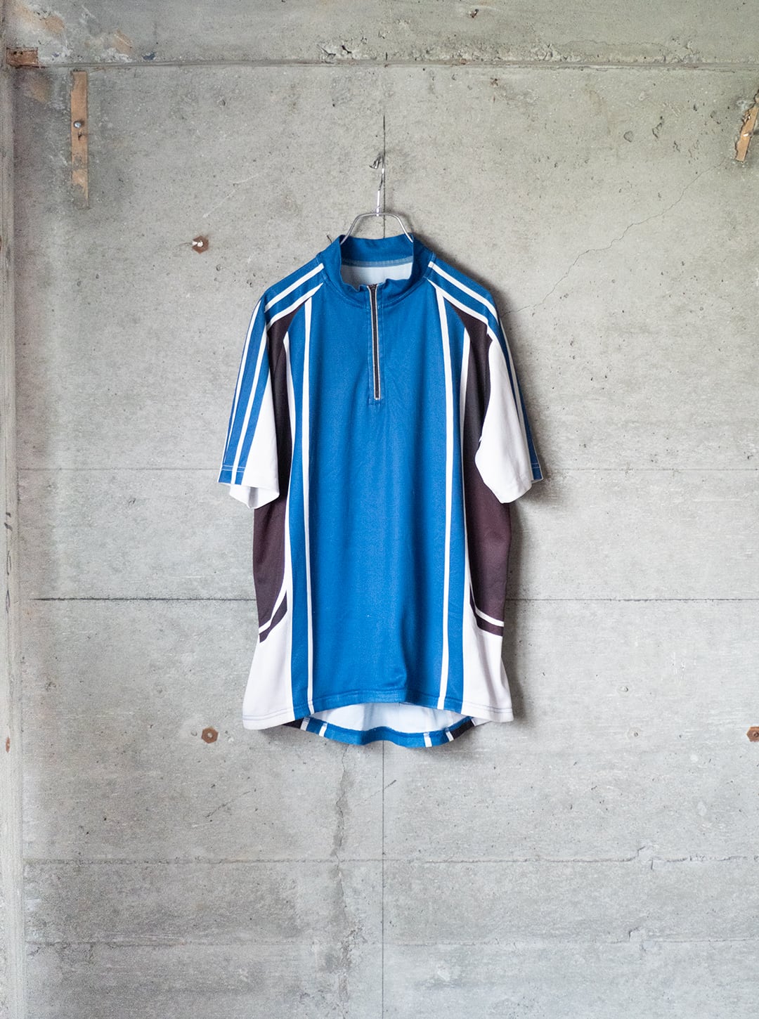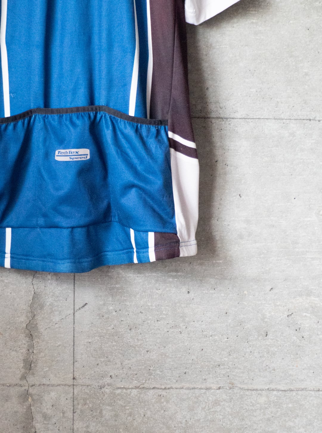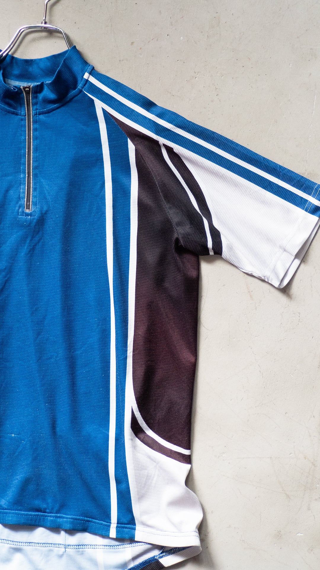 自転車文化が盛んな街・ベルリンでピックした、使い込まれたサイクルジャージ。タグが欠損していますが、調べていくとドイツローカルのサイクルスポーツブランド「Crane(クレーン)」が生産した個体である可能性が高いです。近年に生産されたもので、前所有者により着用と洗濯がかなり繰り返されたものだと思います。