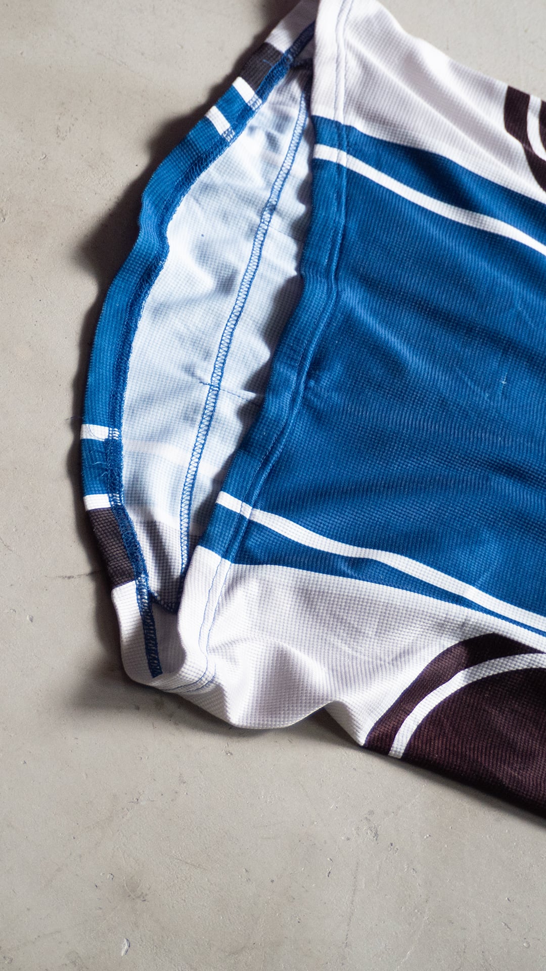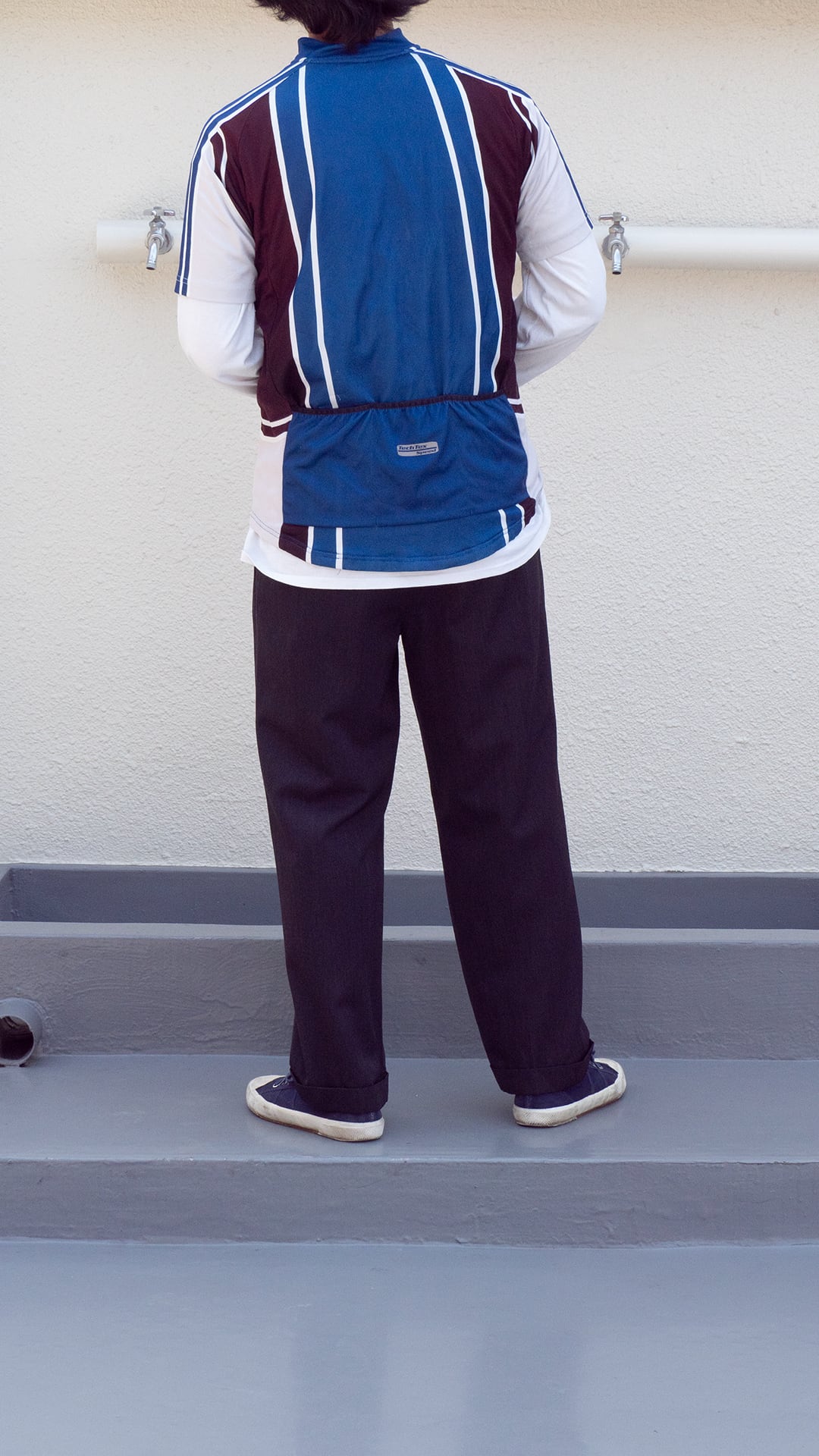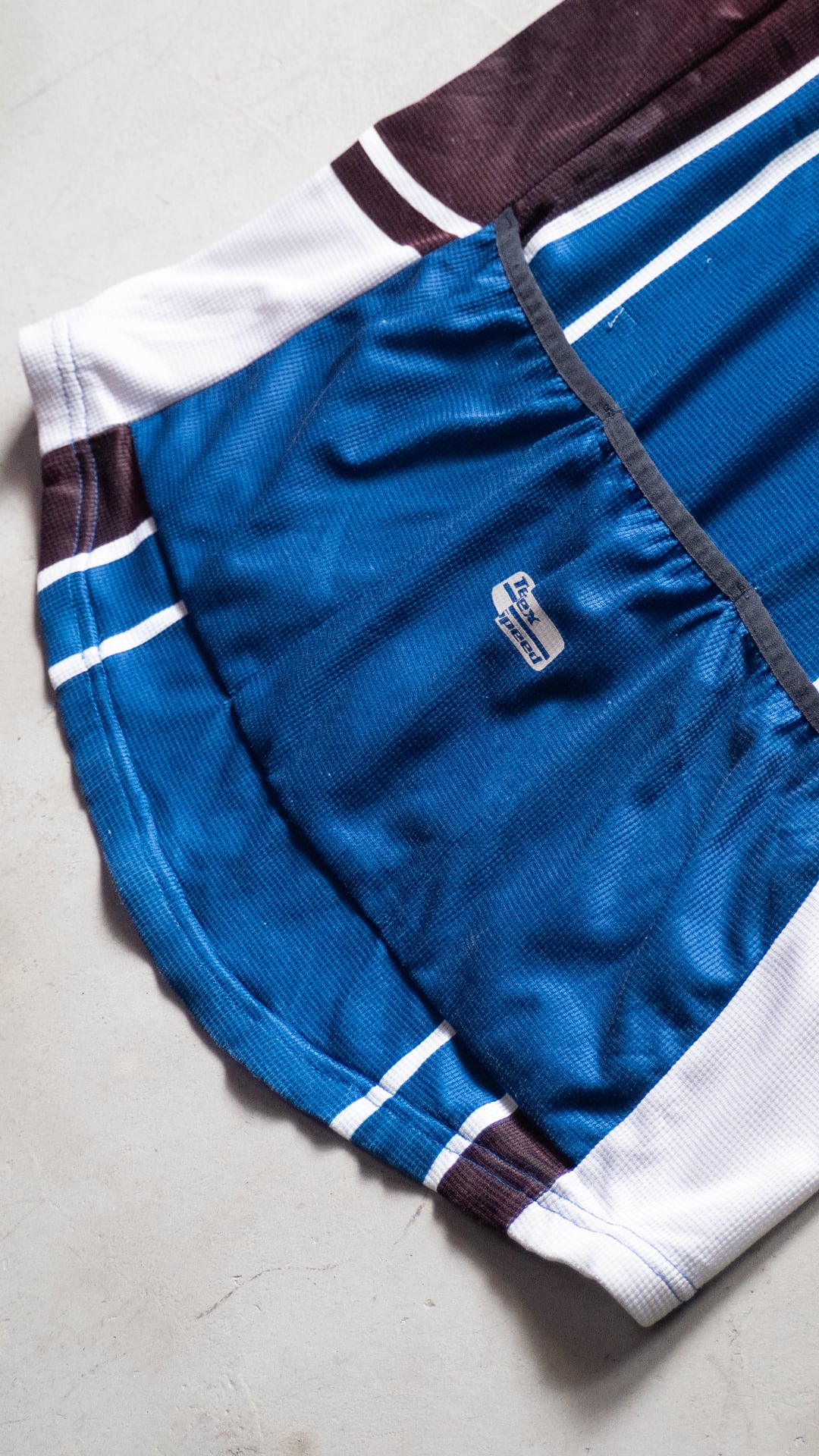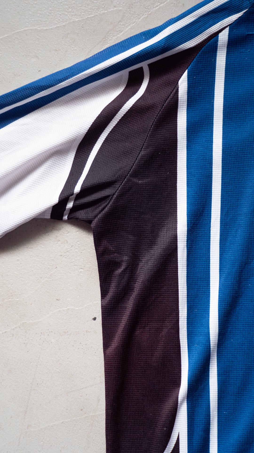 自転車文化が盛んな街・ベルリンでピックした、使い込まれたサイクルジャージ。タグが欠損していますが、調べていくとドイツローカルのサイクルスポーツブランド「Crane(クレーン)」が生産した個体である可能性が高いです。近年に生産されたもので、前所有者により着用と洗濯がかなり繰り返されたものだと思います。