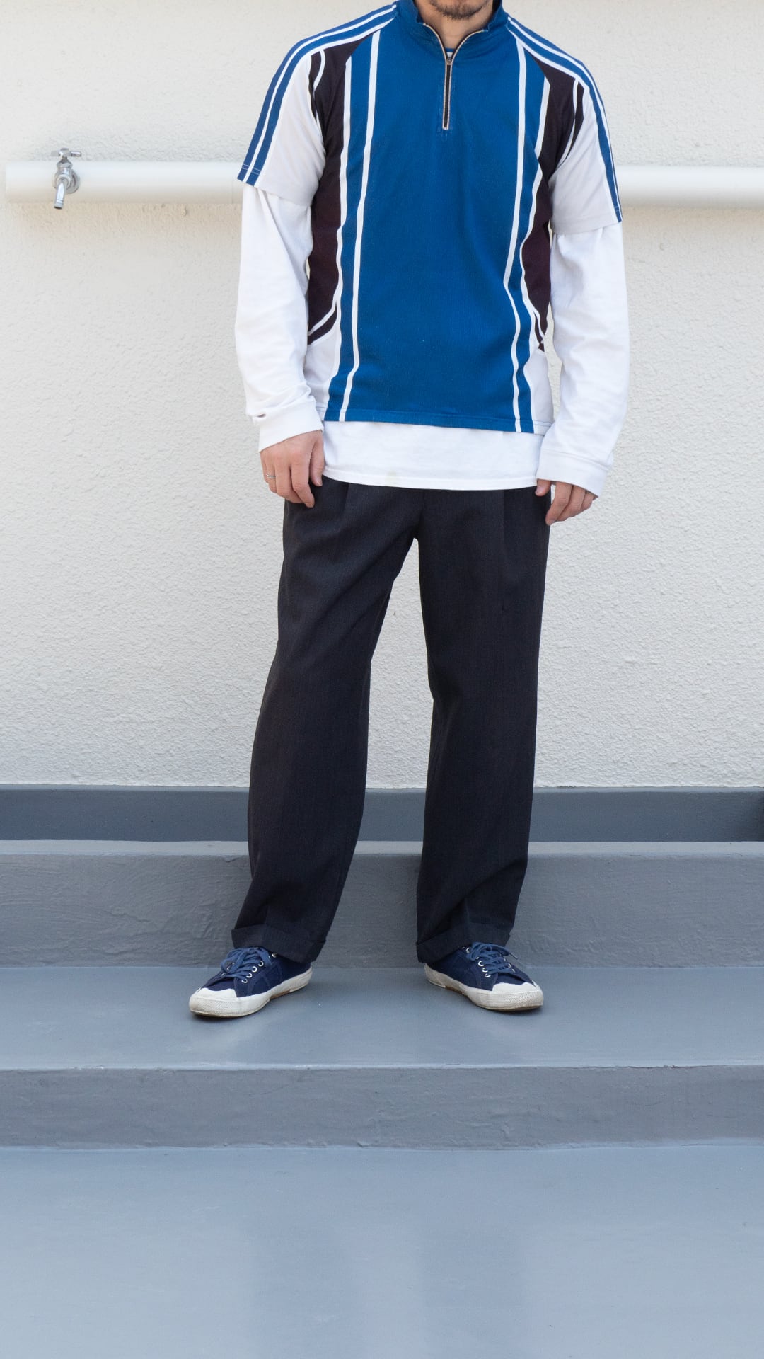 メイントップスとしてサマーシーンを楽しんだり、ロンTを中にレイヤー、ラペルドジャケットのインナーにしたりと、スポーツミックスを自分の匙加減で楽しむと、オリジナルなスタイルへと近づいていくと思います。ぜひお楽しみください。
