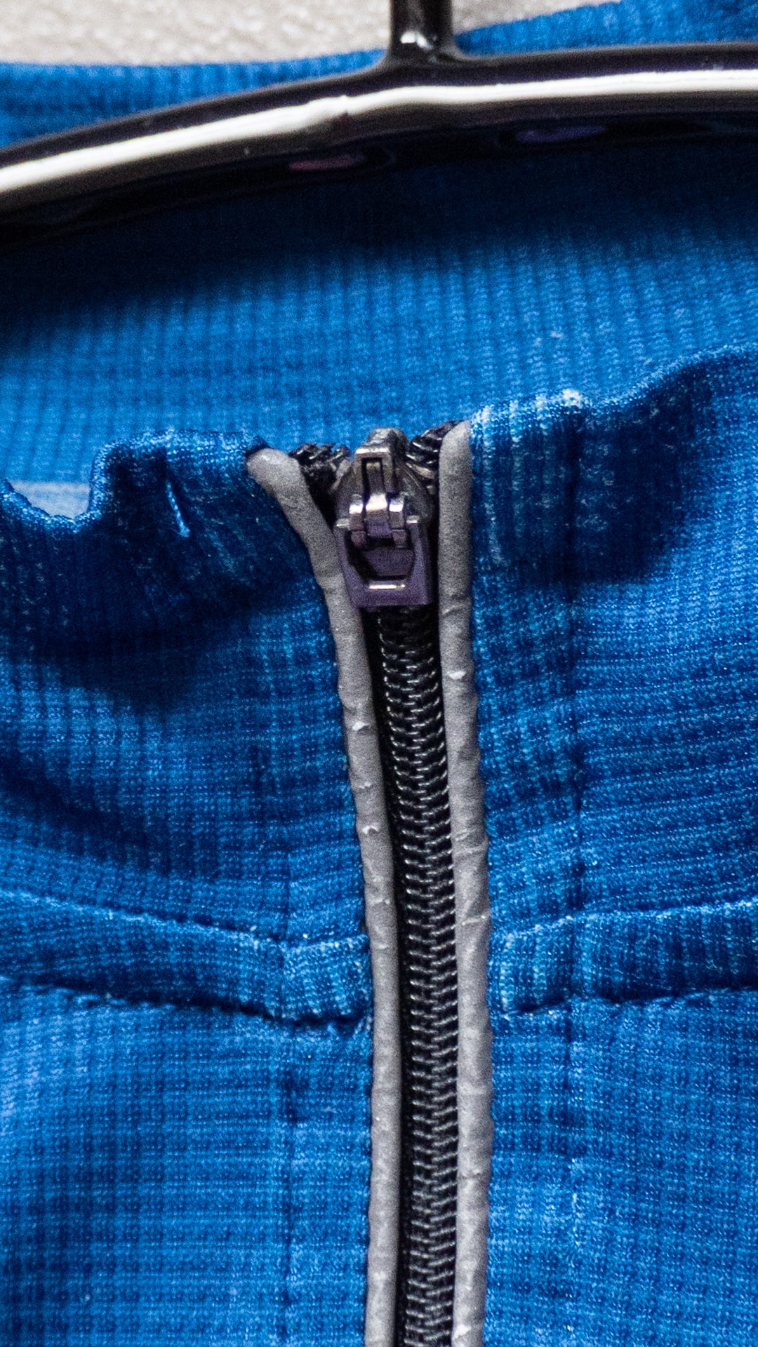 ハーフジップのファスナーヘッドが欠損しています。持ち手が小さくなりますが上下動に支障はない為このまま出品いたします(写真12枚目)。