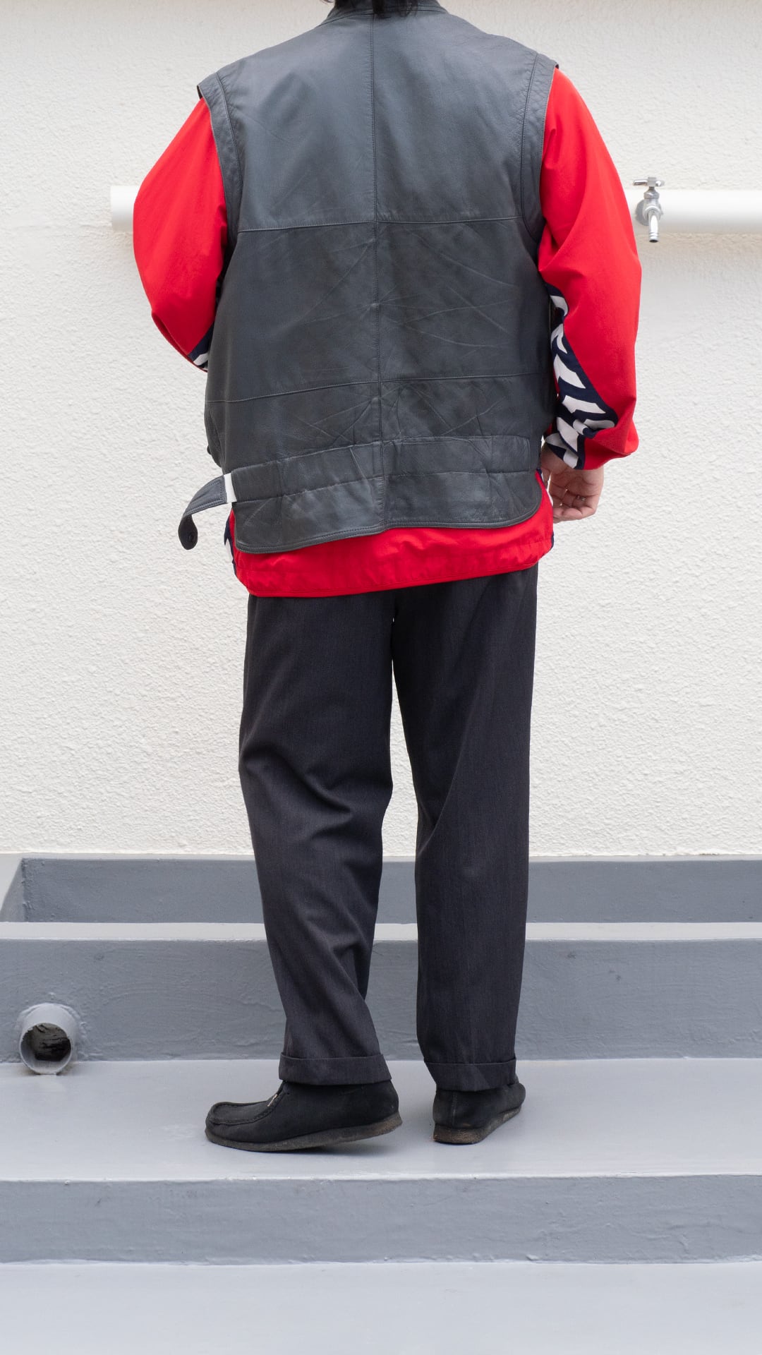 アームホールが深いことから、アウターベストとして、さまざまな服とレイヤードをしていただくと、スタイルの幅が広がり楽しいと思いますし、実用面にも気が付くことができると思います。ぜひご検討ください。