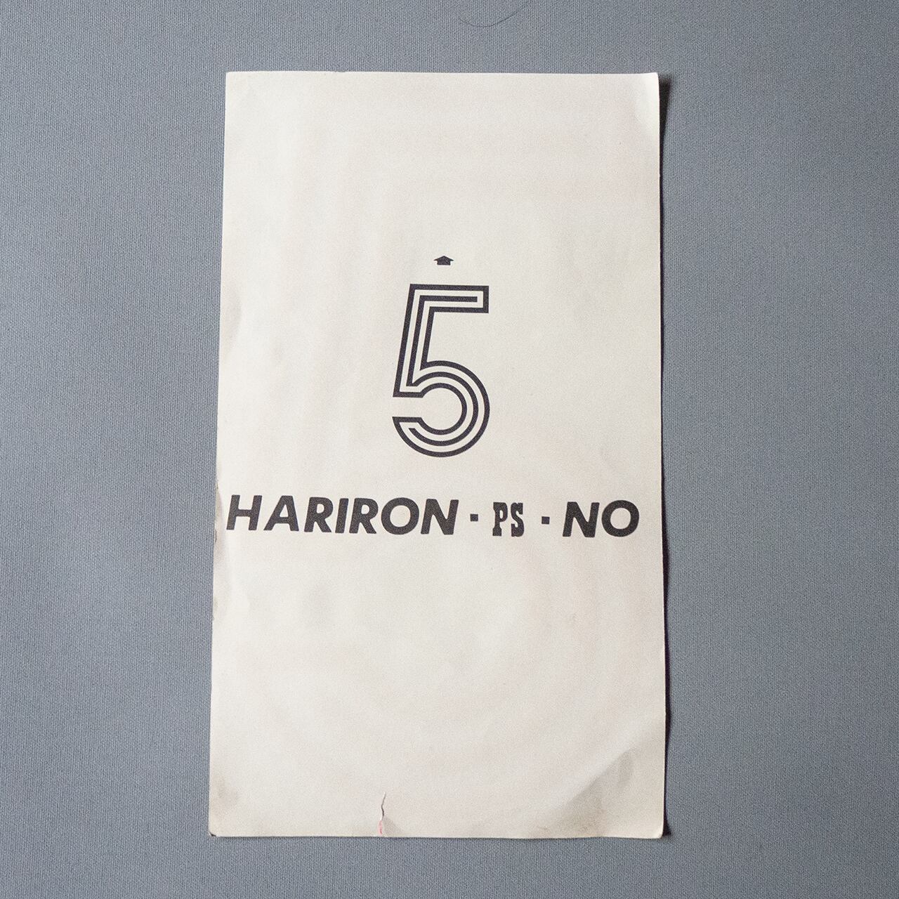 昭和38年より東京・墨田区で創業している宝来社が生産した「HARIRON(ハリロン)」と呼ばれる、熱圧着の背番号のデッドストックです。