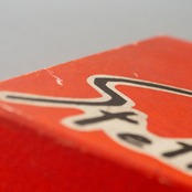 正確な正体は不明ですが、ボックスに書いてあることからおそらく「聴診器(=Stethoscope)」が入っていたボックスだと思われます。硬さ、厚みがあり堅牢な状態です。