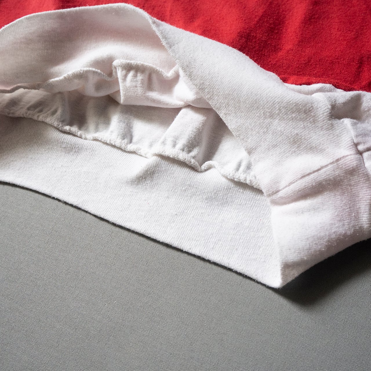 The color of the red part has bled a little, and there are also areas where the color has transferred to the white part.