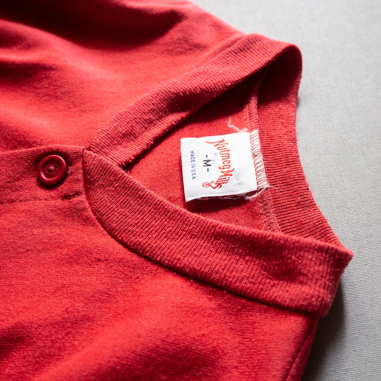 Nutmeg Mills is a cut and sewn body manufacturer mainly for the four major sports T-shirts in the U.S., and can be found in vintage clothing from the 1990s.